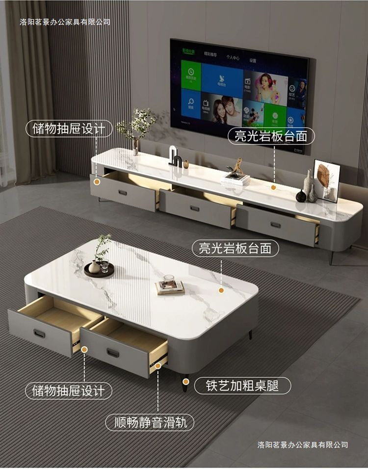 岩板电视柜客厅家用小户型现代简约轻奢茶桌北欧落地茶几组合
