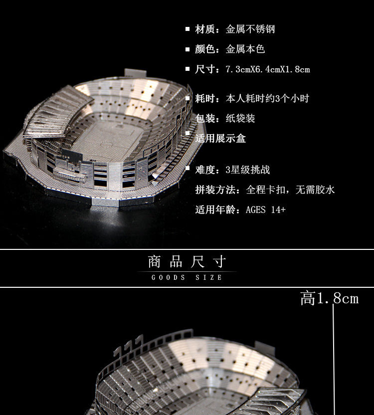 狂模 诺坎普足球场 全金属不锈钢拼装模型3D免胶立体金属拼图玩具