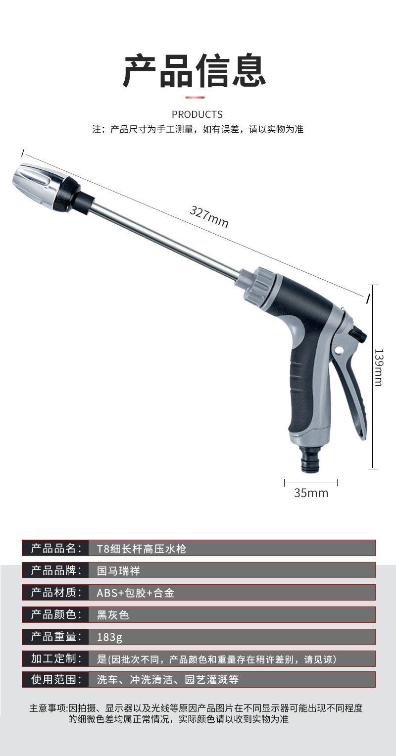 厂家批发长杆洗车高压水枪家用花园水管金属加长杆增压高压喷水抢