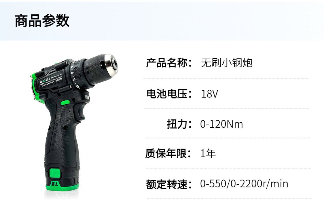 BODI波顿纯铜无刷小钢炮可调速装修钻孔锂电充电手电钻电动螺丝刀