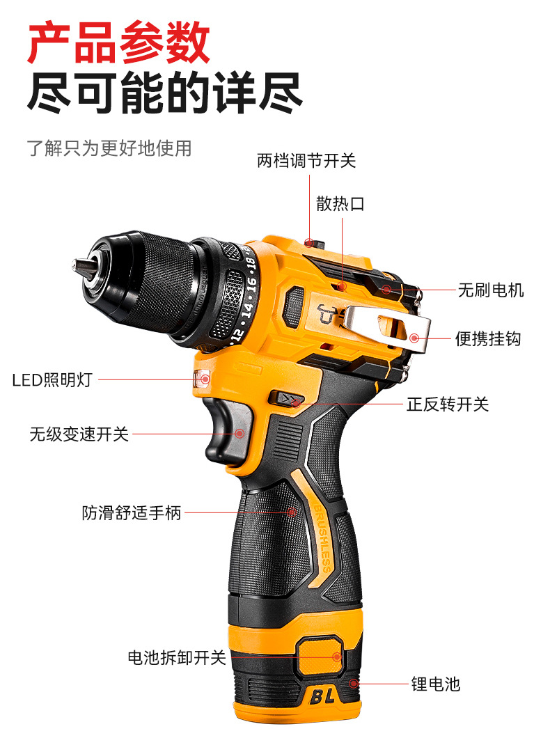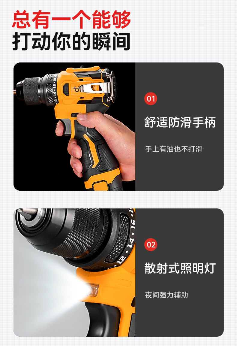 多功能家用电动工具电钻 跨境小型冲击钻两用无刷锂小钢炮电钻