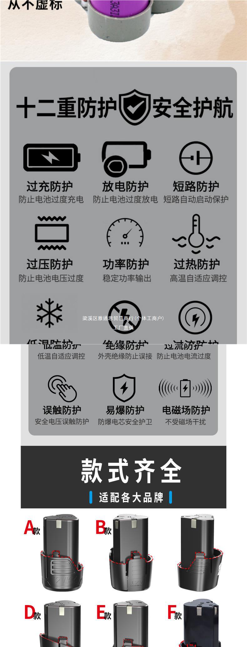 12v手电钻锂电池16.8伏充电手枪转通用款25V大容量适用于富雅通思
