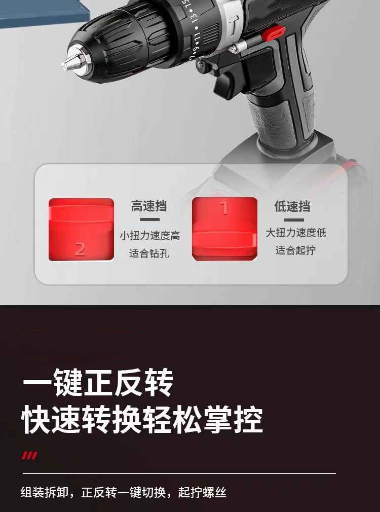 工业级超大功率手电钻锂电池双攻速充电钻转家用多功能电动螺丝刀