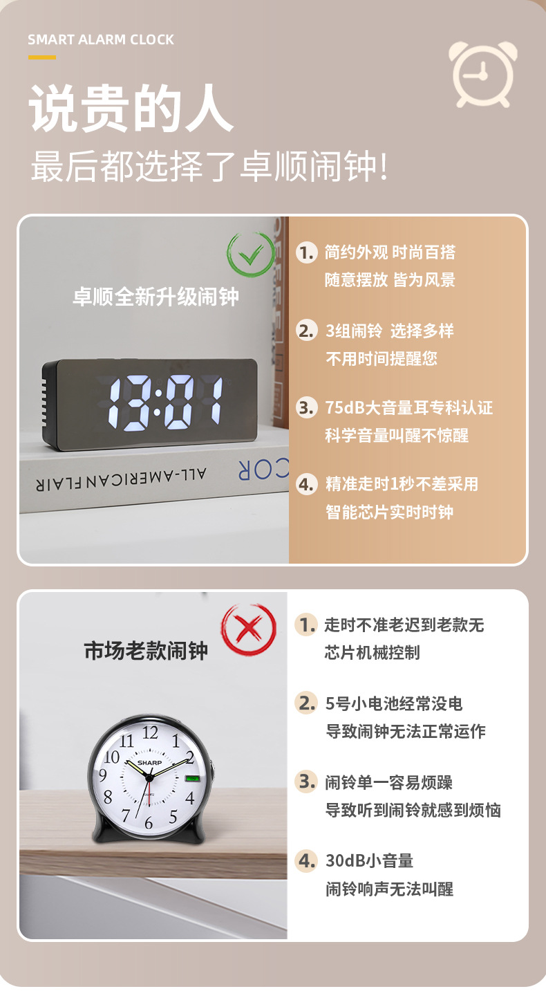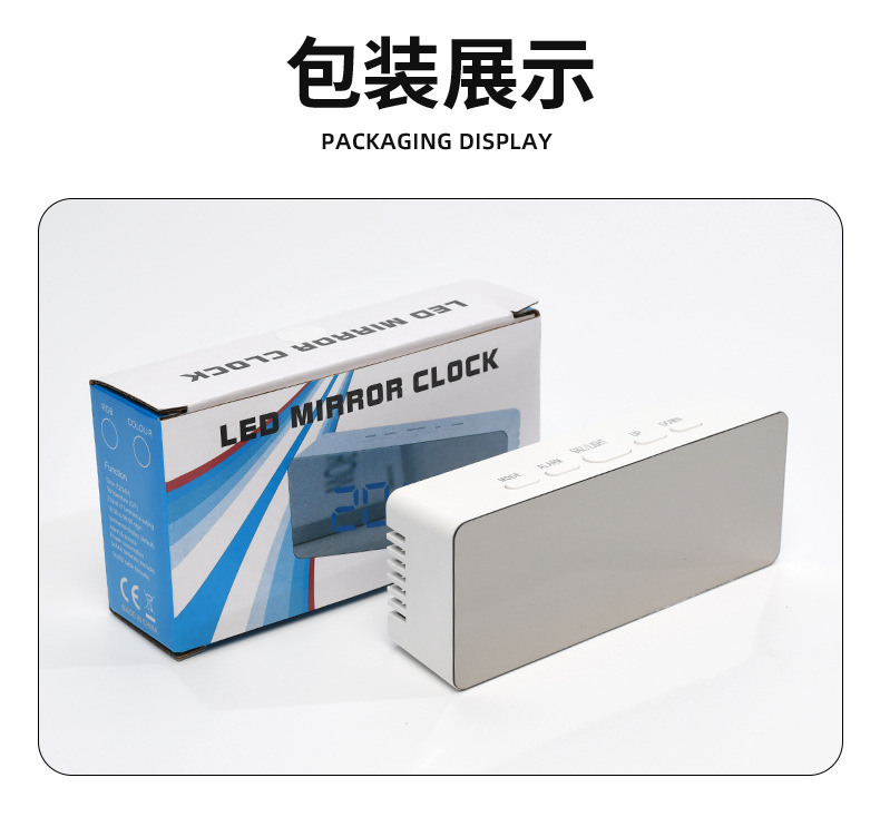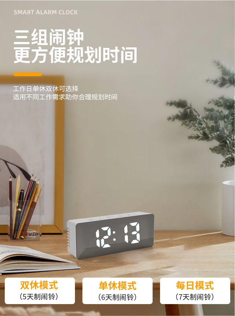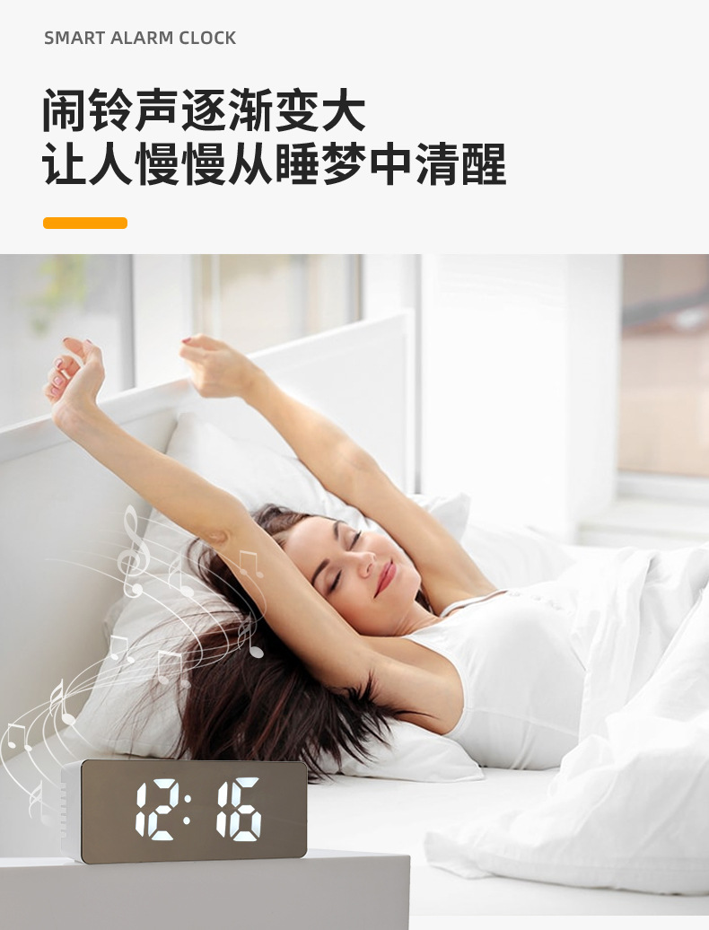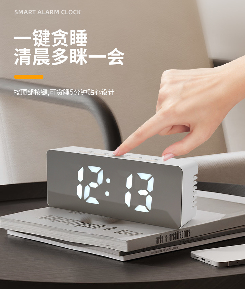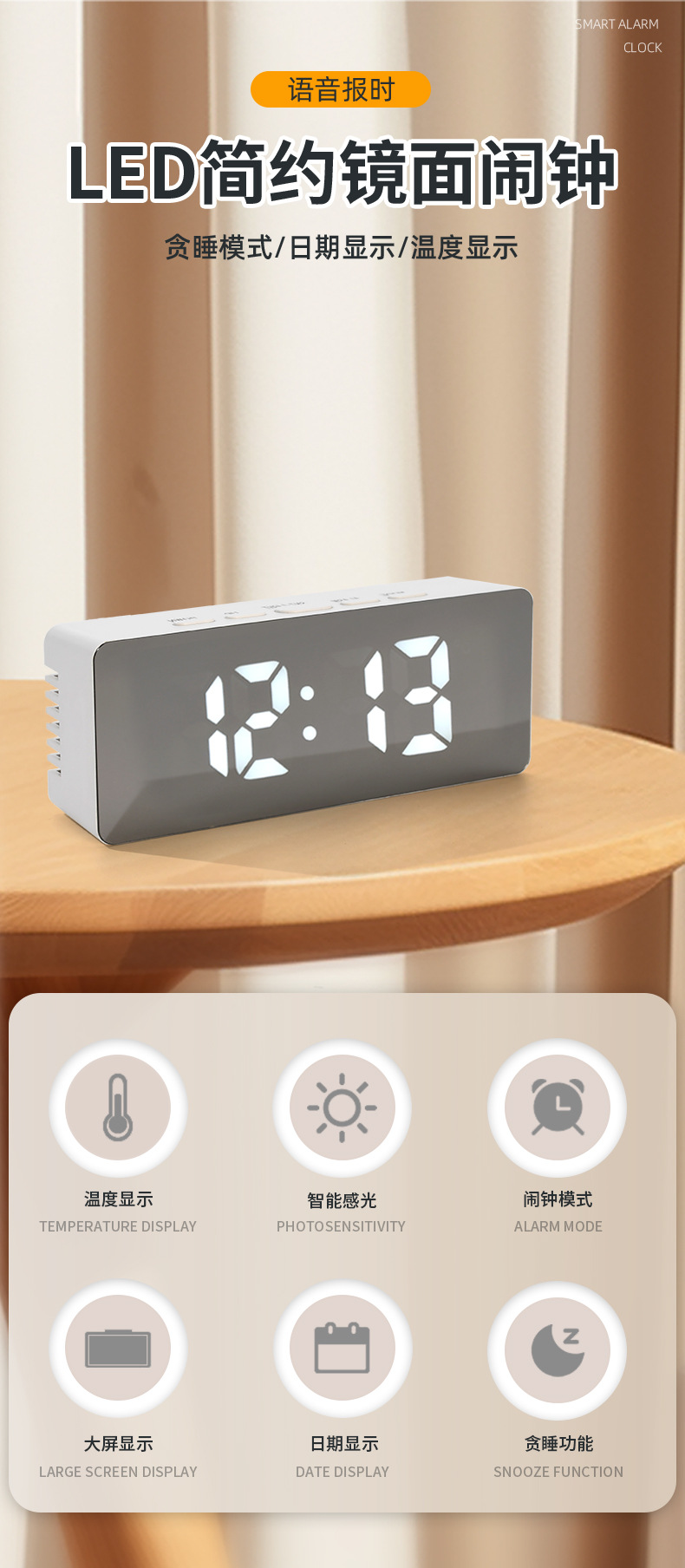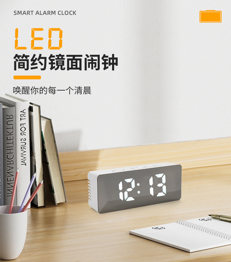 跨境LED高清镜面闹钟学生卧室睡觉智能闹钟多功能现代简约电子钟