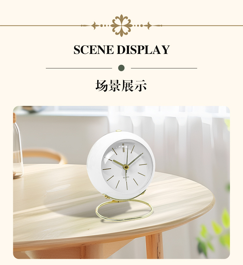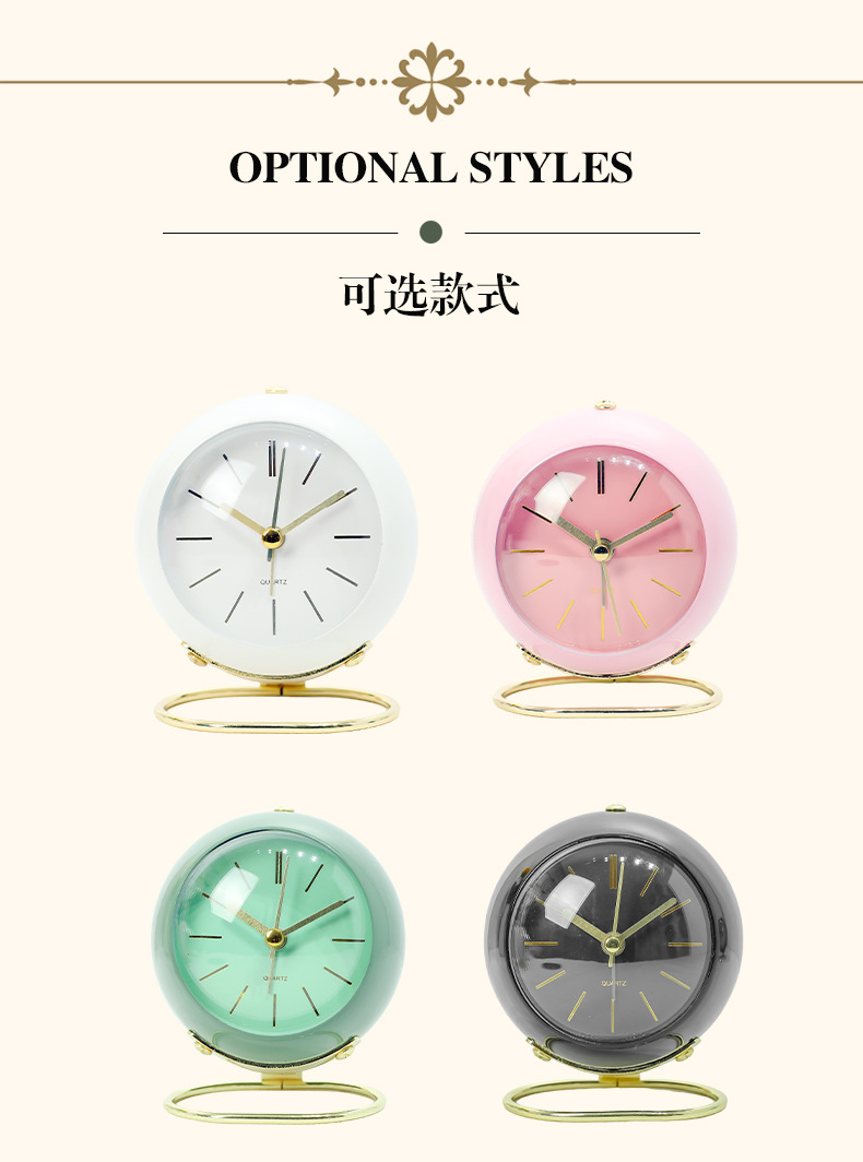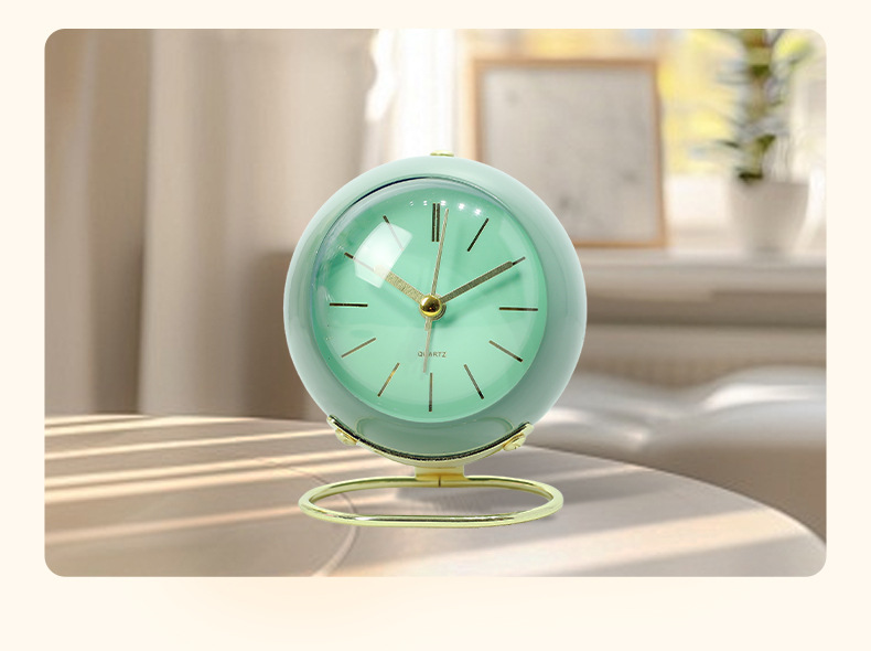 金属支架闹钟跨镜专供桌面创意时钟静音夜灯圆环底座床头台钟摆件