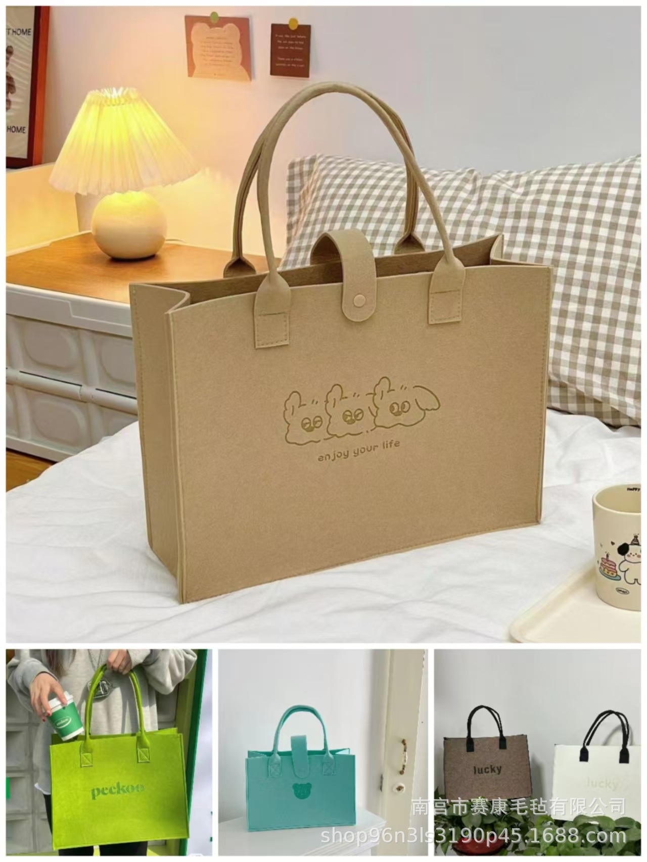 厂家批发企业制品毛毡包三只云朵手提包大容量托特包简约蛇年定制
