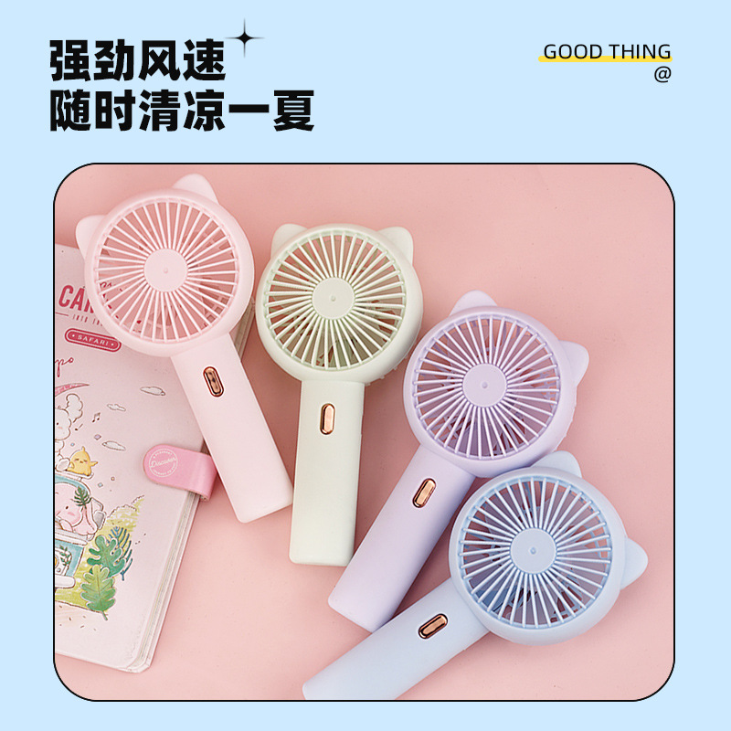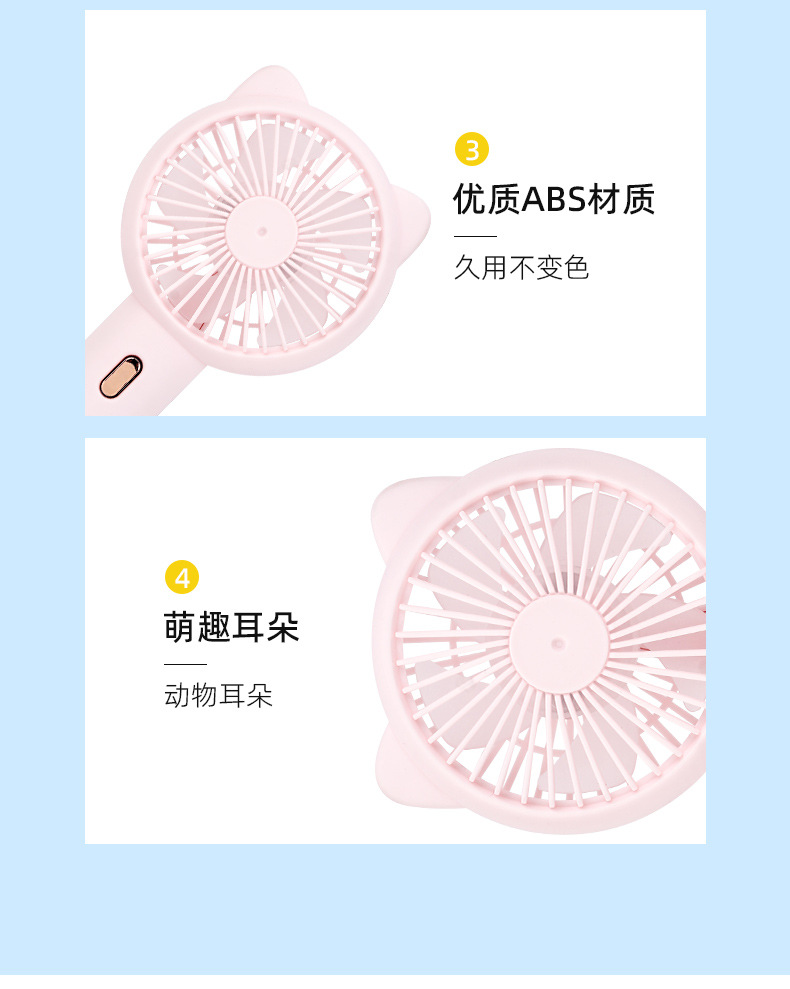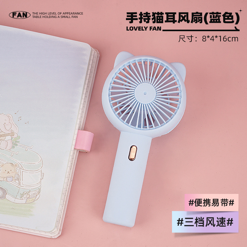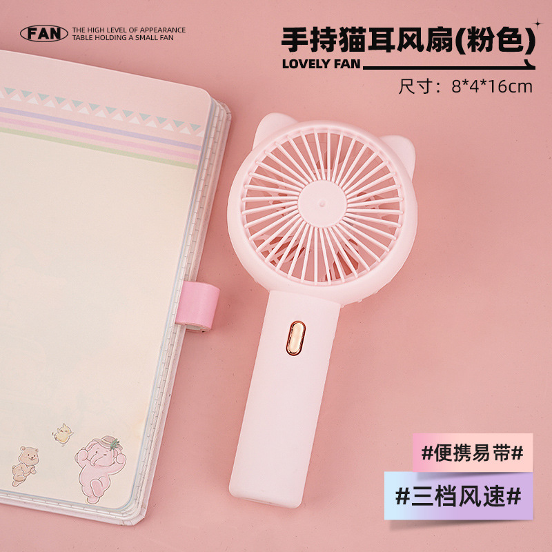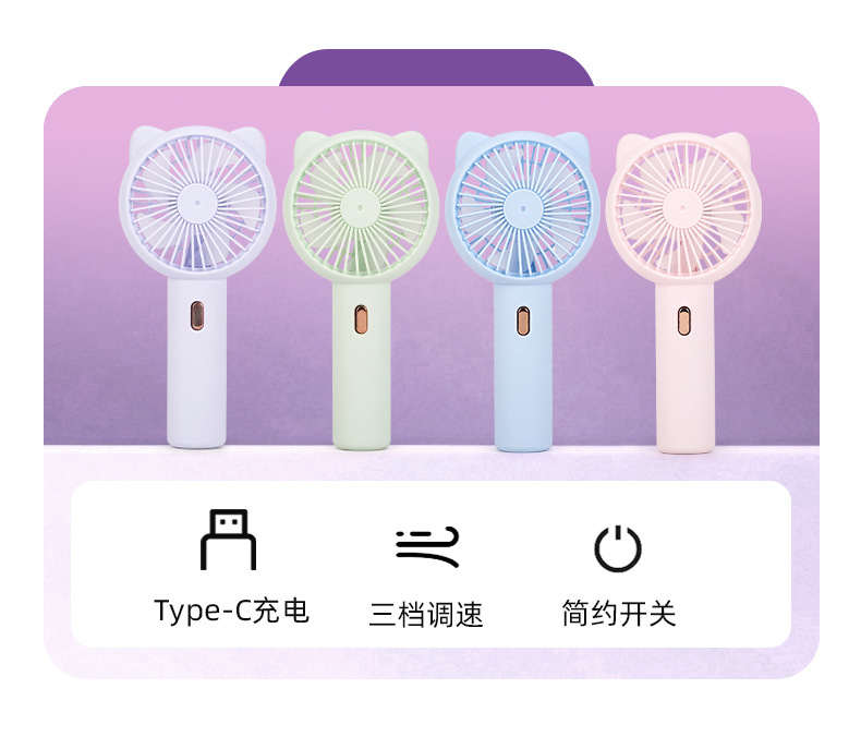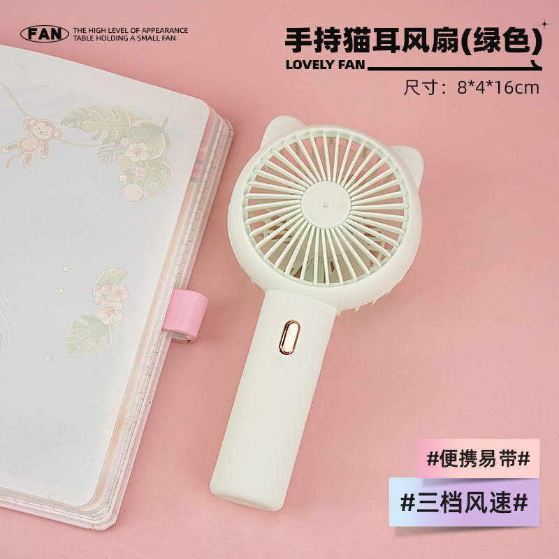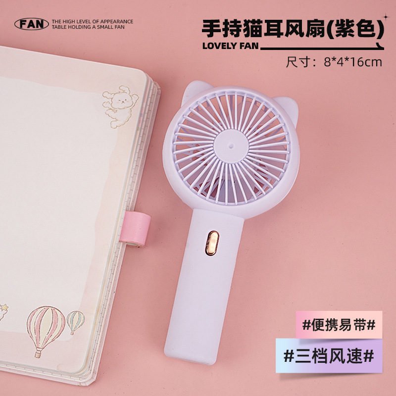 卡通可爱小猫手持风扇usb充电三档风力户外便携手持小风扇批发