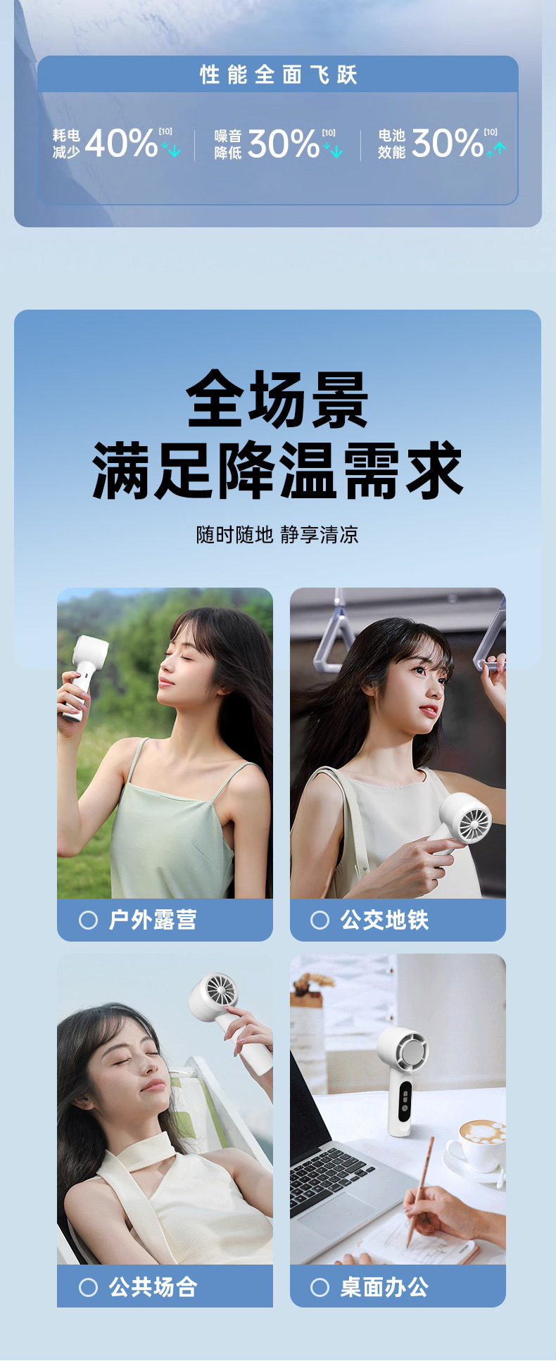 桌面折叠小风扇静音户外便携学生宿舍床头风扇超长续航手持风扇