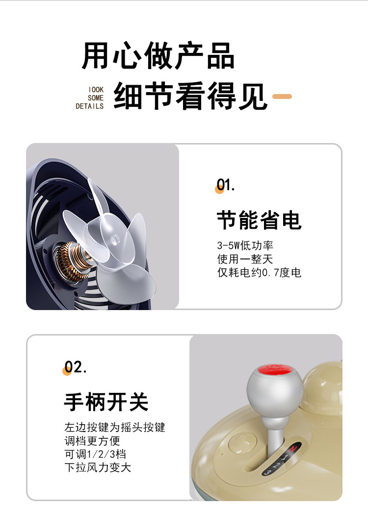 跨境小风扇桌面小型静音USB充电卡丁车电风扇多功能夜灯大风力