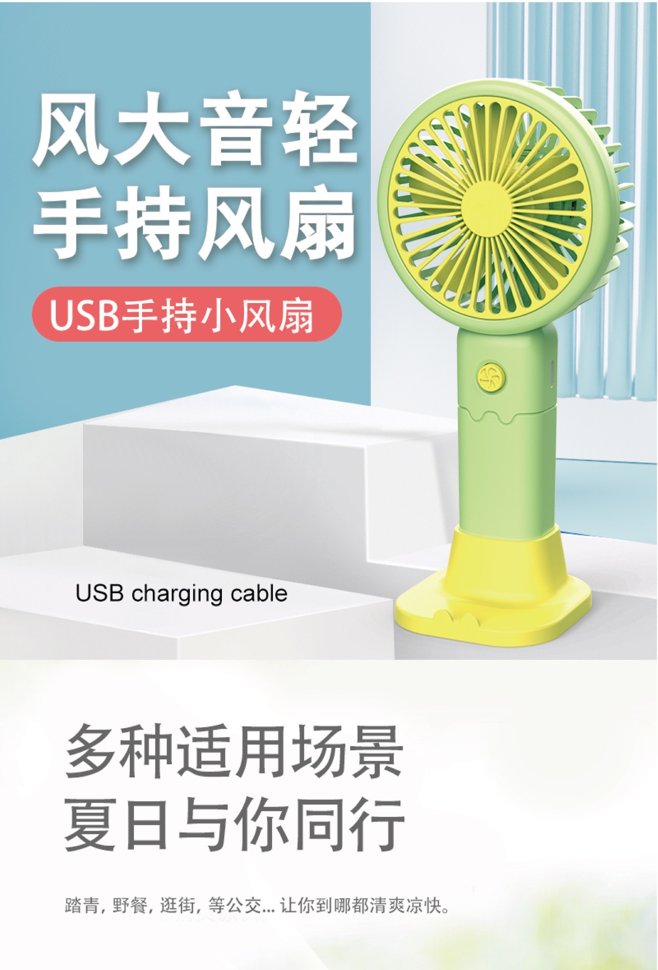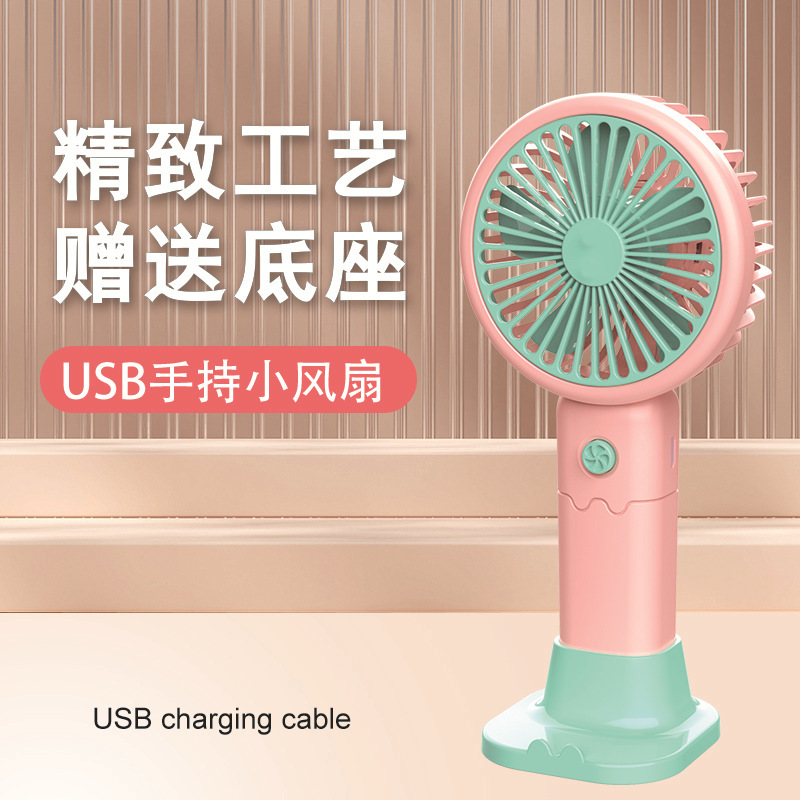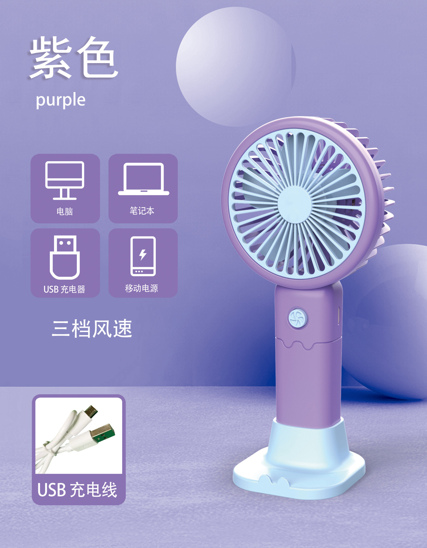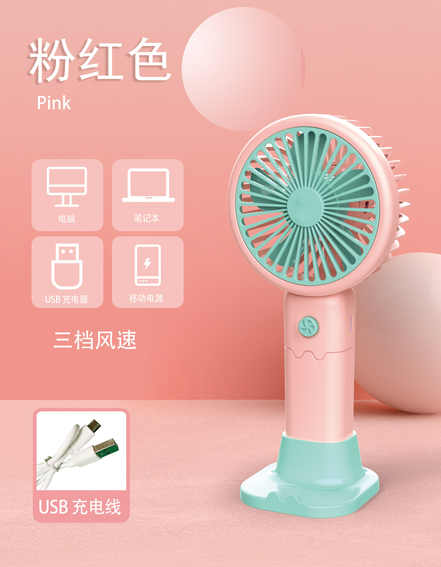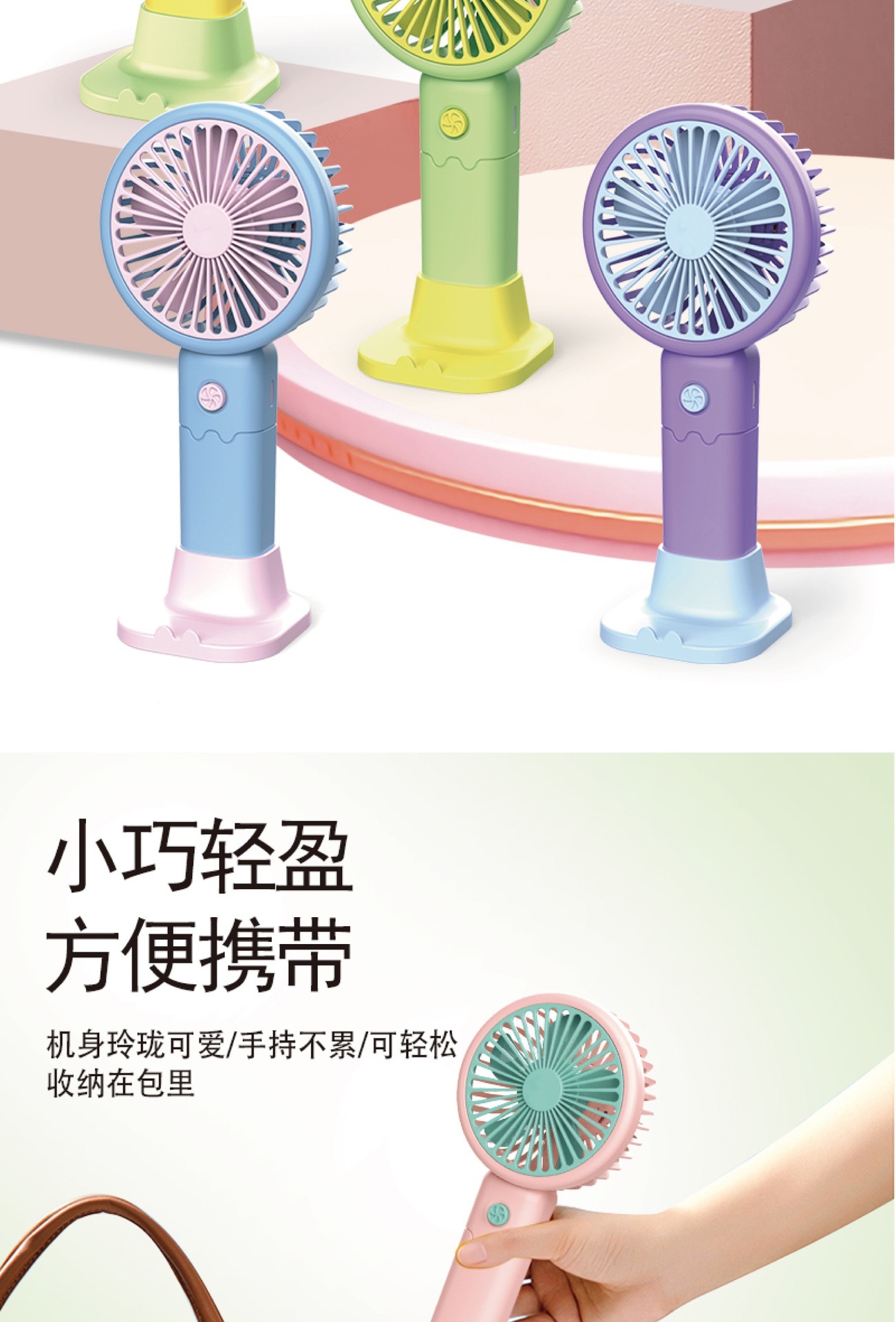 新款手持风扇三档带支架USB充电便携卡通桌面迷你小风扇礼品代发