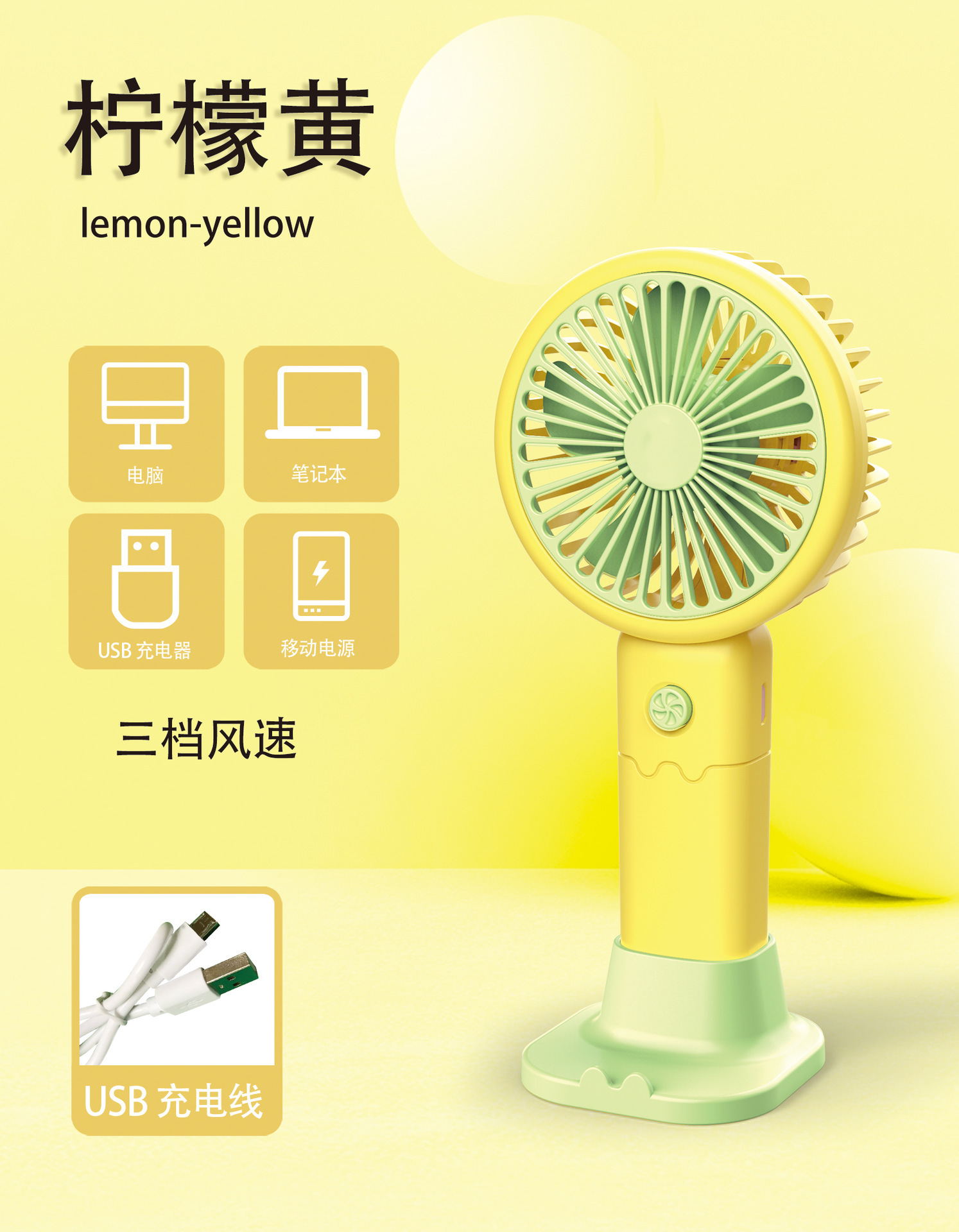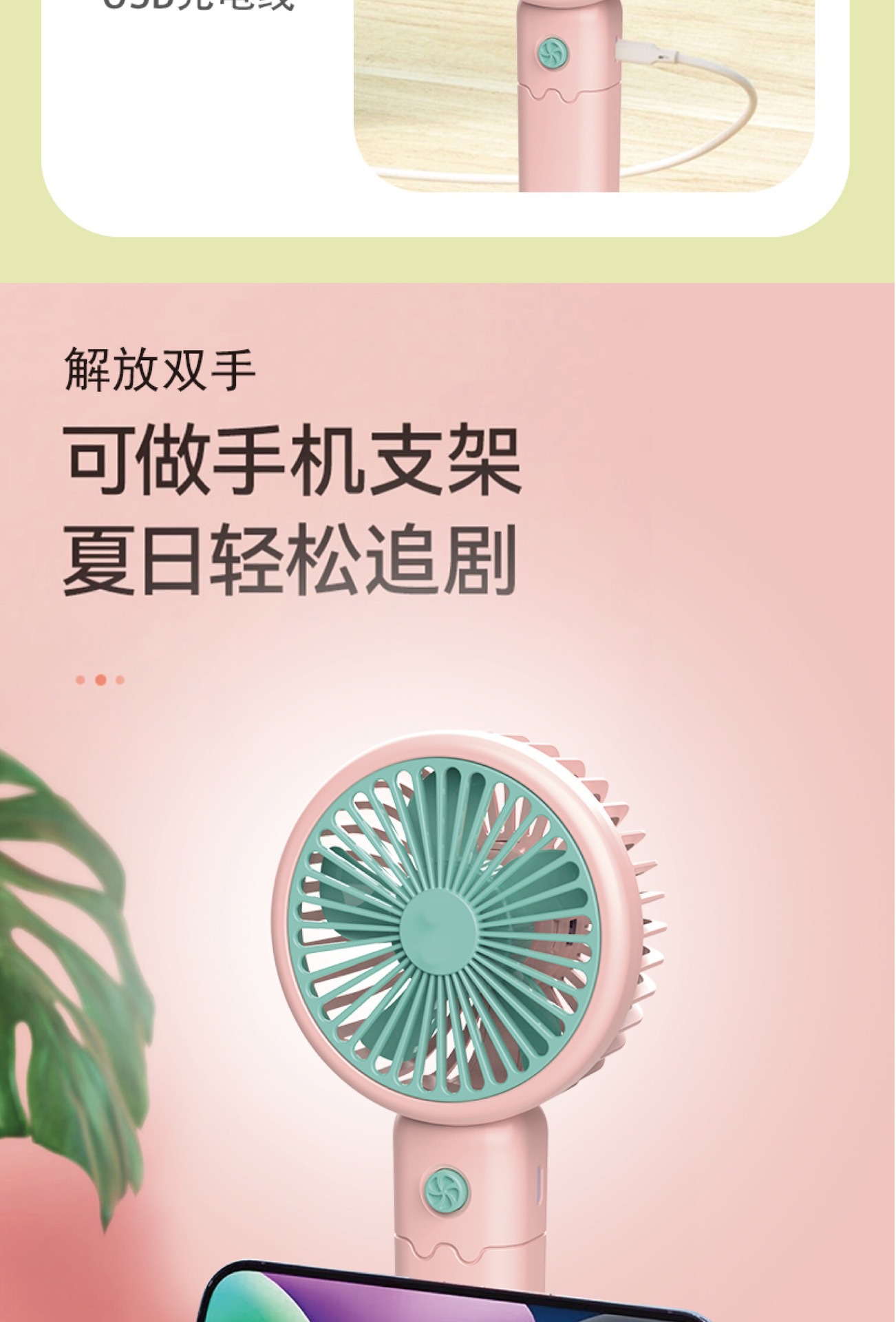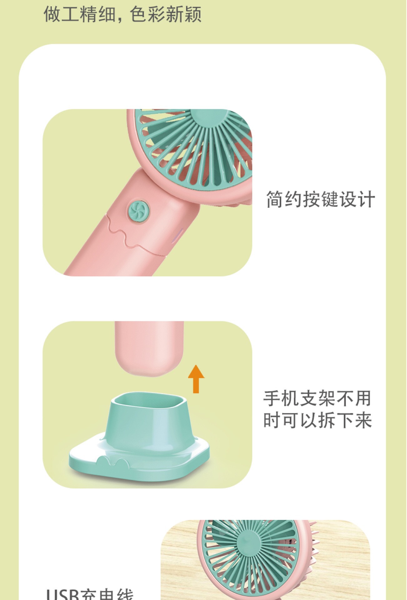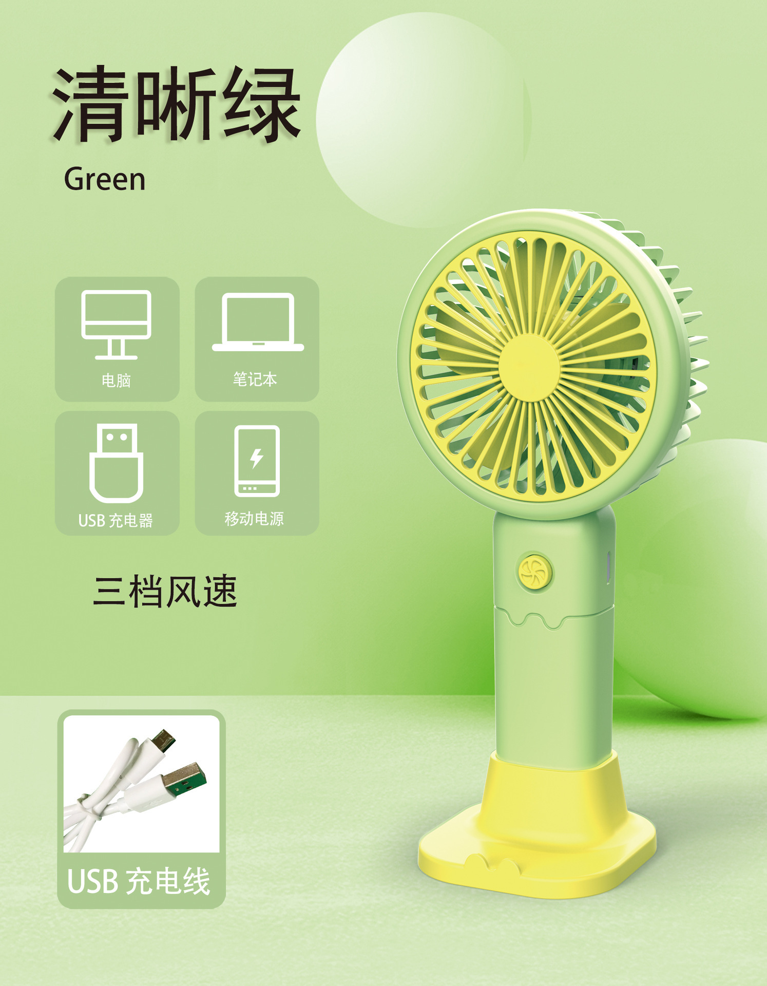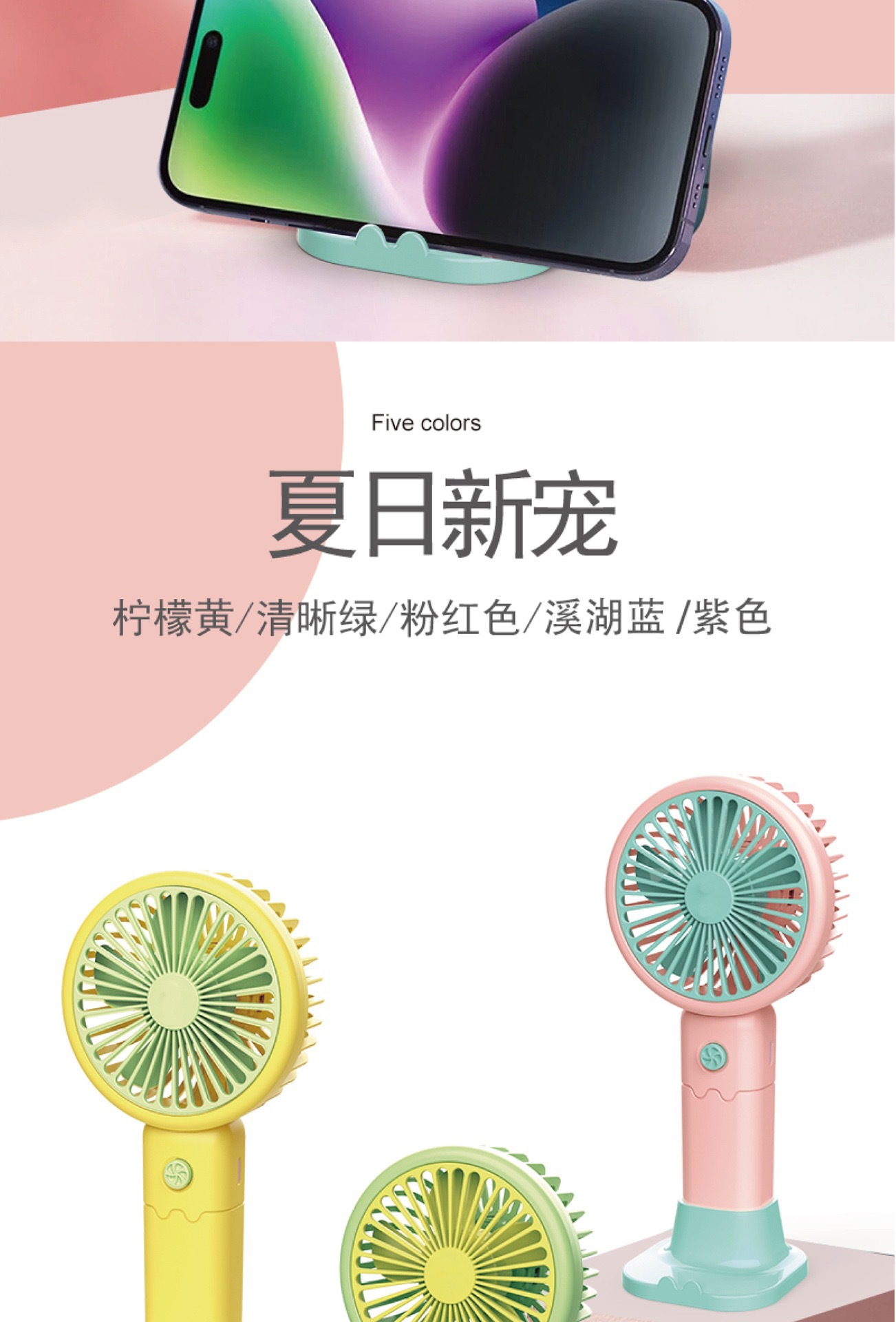 新款手持风扇三档带支架USB充电便携卡通桌面迷你小风扇礼品代发