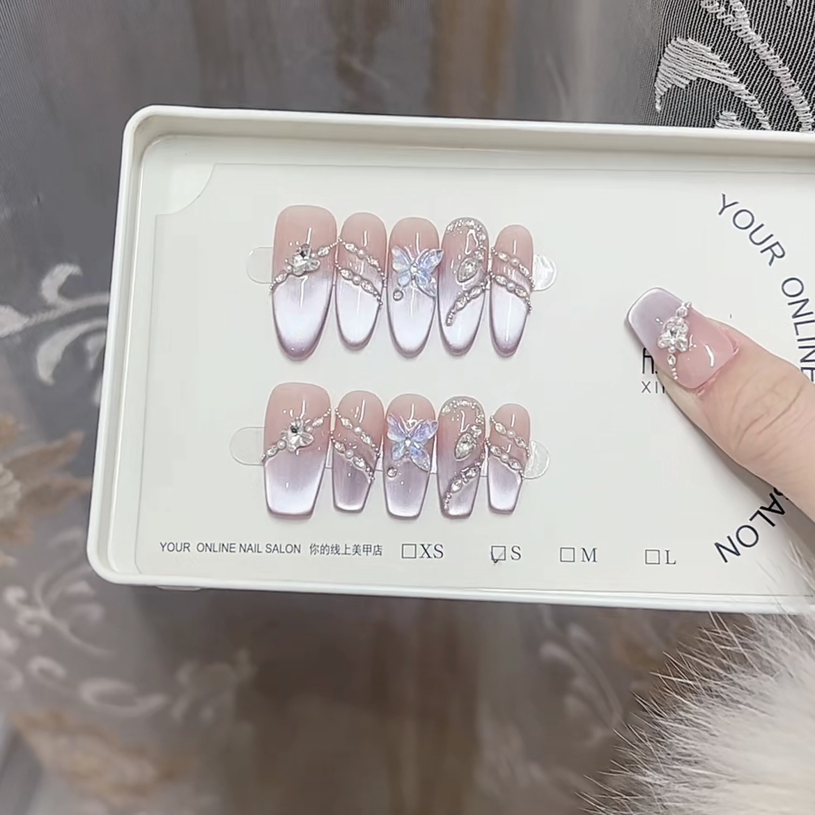奈姿 纯手工光疗穿戴甲九子离火猫眼重复使用美甲贴片可拆