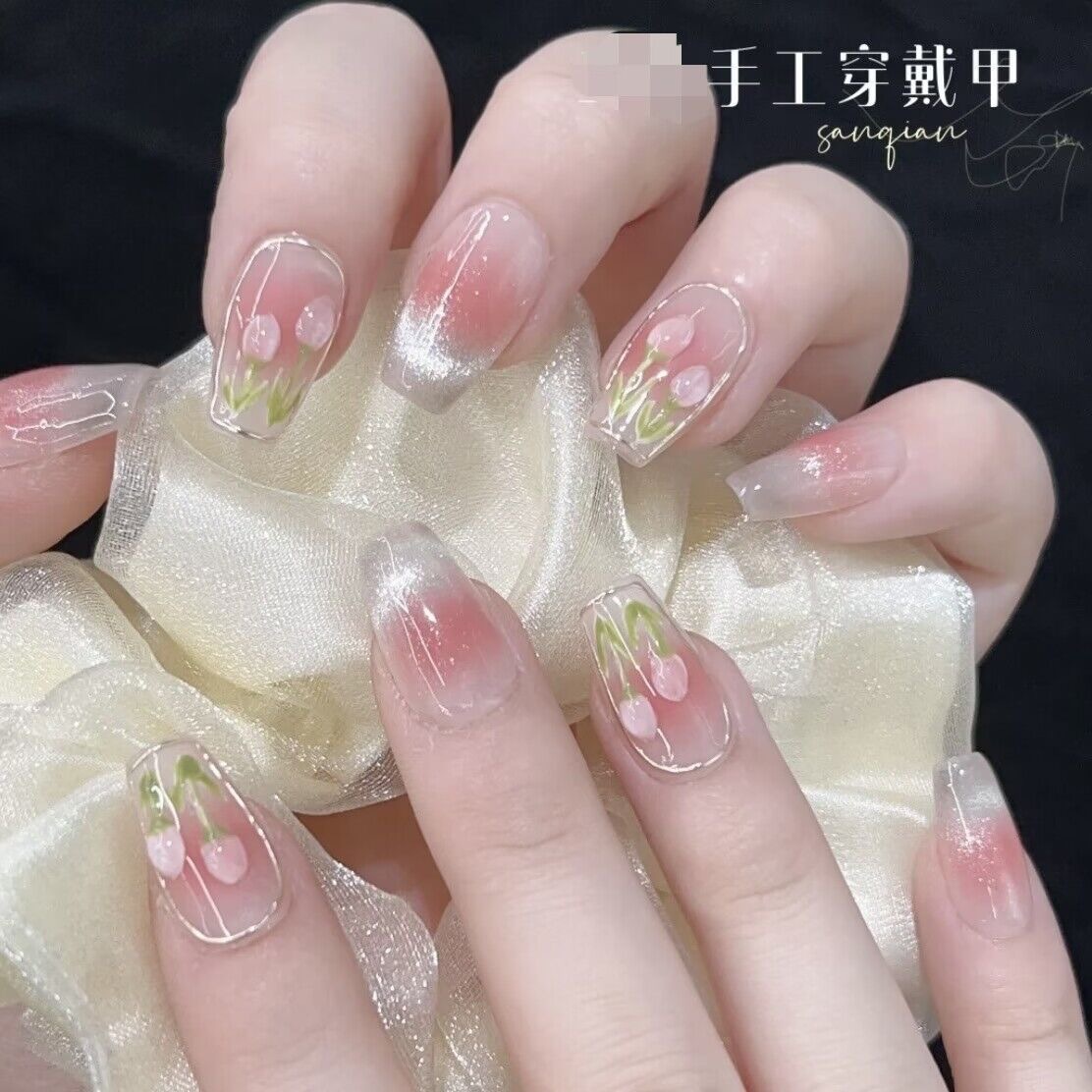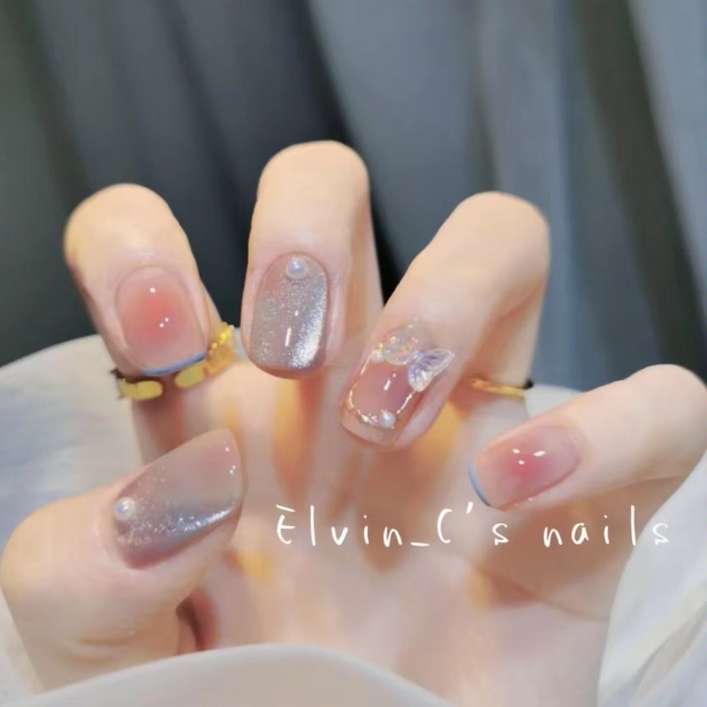纯手工光疗穿戴甲春日系列批发成品重复使用美甲贴片可拆卸猫