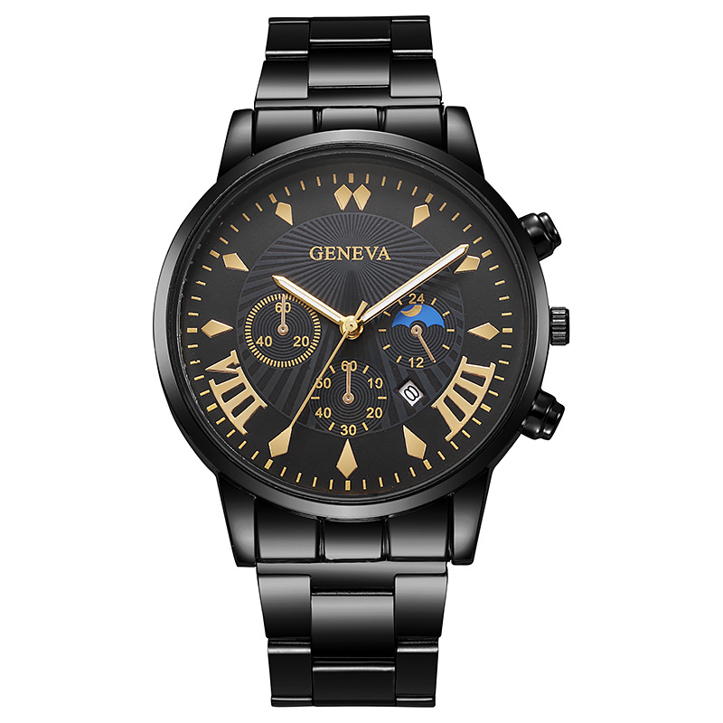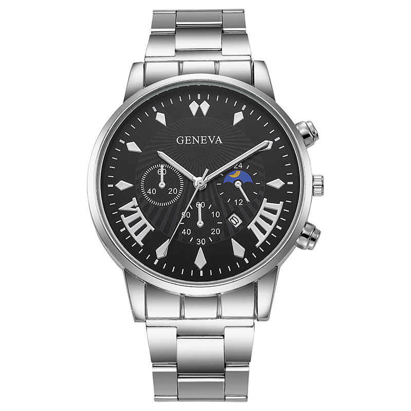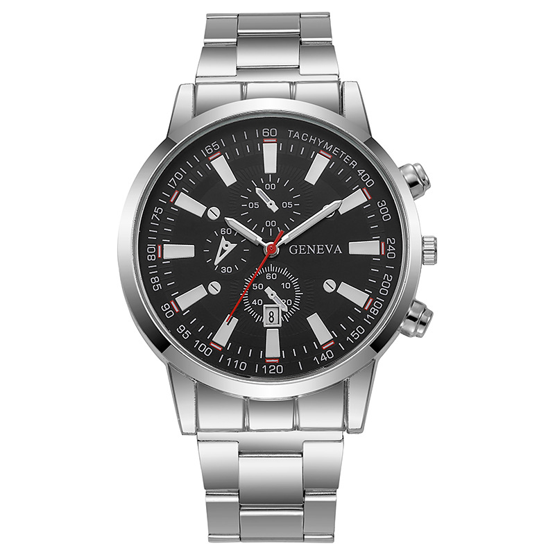 厂家直销日历钢带手表男大表盘石英表跨境男表外贸男士手表批发