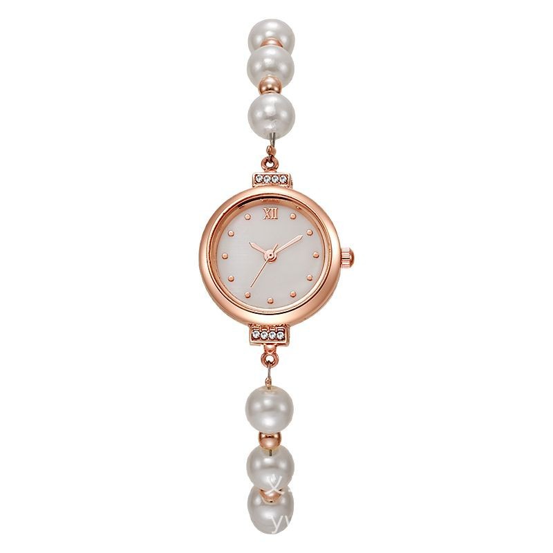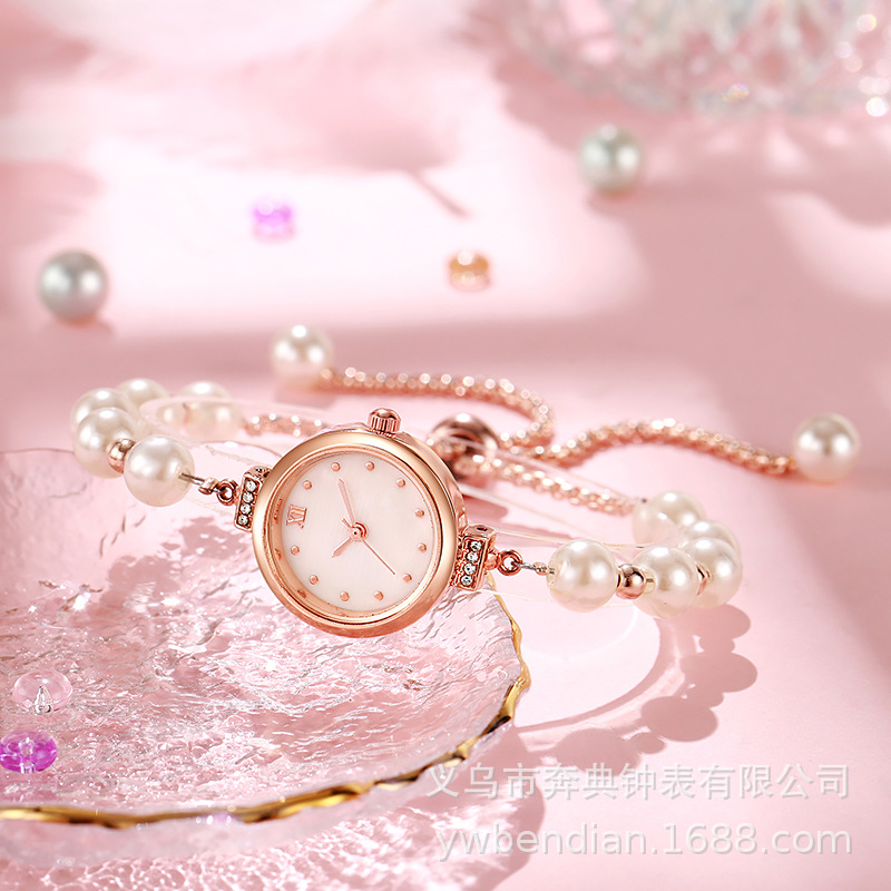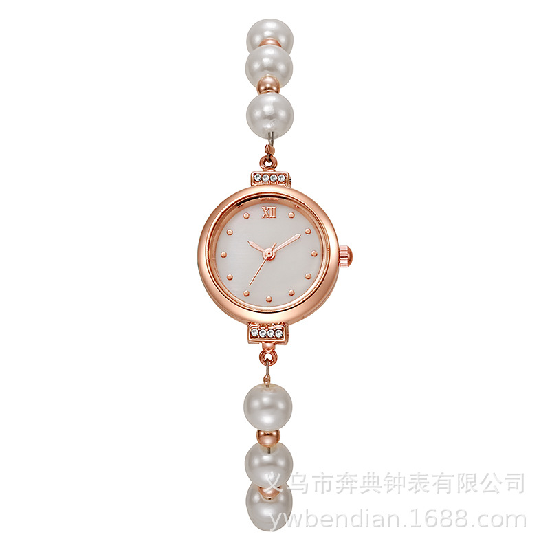 新款时尚珍珠细带贝母圆形女士手表自由调节手链表女款石英表批发