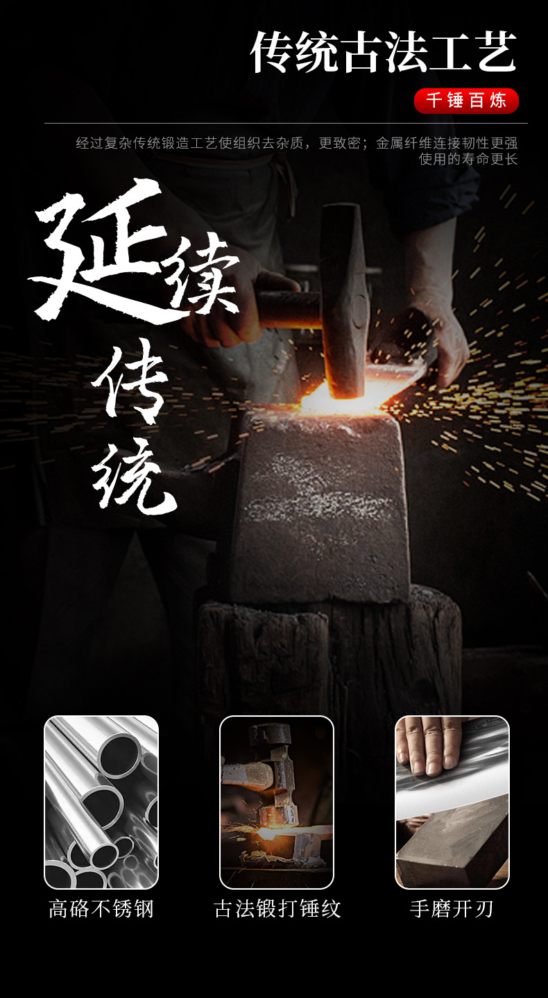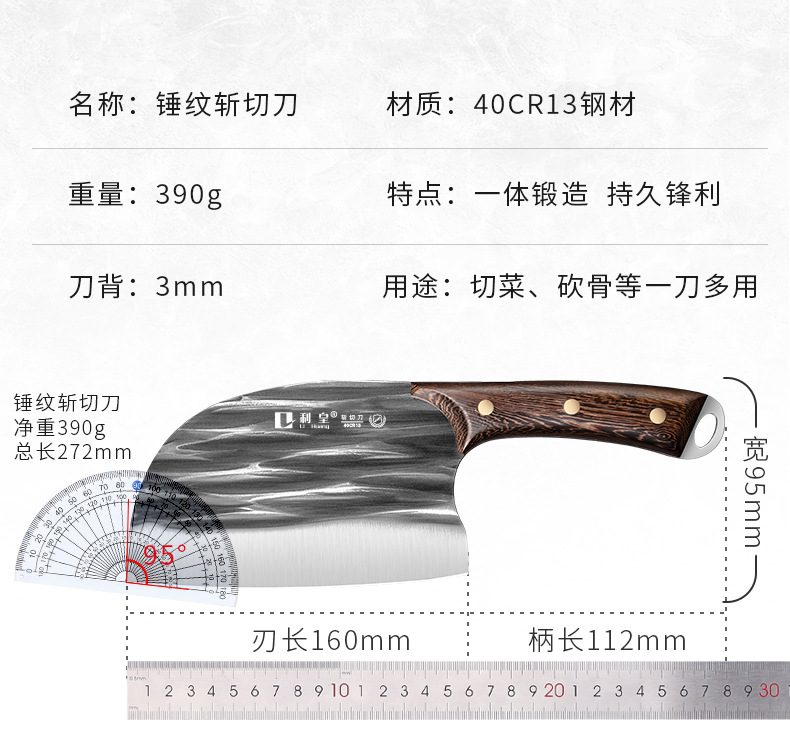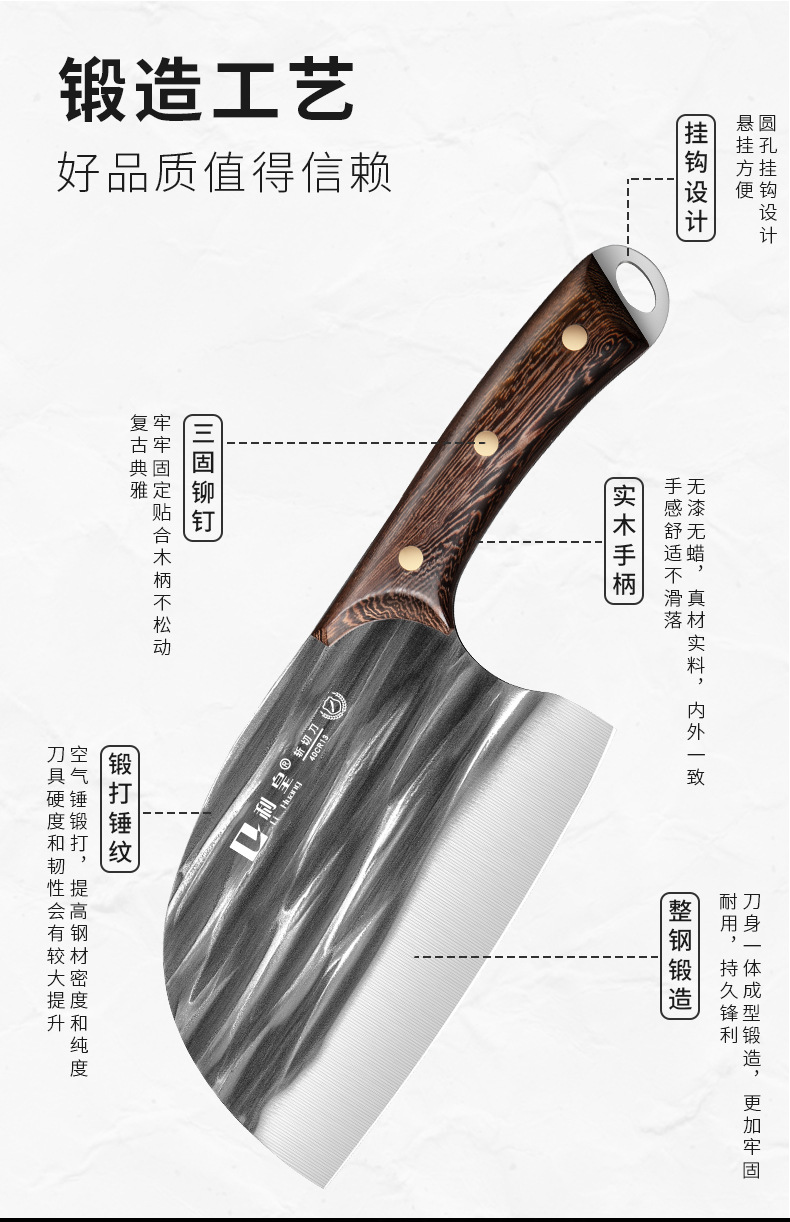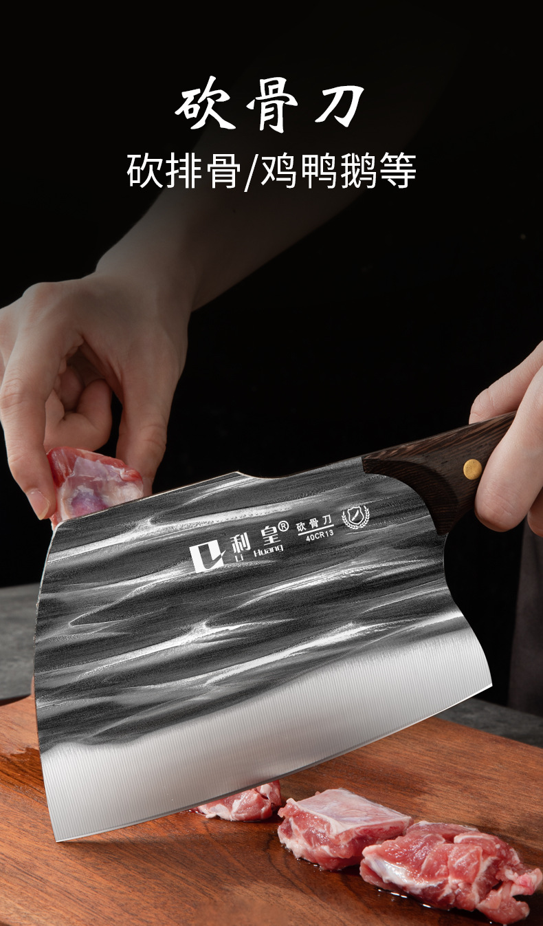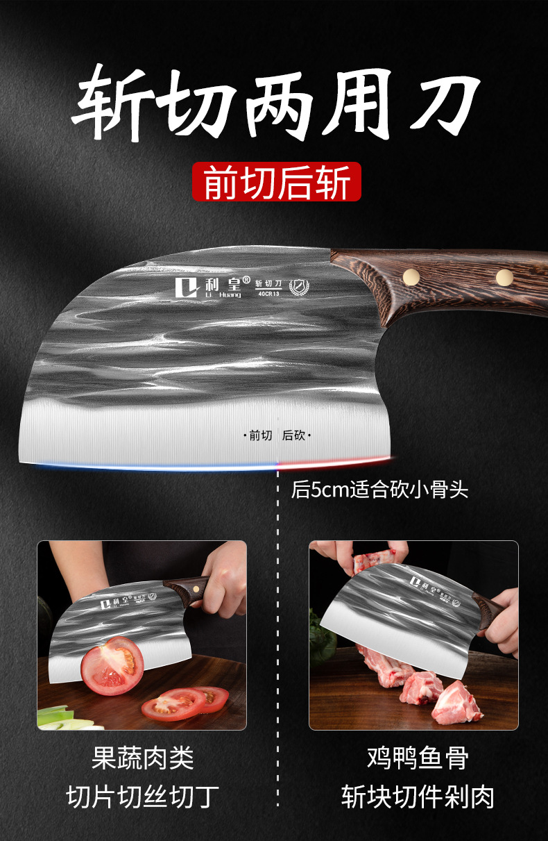 不锈钢切菜刀家用锻打圆头刀厨房专用刀具锋利斩骨刀厨师切肉片刀