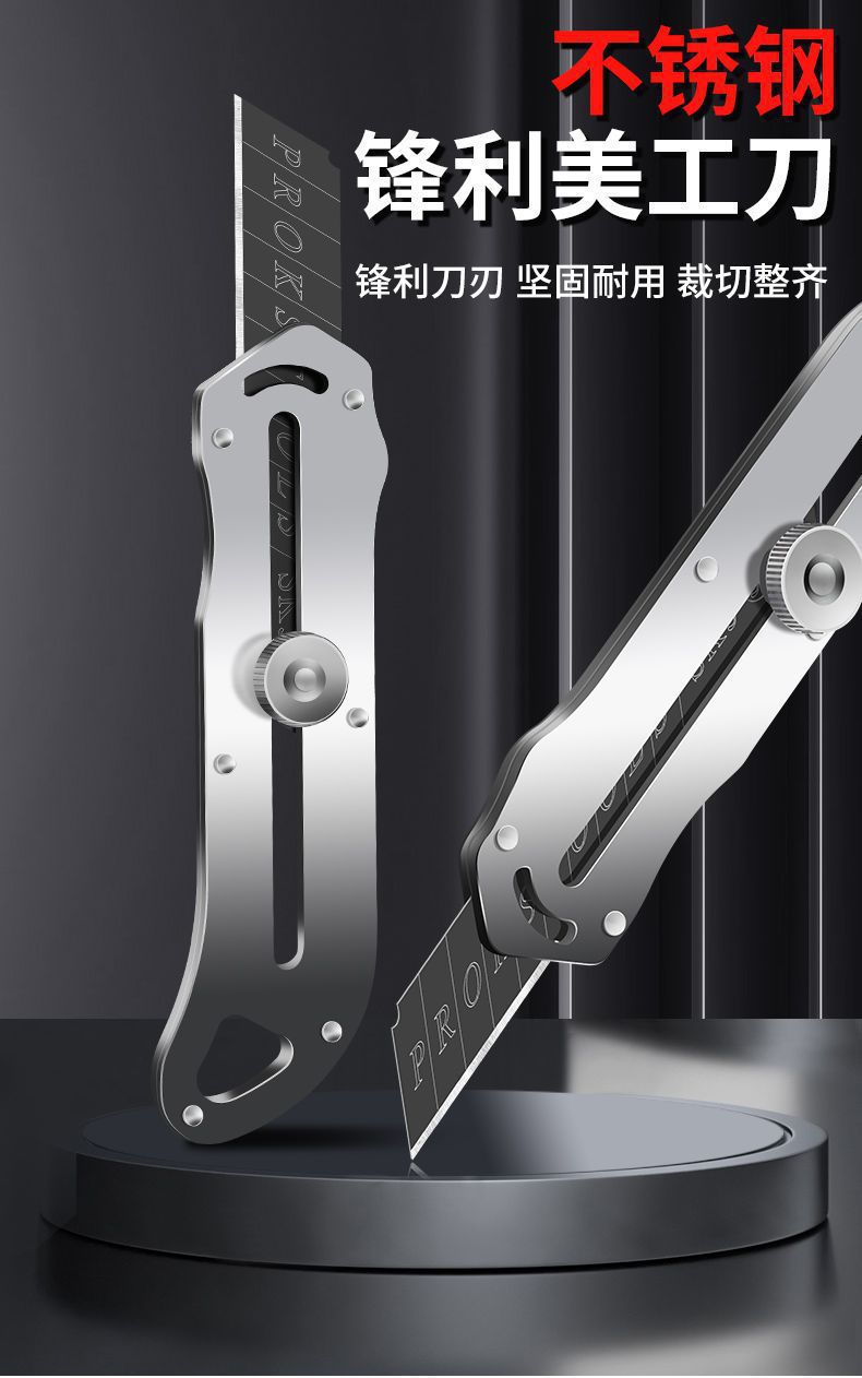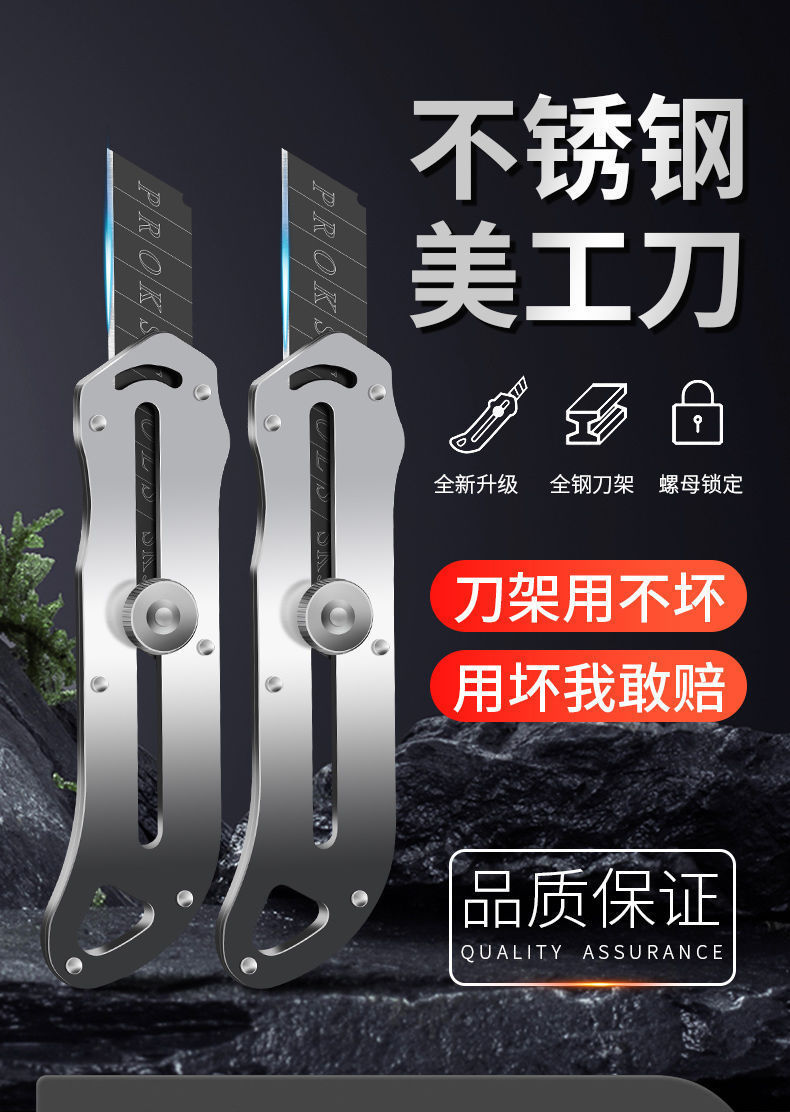 重型工业级不锈钢金属美工刀雕刻裁纸壁纸刀全钢木工刀片一件代发