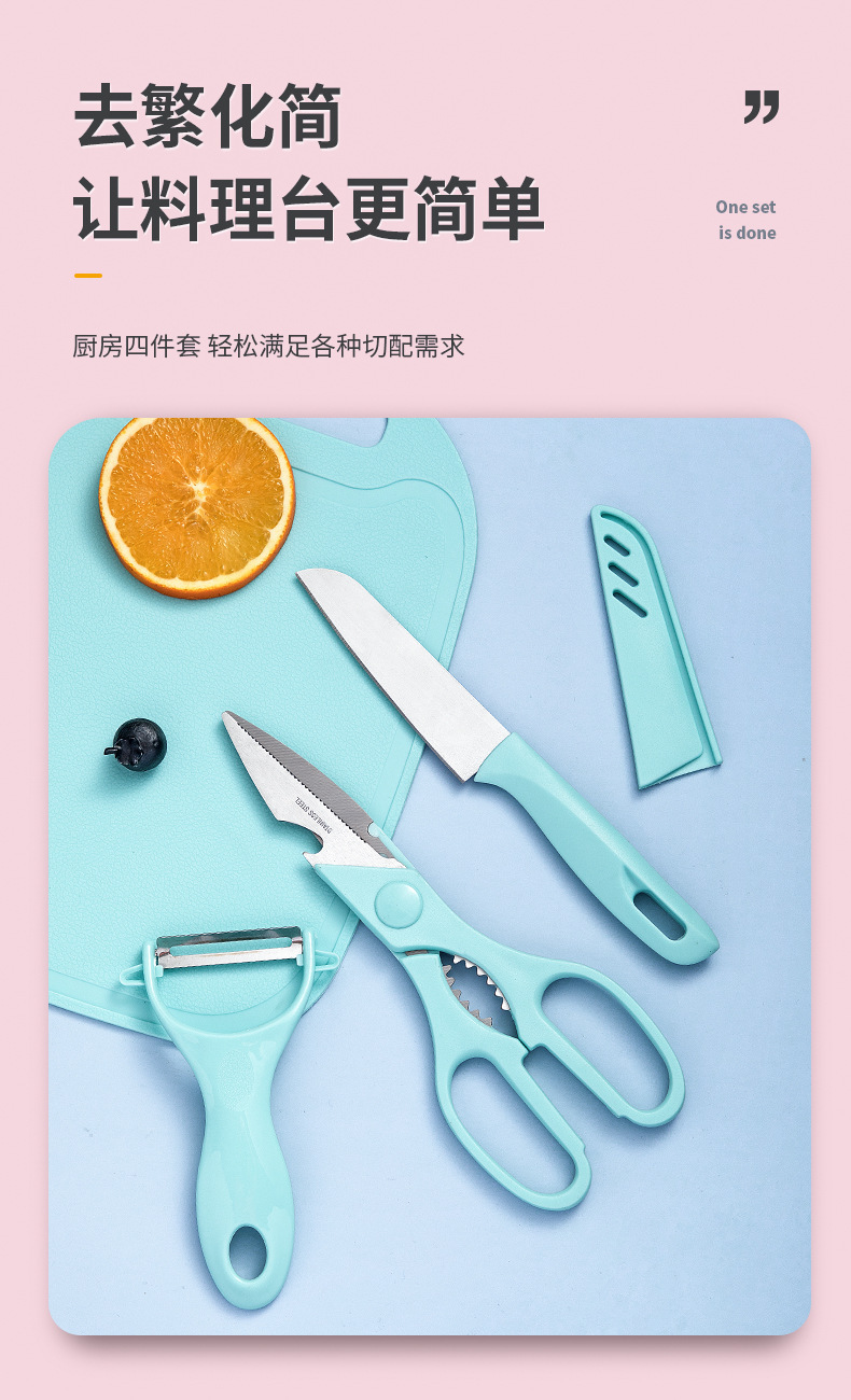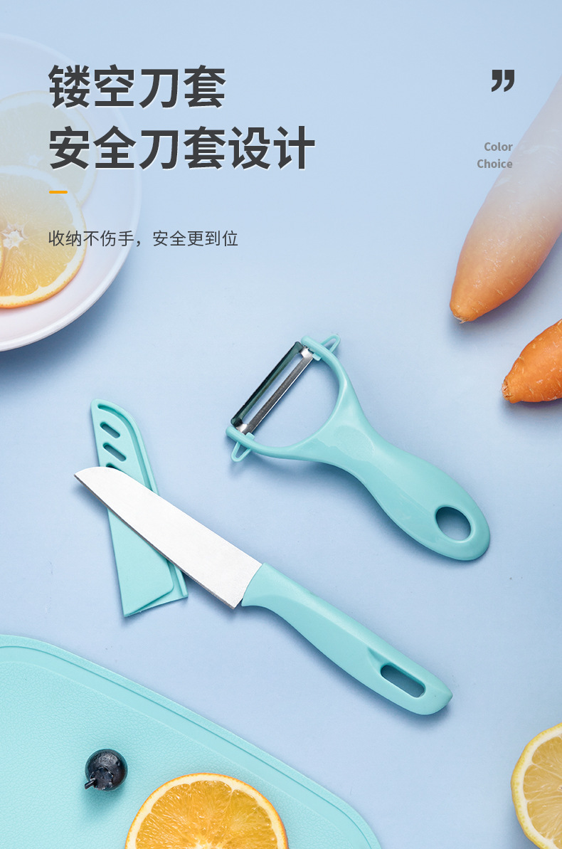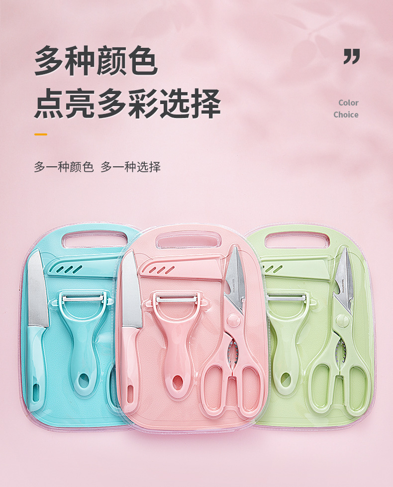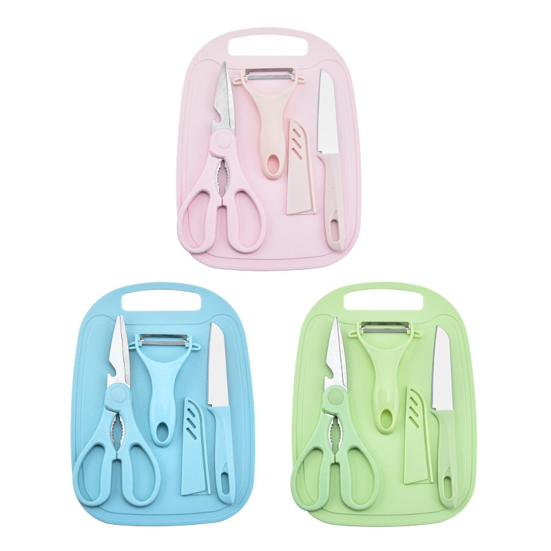 家用小刀4件套小砧板削皮器剪刀瓜刨组合刀辅食刀具套装厨房用