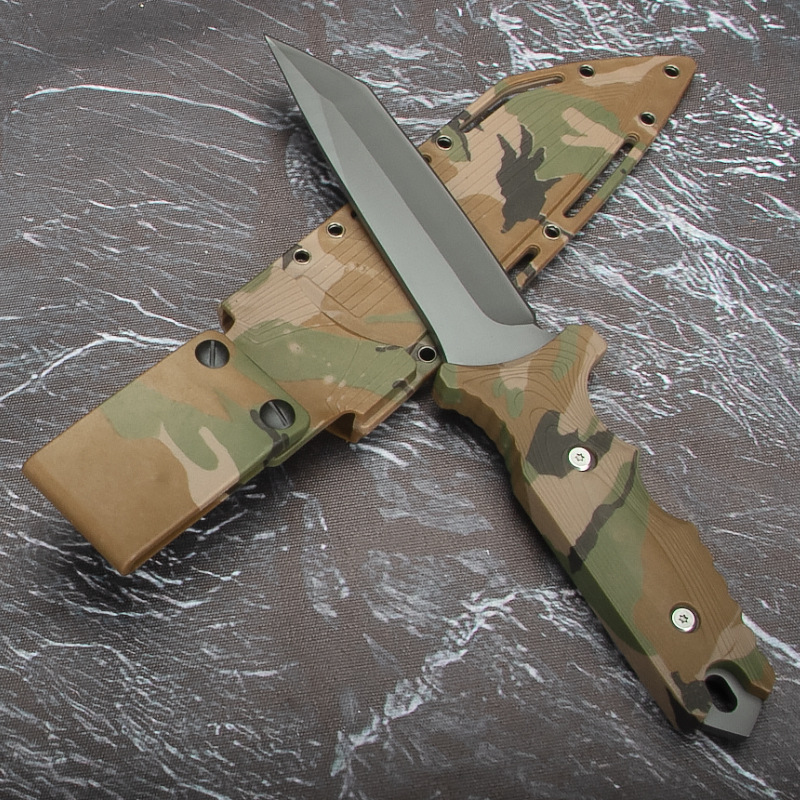 迷彩直刀高硬度丛林战术钓鱼防身野营户外登山先锋多功能水果小刀