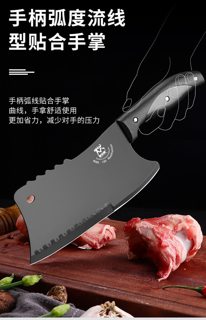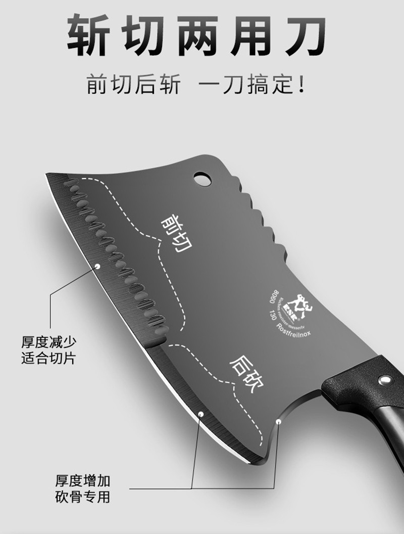 家用厨房刀具斩切两用剁骨砍骨头刀专用厨刀黑钢砍切两用菜刀现货