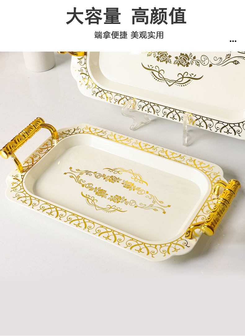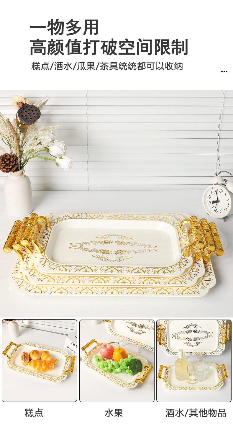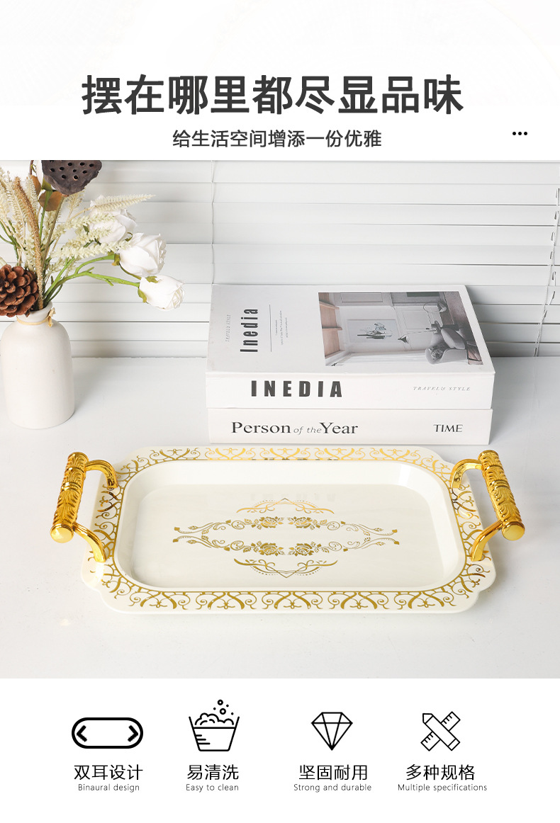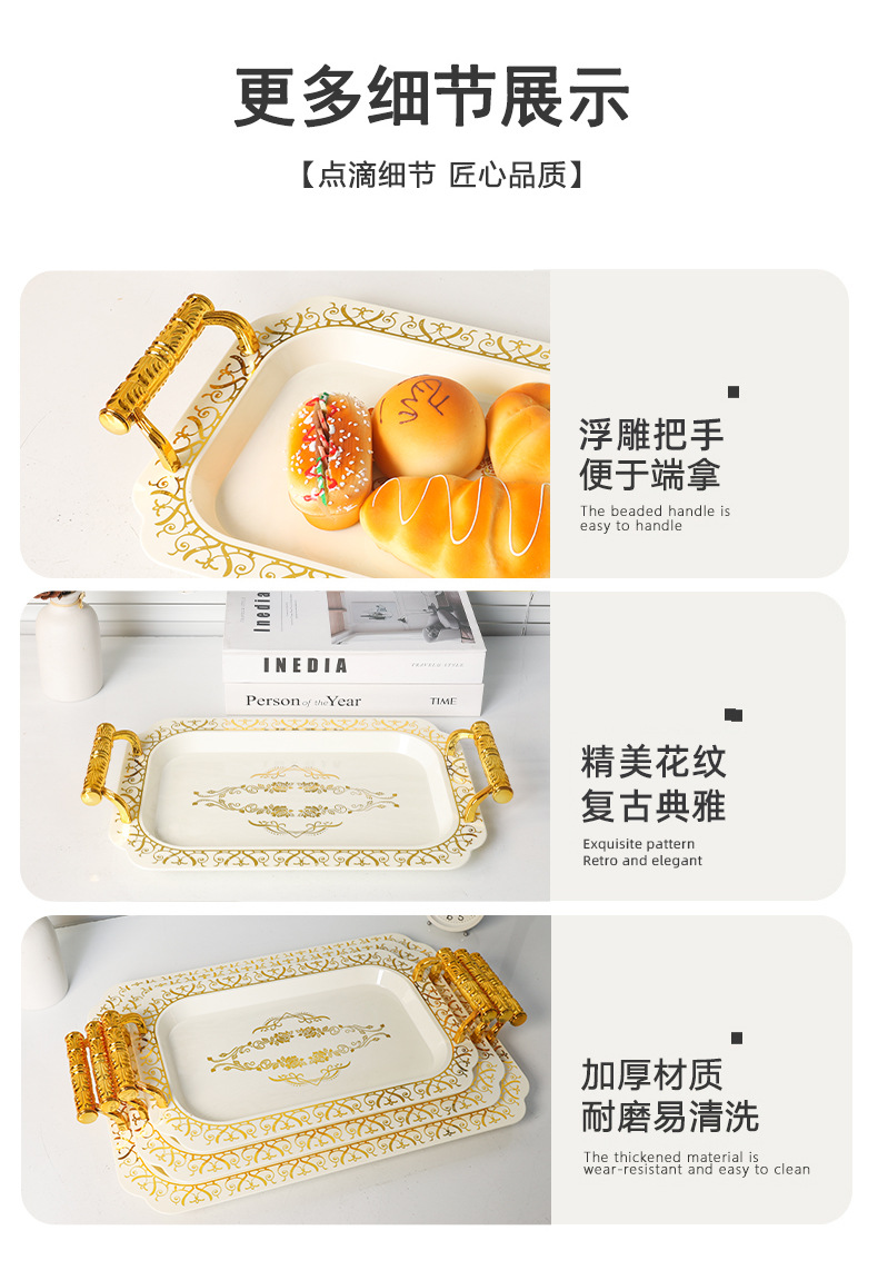 白金长方形托盘浮雕把手跨境电商北欧轻奢风果盘茶盘点心盘放水杯