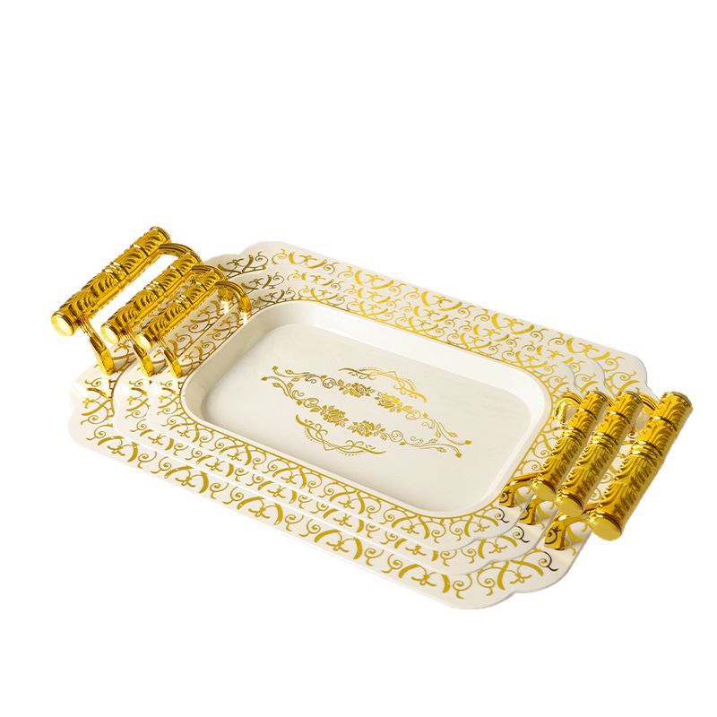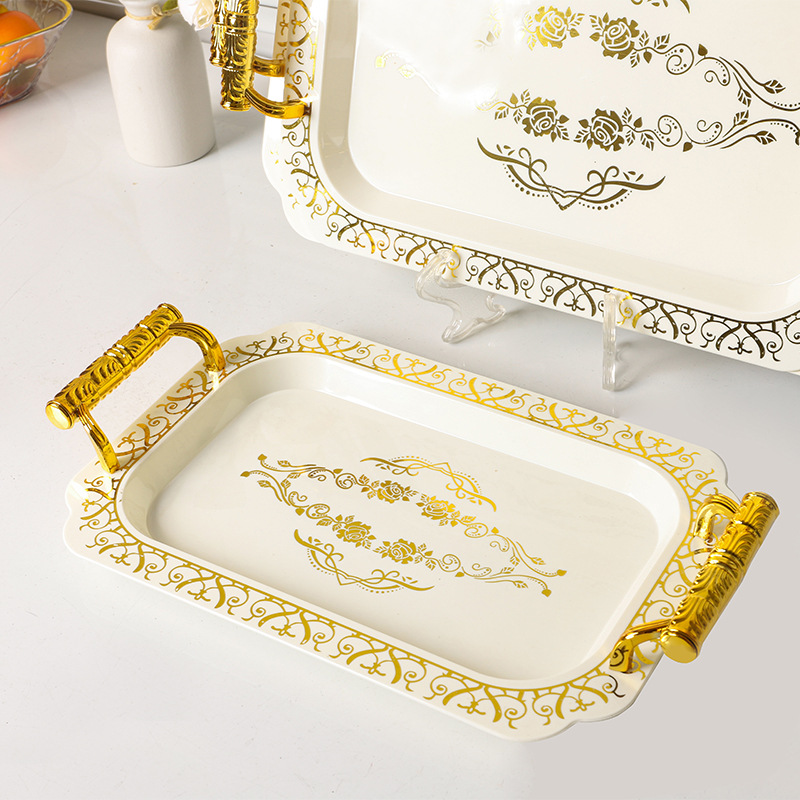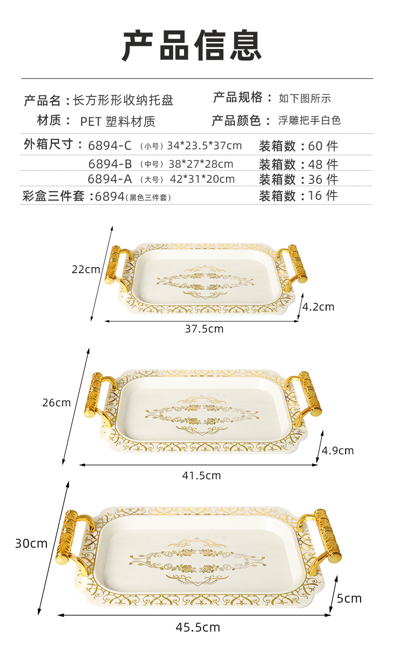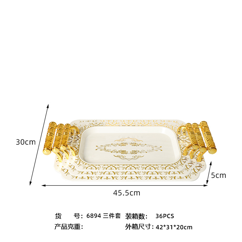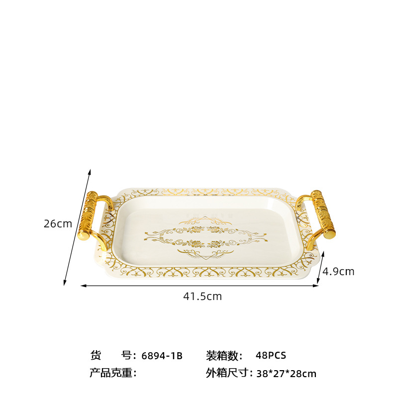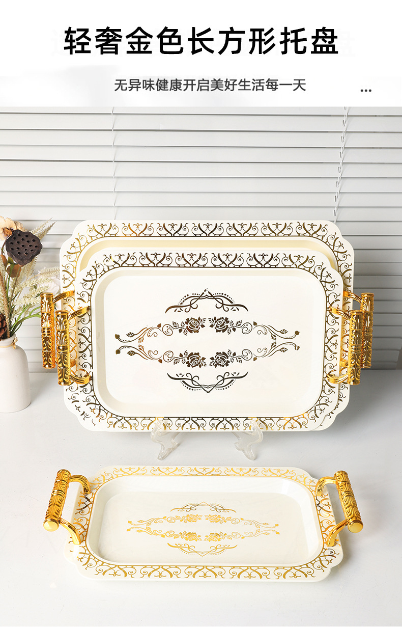 白金长方形托盘浮雕把手跨境电商北欧轻奢风果盘茶盘点心盘放水杯