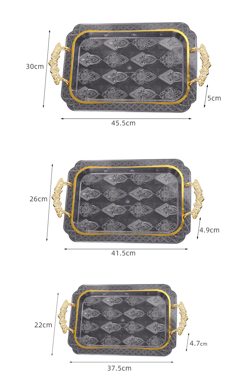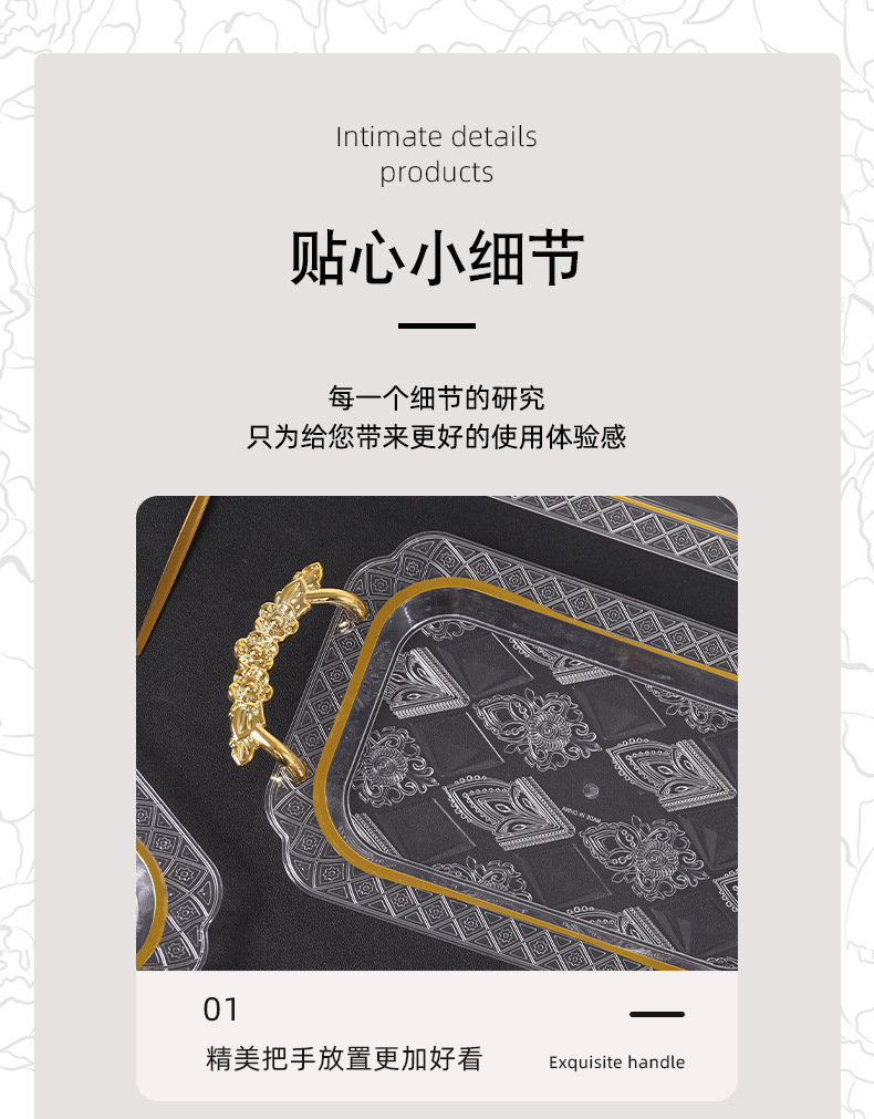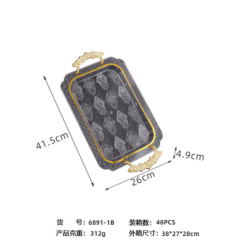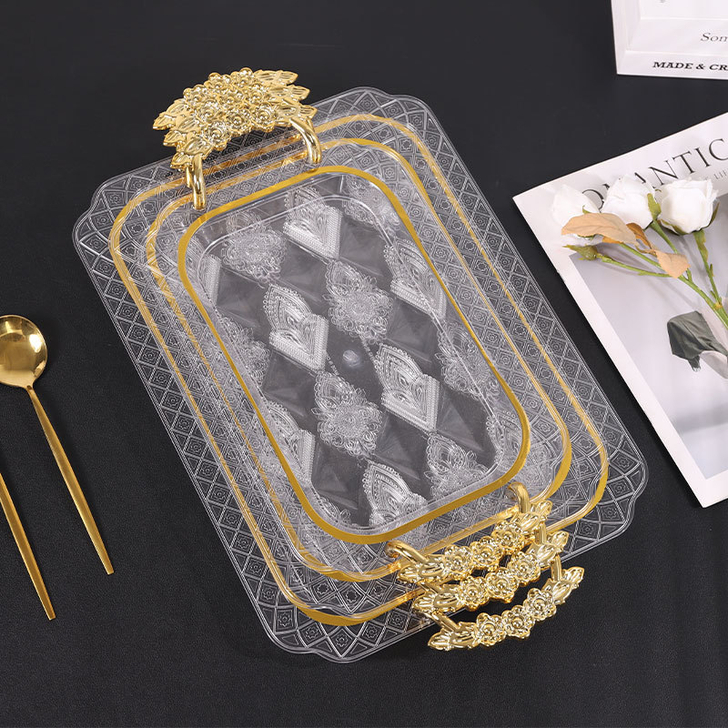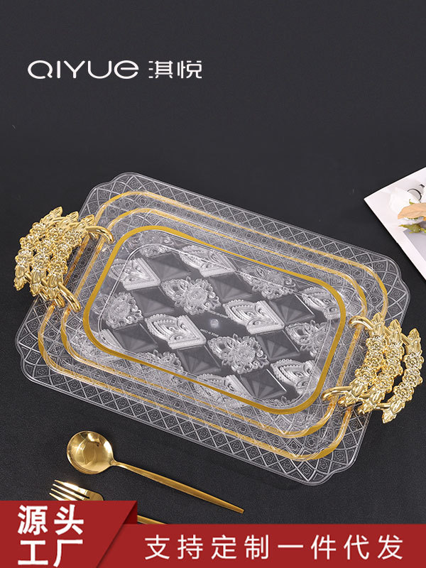 透明长方形玫瑰手柄烫金轻奢托盘跨境tray茶盘果盘点心盘放水杯盘