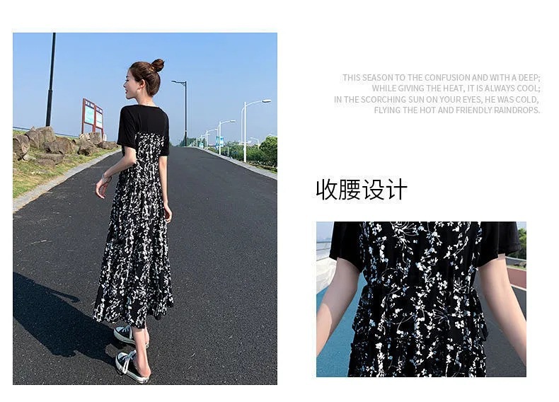 连衣裙女2022夏装新款赫本风中长款碎花裙气质高腰显瘦短袖长裙子