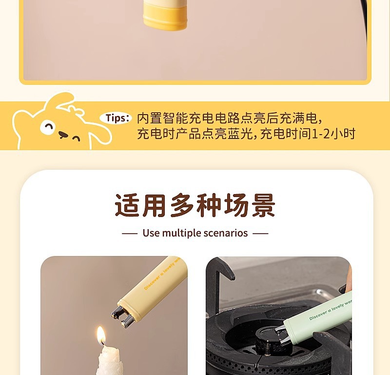 萌趣点火器燃气灶电子点火棒枪充电款耐用香薰蜡烛加长防风打火机
