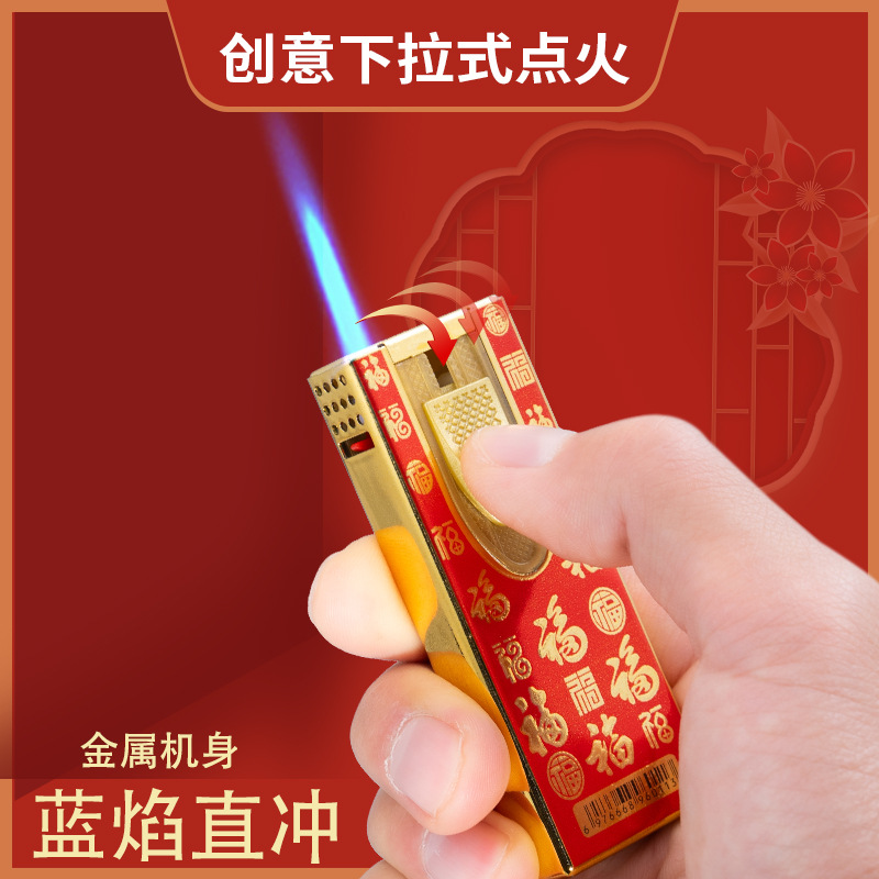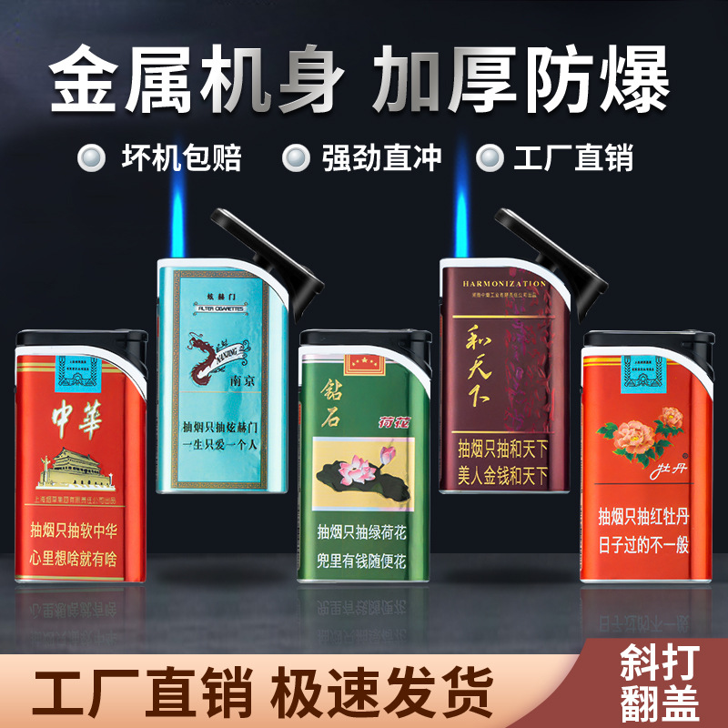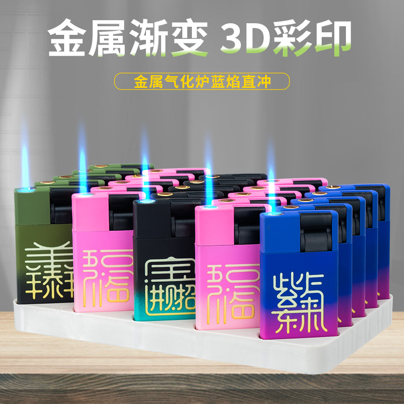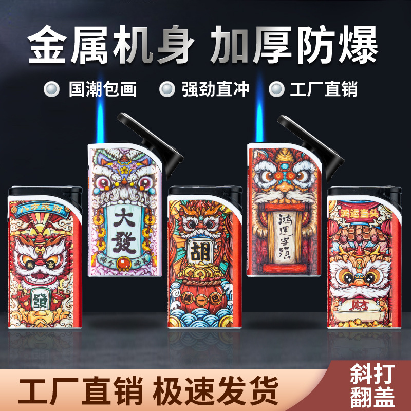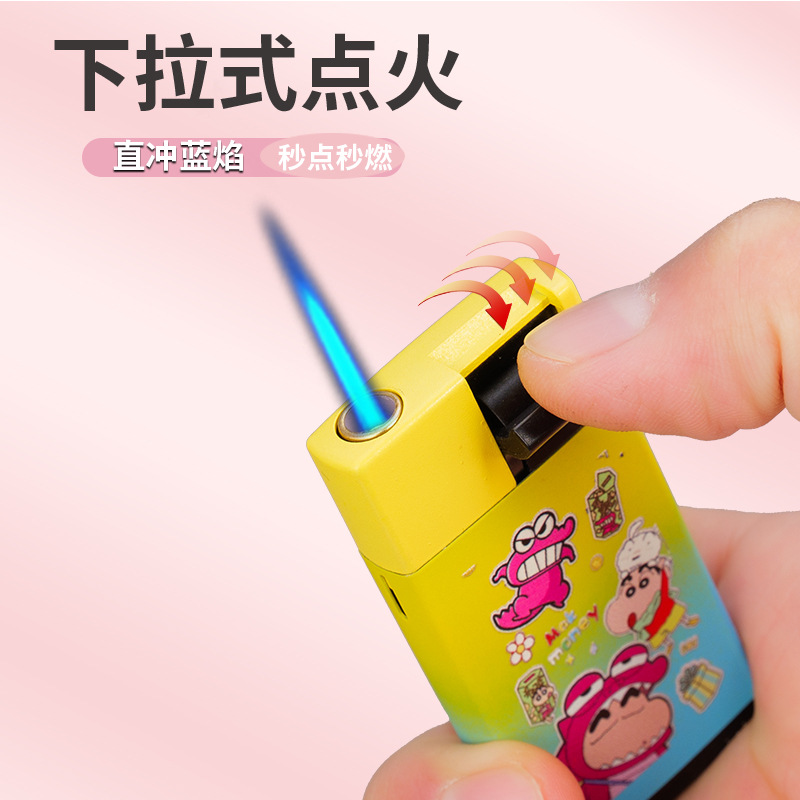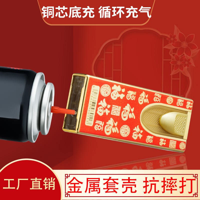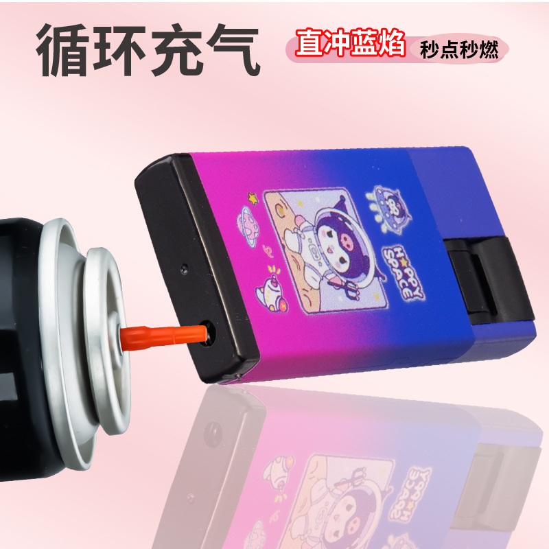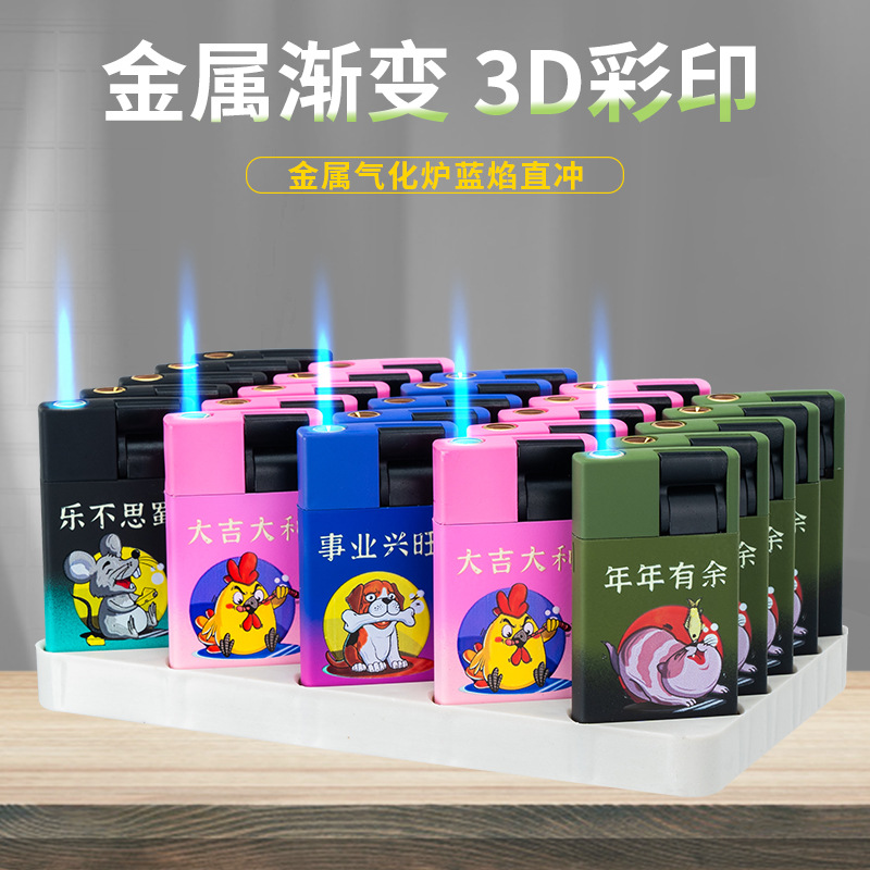 批发网红卡通扣扣机铁壳金属防风充气打火机定 制UV打印黑硅胶