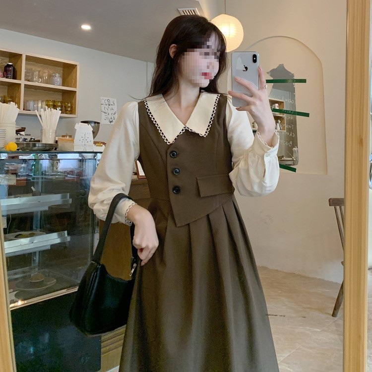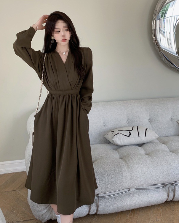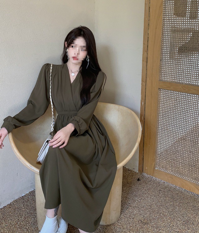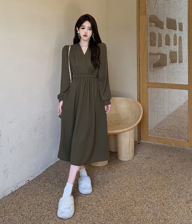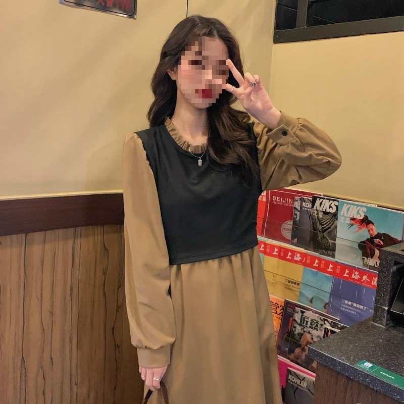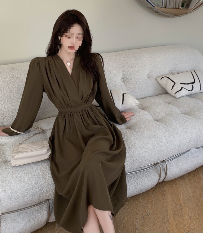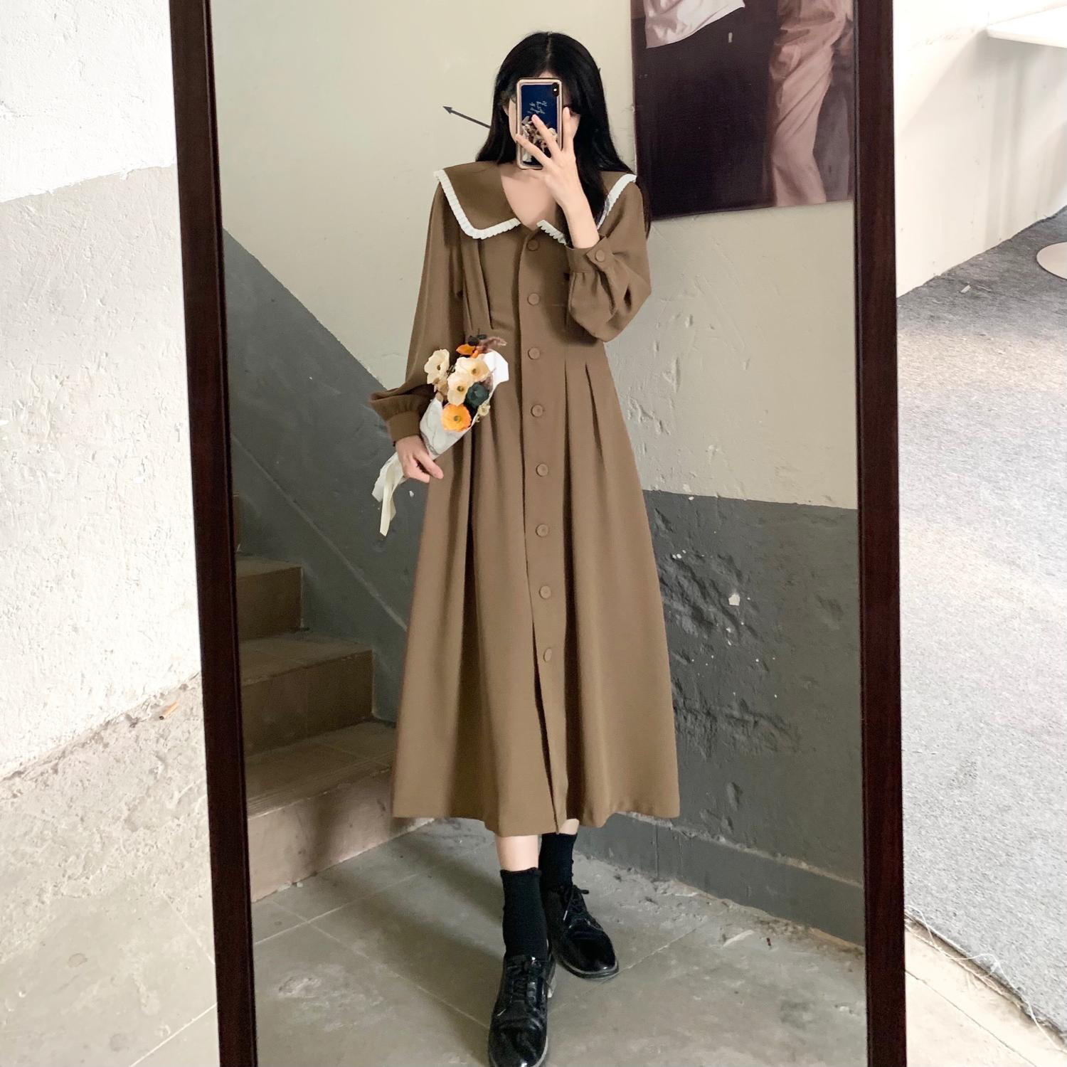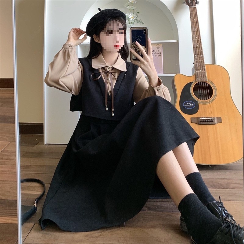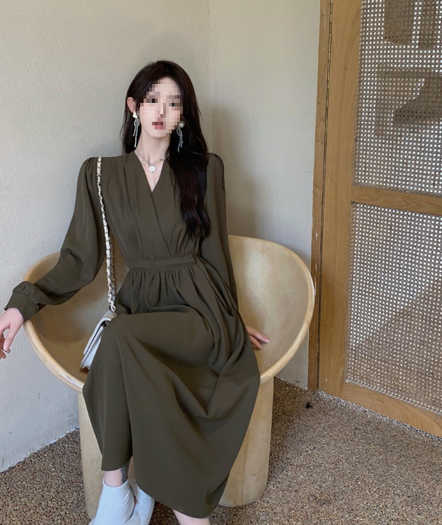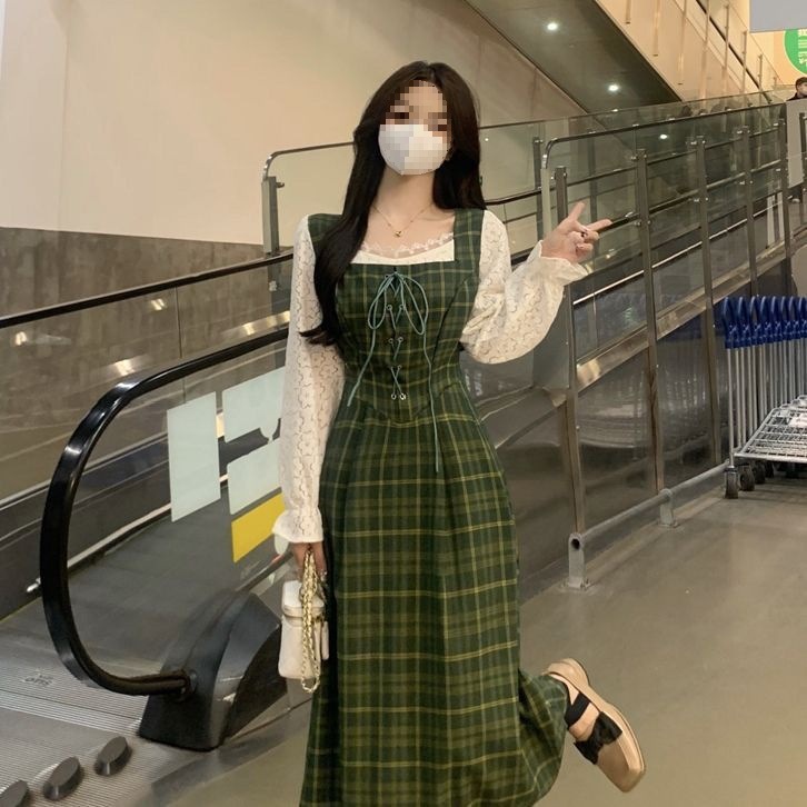 裙子女夏新款黑色连衣裙法式减龄遮肚复古方领过膝收腰长款裙