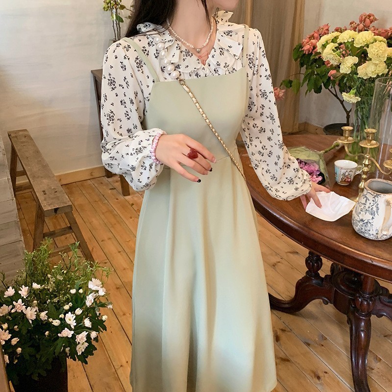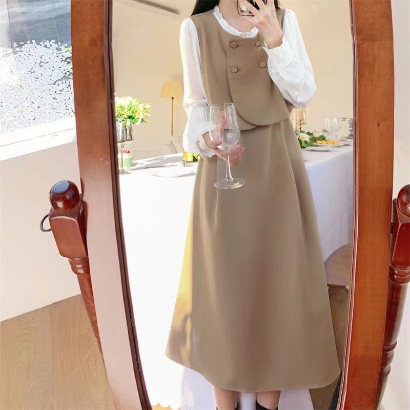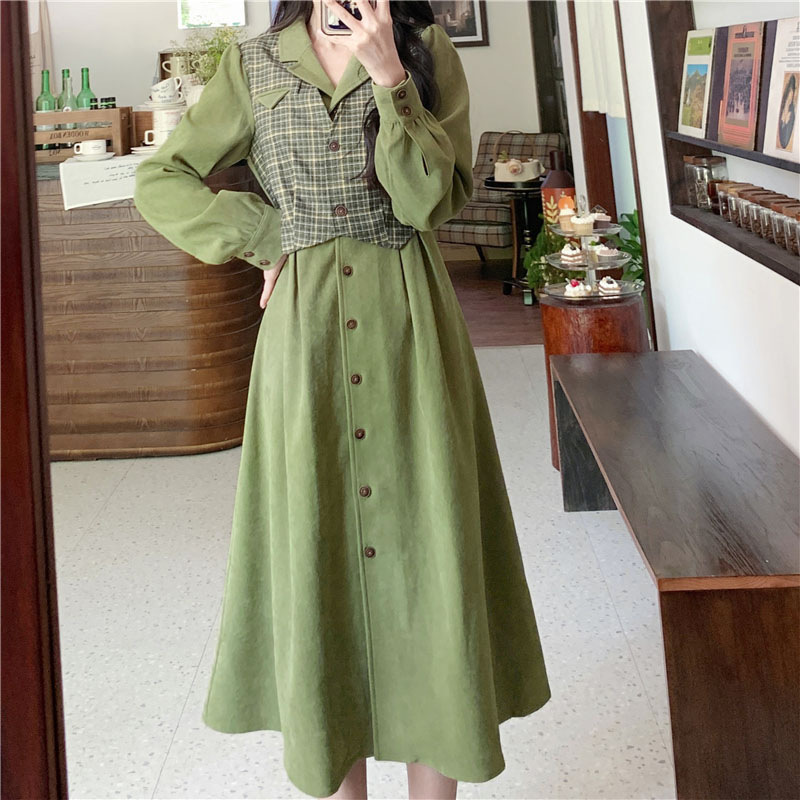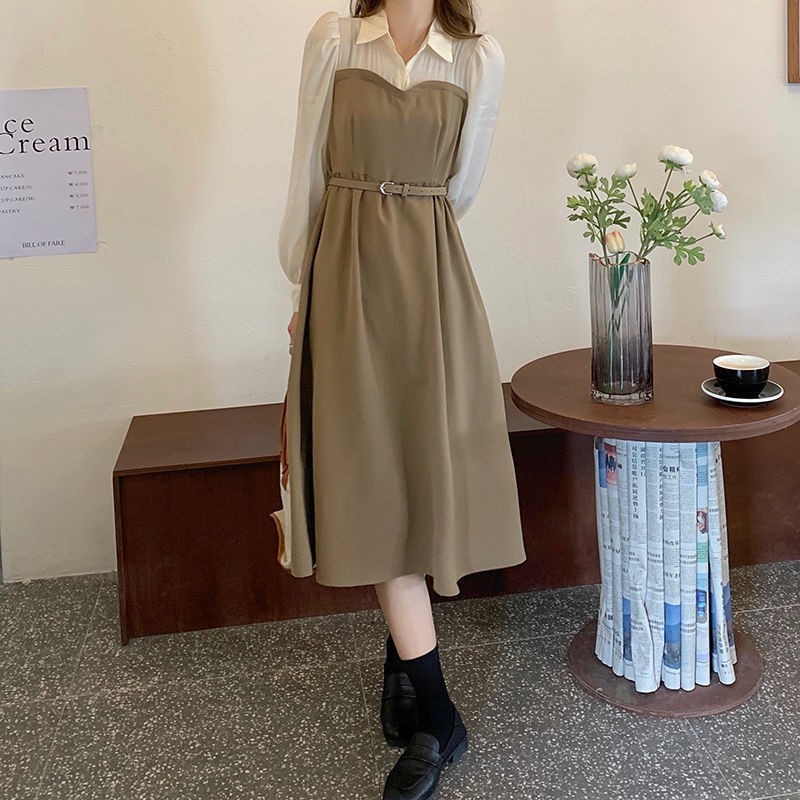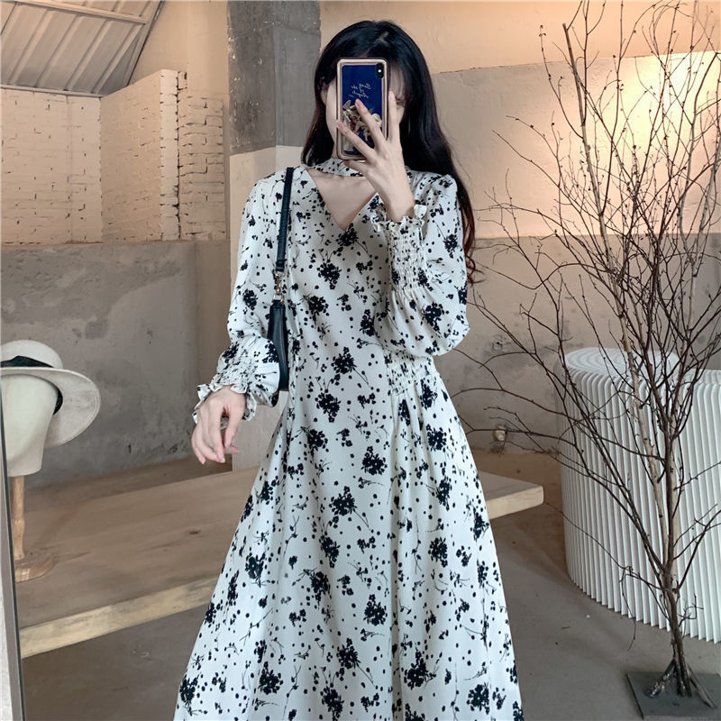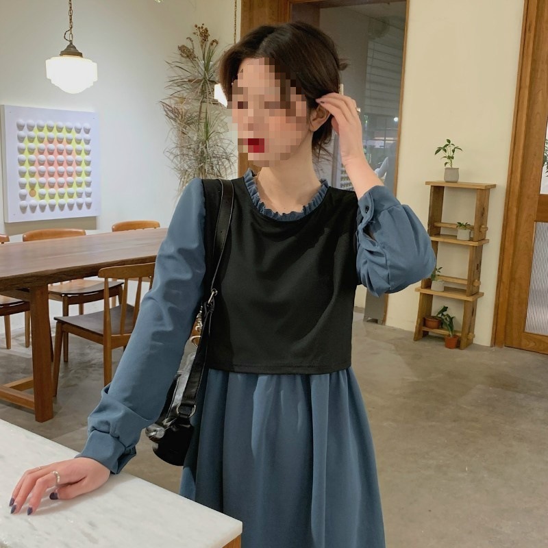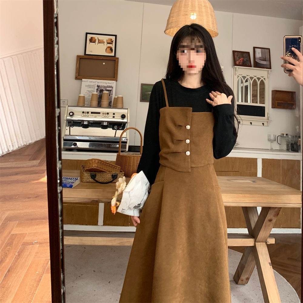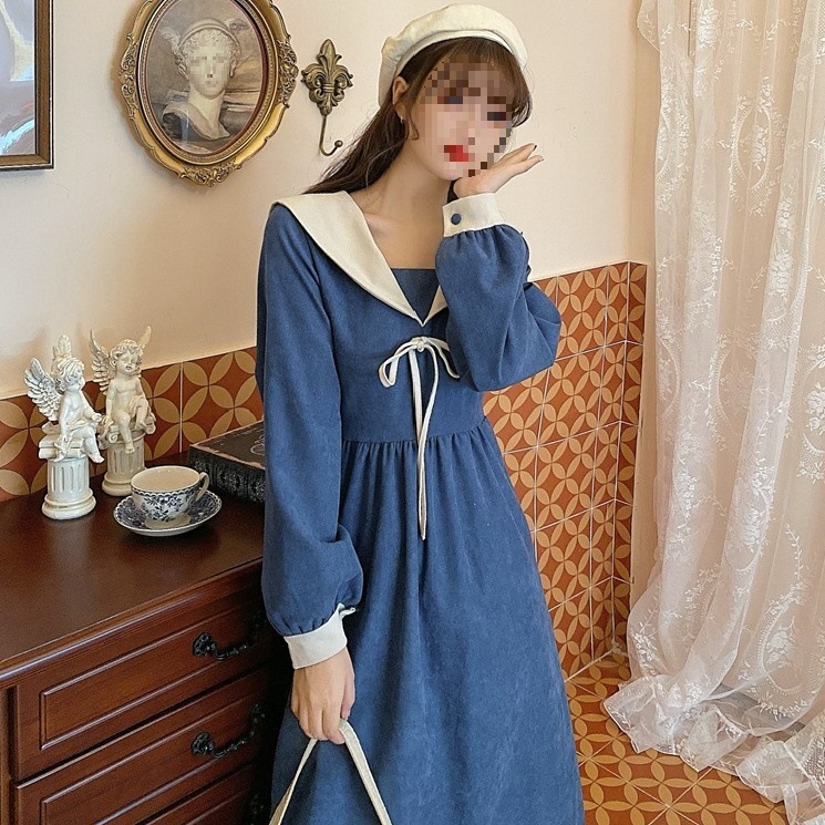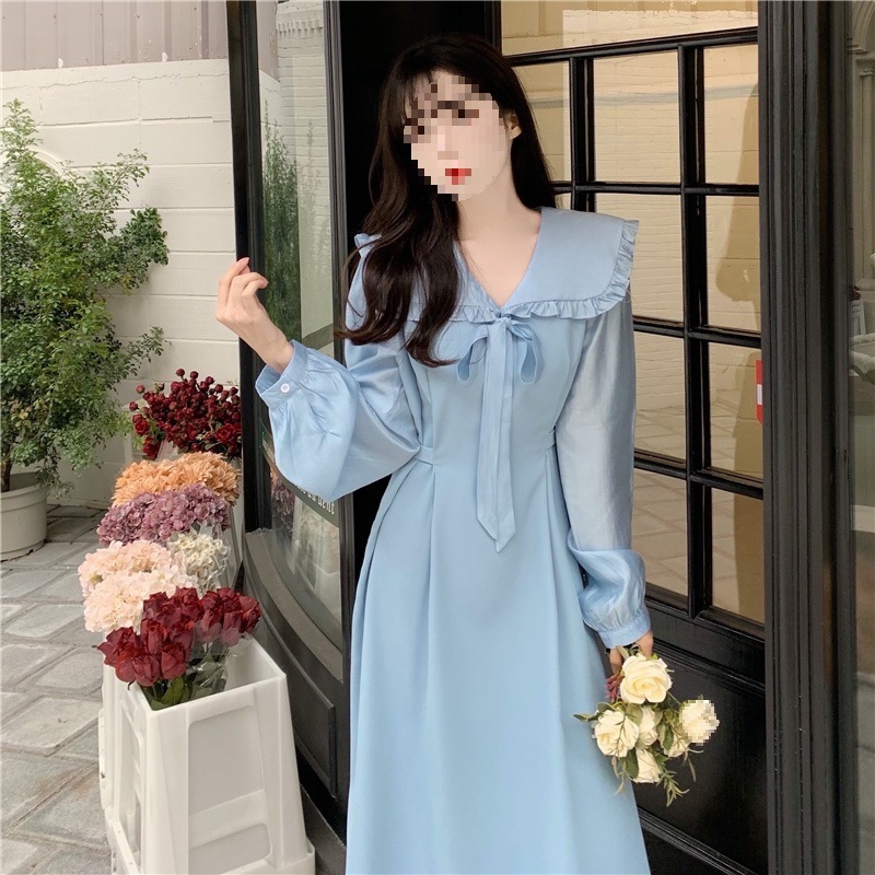 裙子女夏新款黑色连衣裙法式减龄遮肚复古方领过膝收腰长款裙