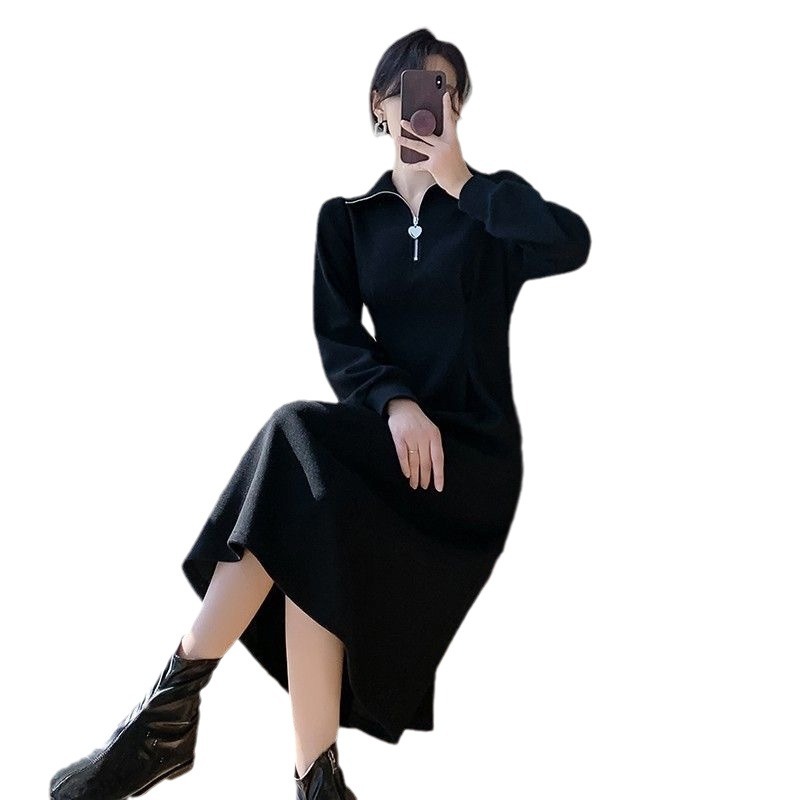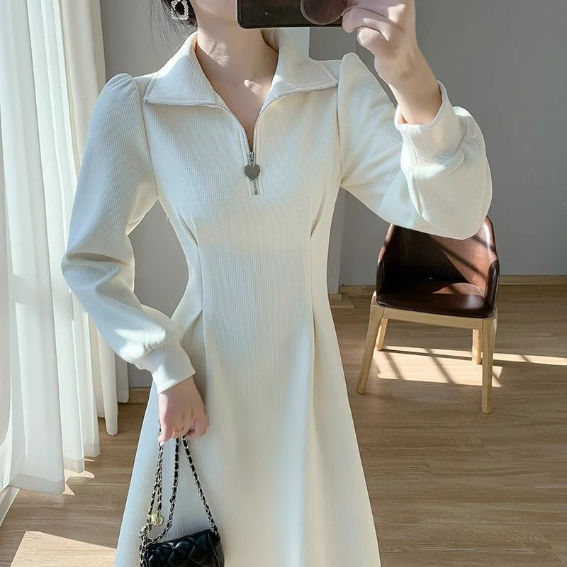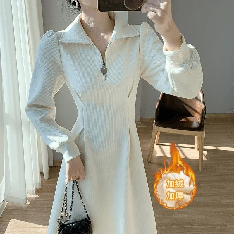 茶歇法式长袖连衣裙女小个子春季高级感气质加绒加厚大衣内搭长裙