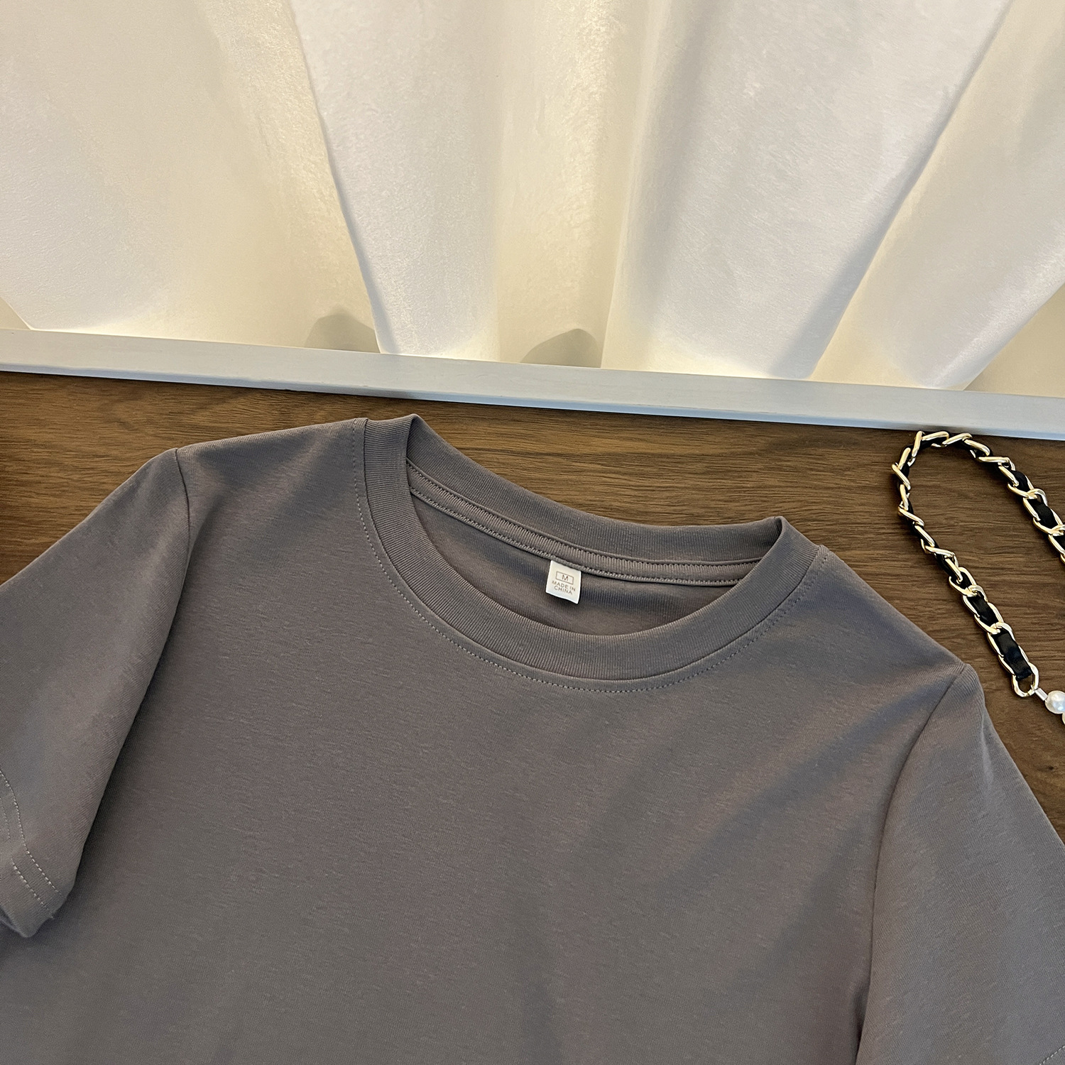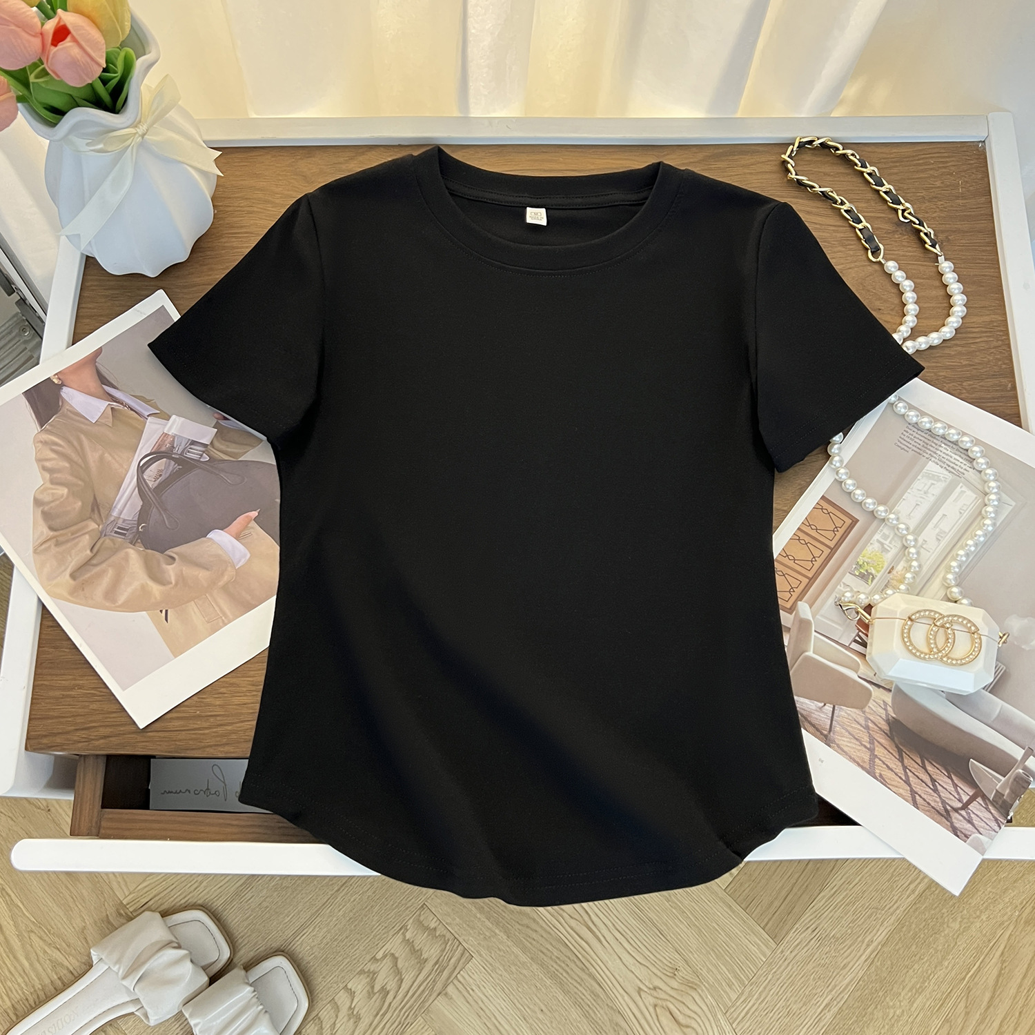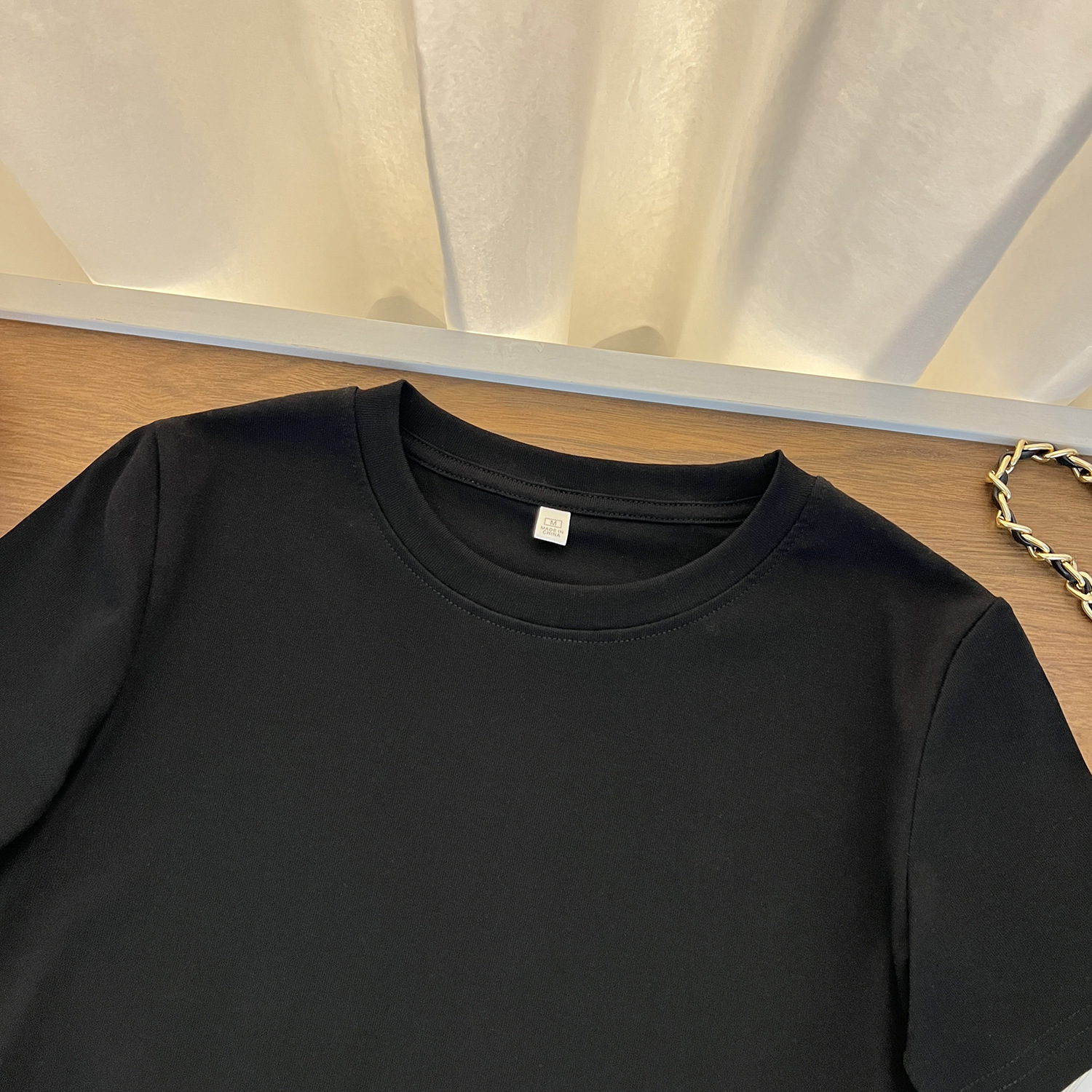 纯色正肩短款纯棉t恤女夏季夏设计感小众修身短袖小个子辣妹上衣