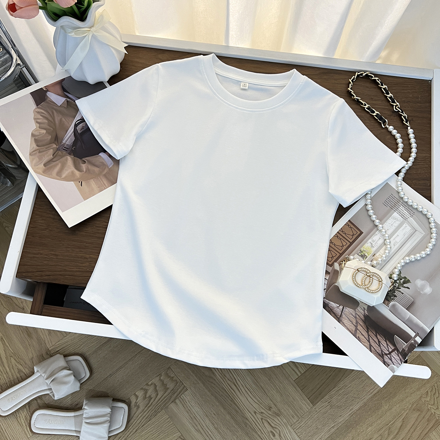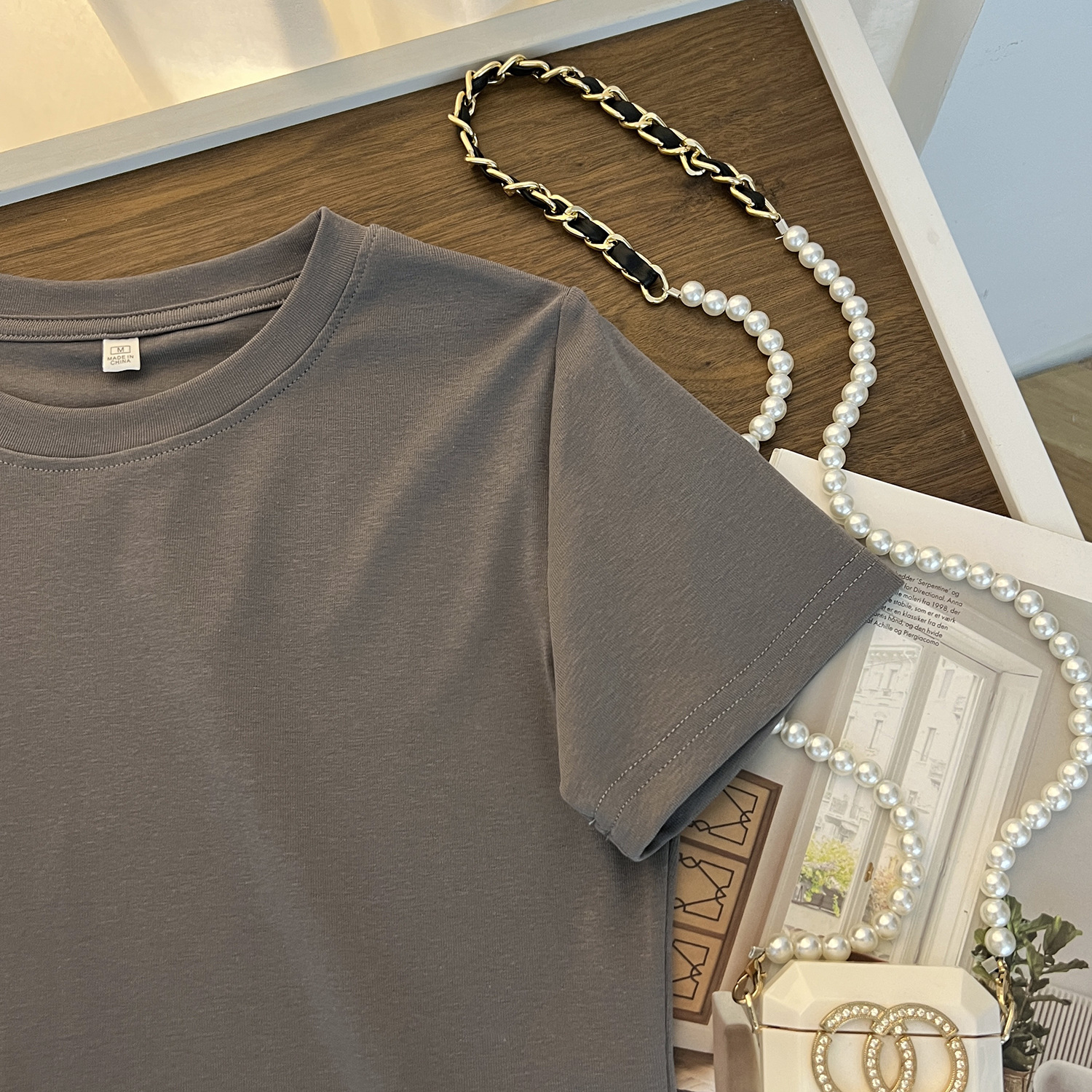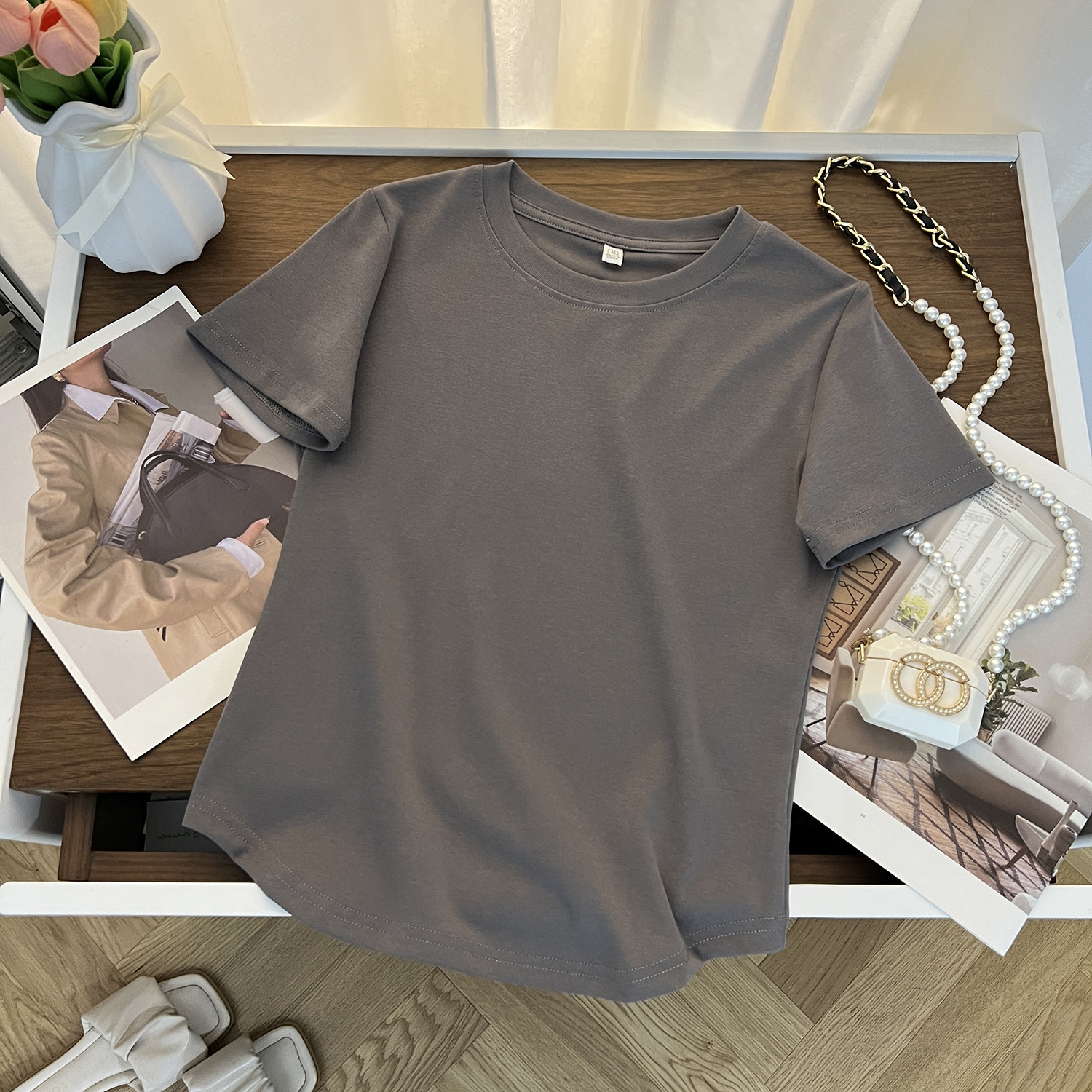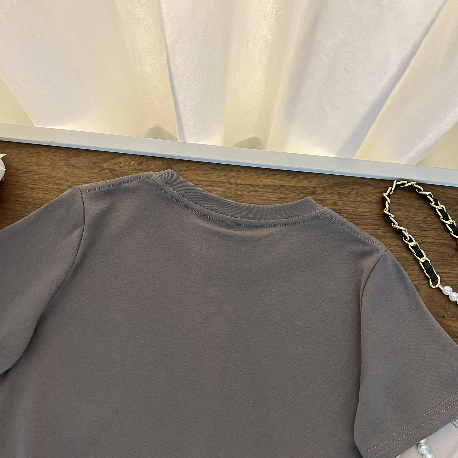 纯色正肩短款纯棉t恤女夏季夏设计感小众修身短袖小个子辣妹上衣