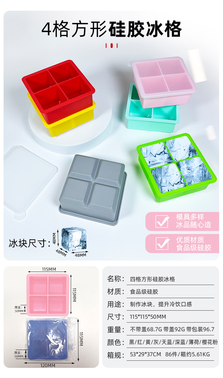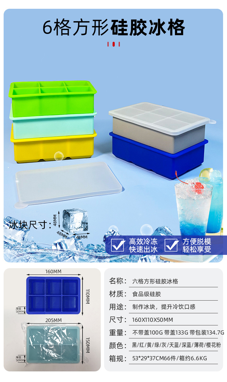 夏季硅胶冰格定制方形硅胶冰格易脱模硅胶制冰格酒吧冰块制冰模具