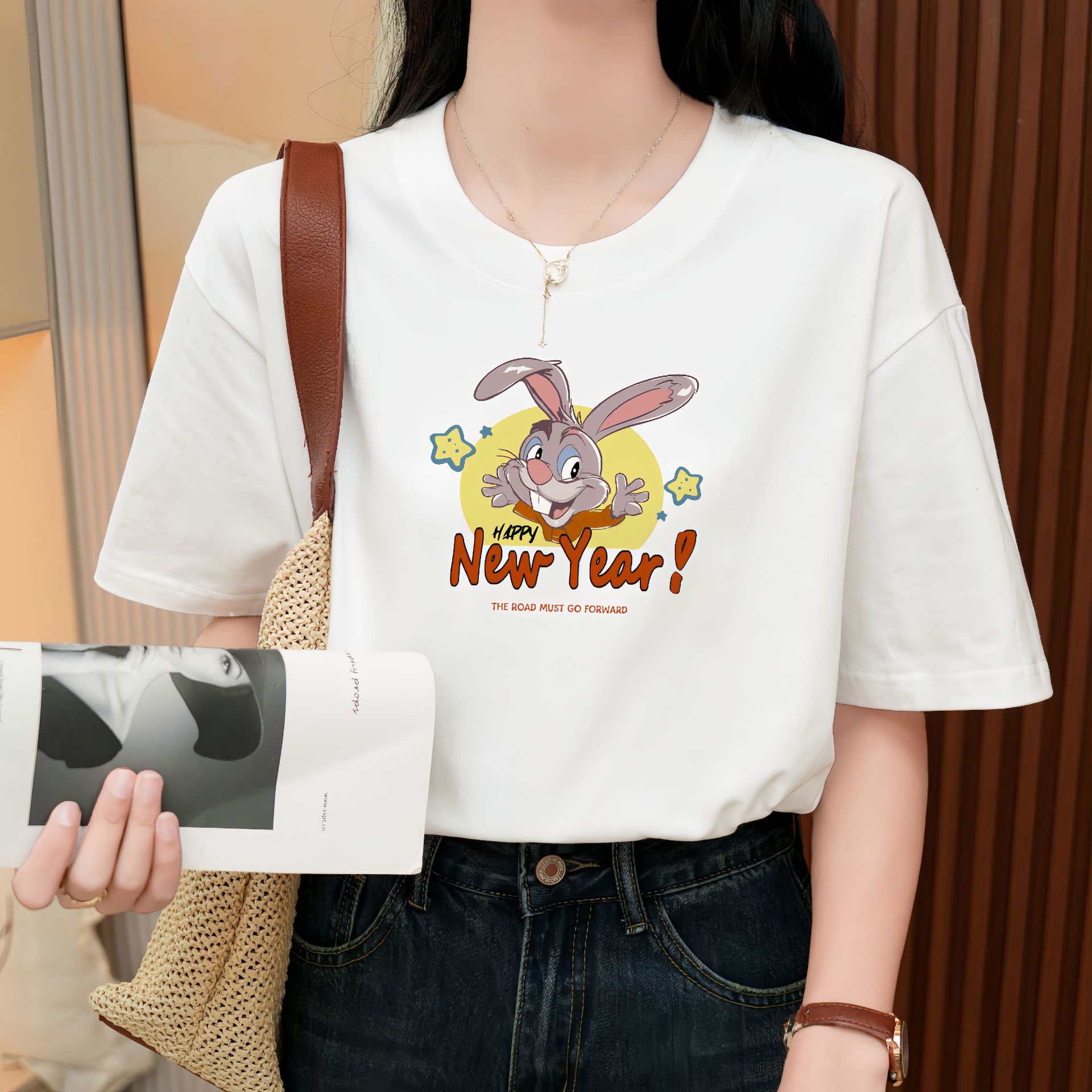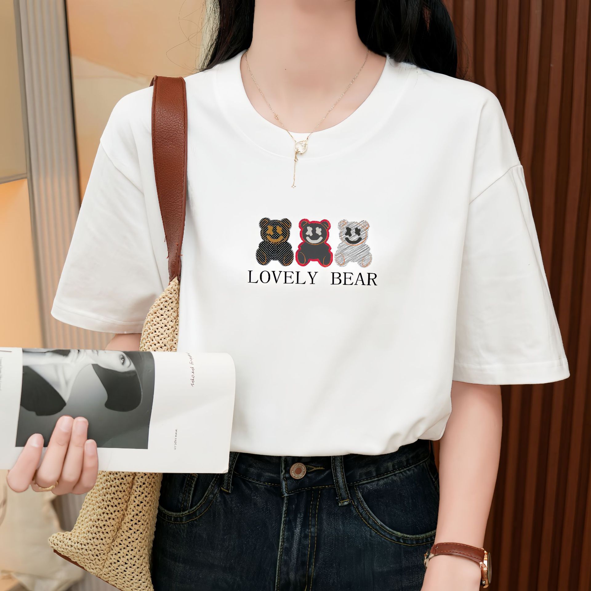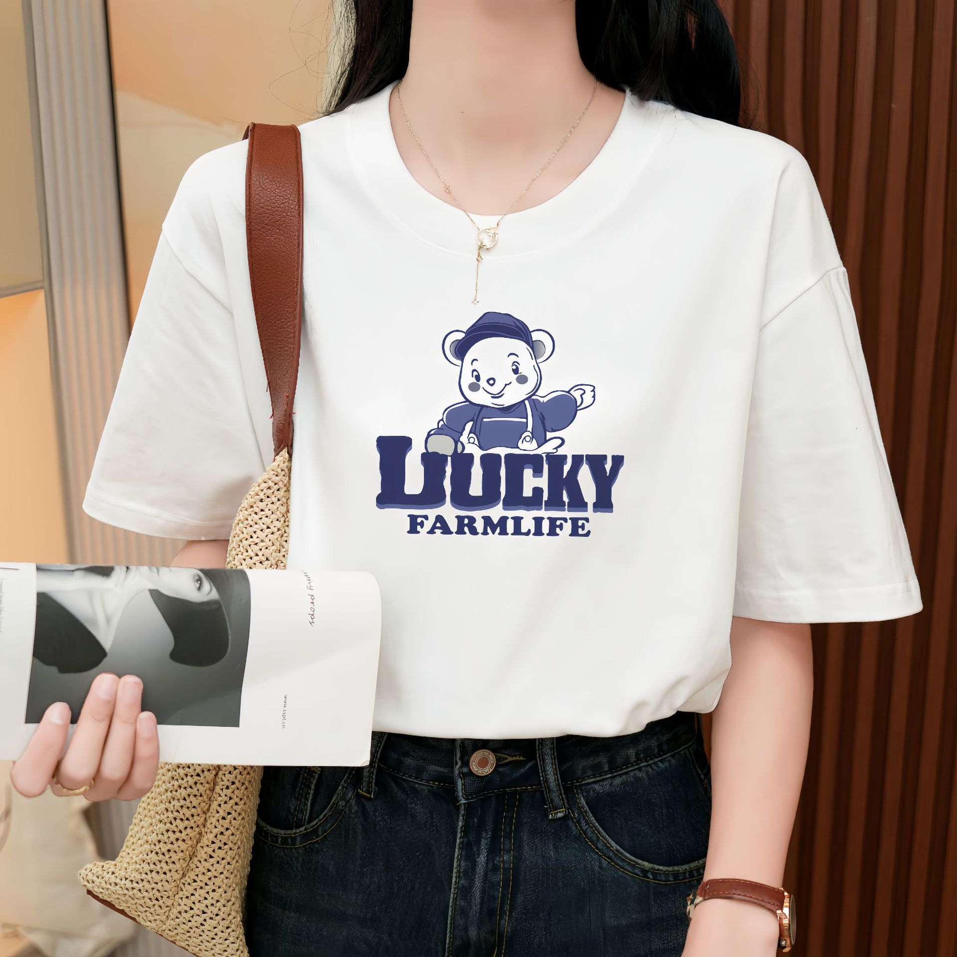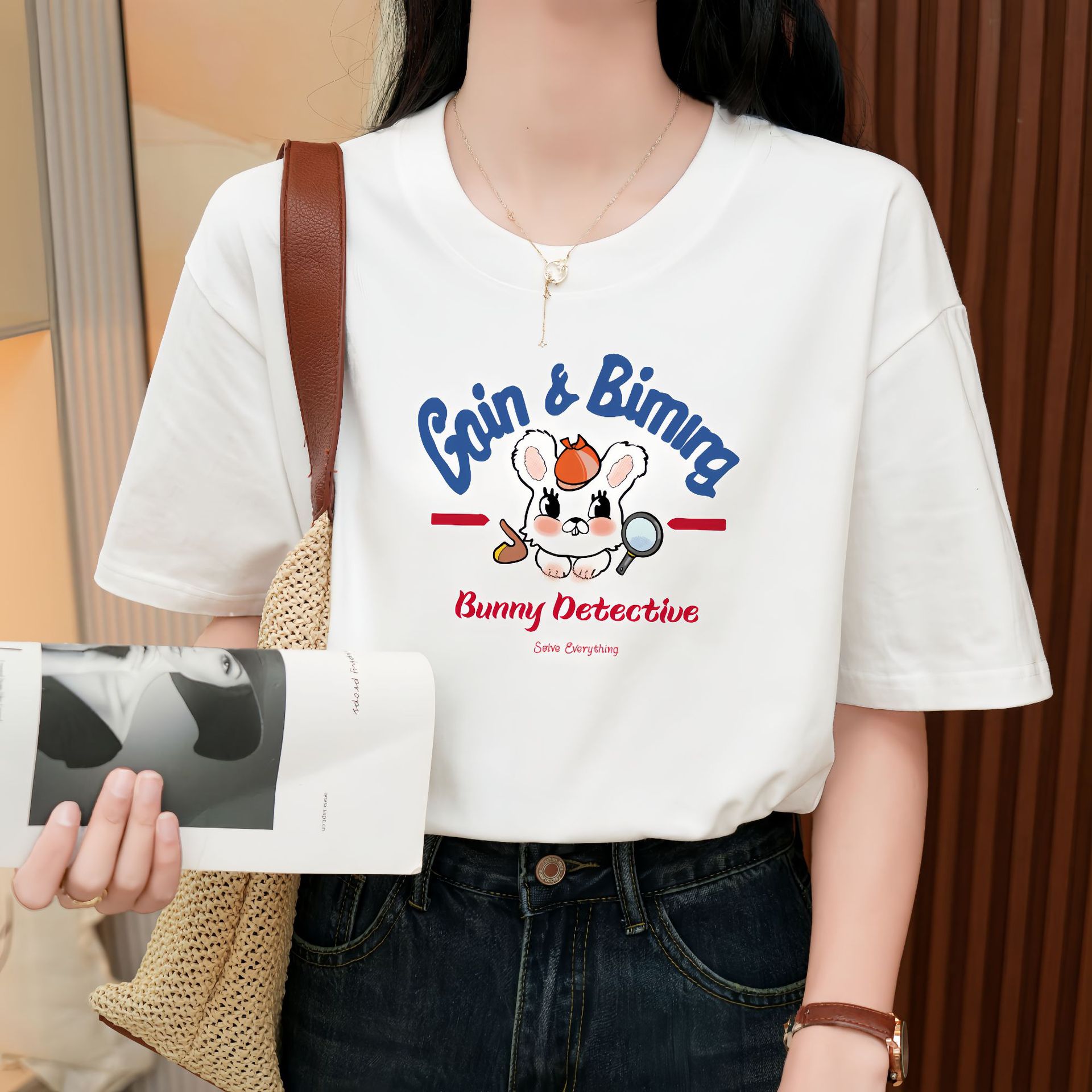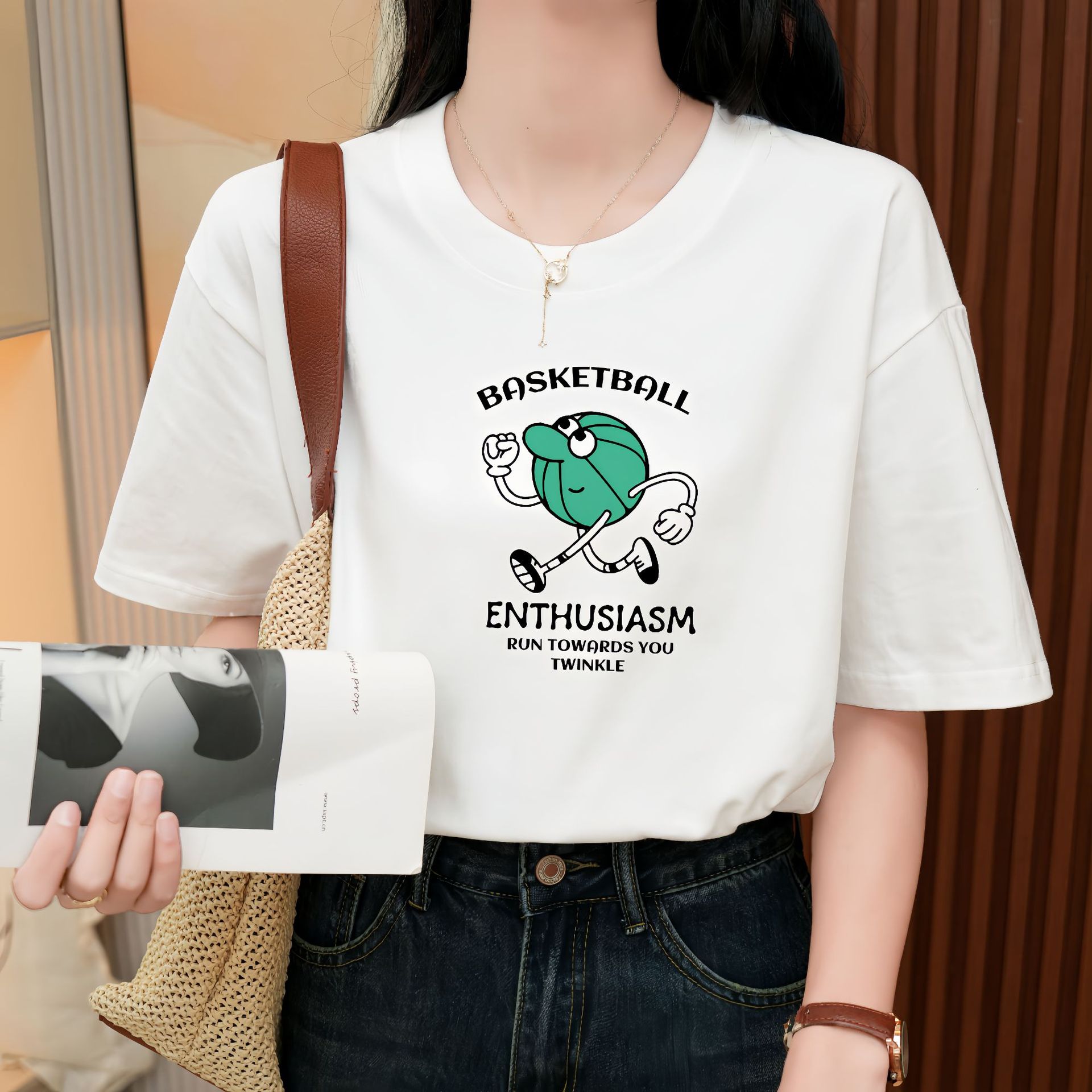 夏季重磅纯棉宽松短袖t恤女装正肩印花体恤ins潮流百搭上衣打底衫