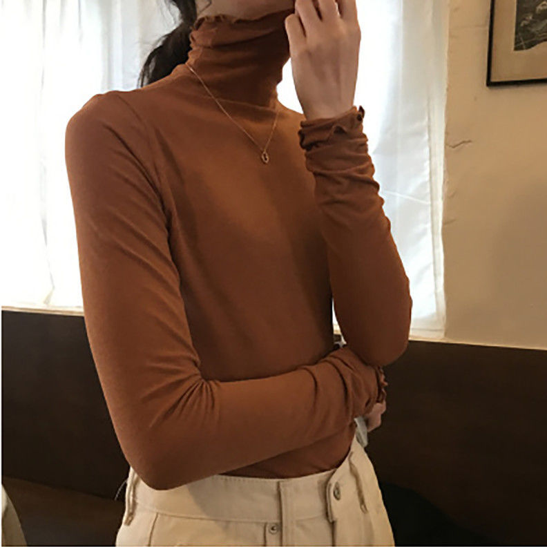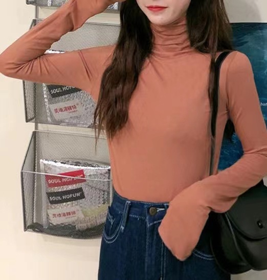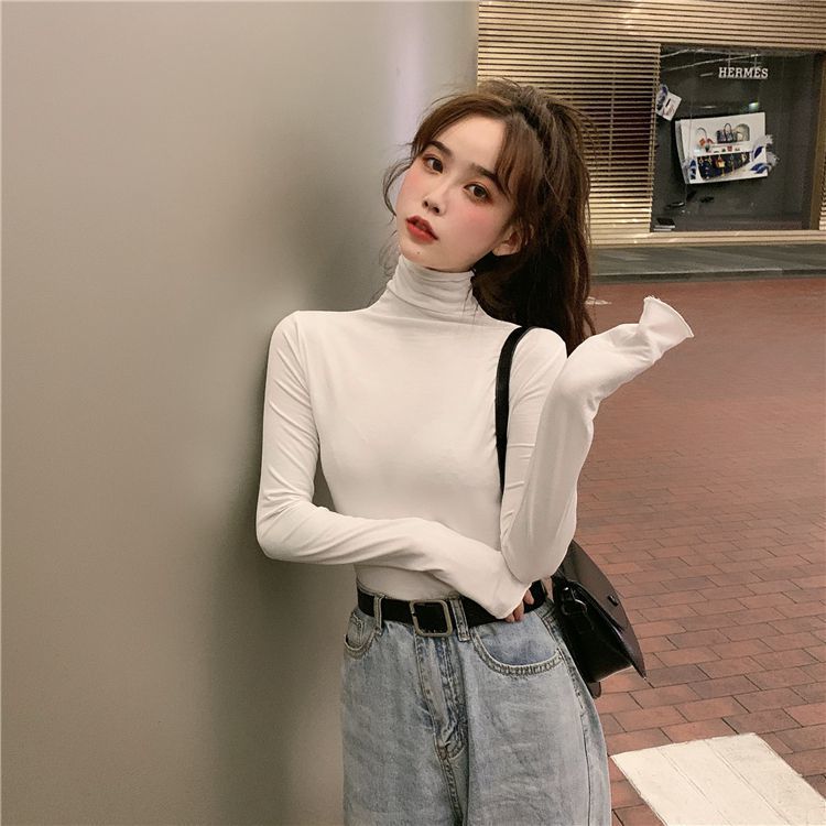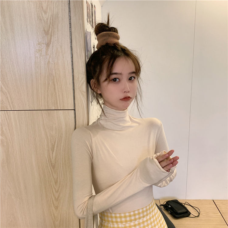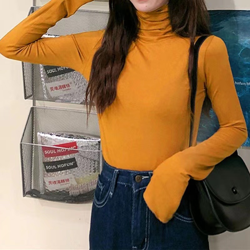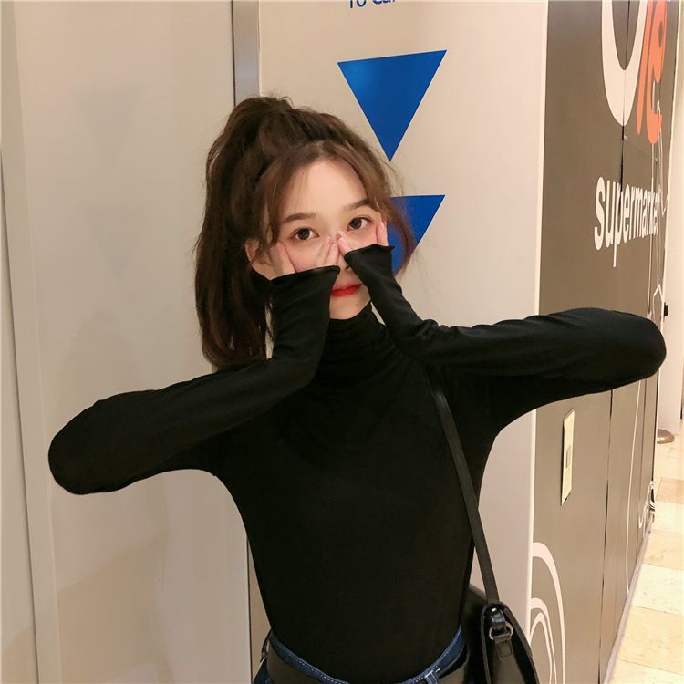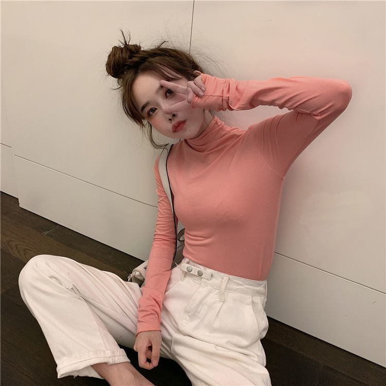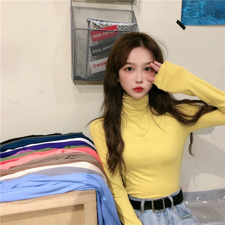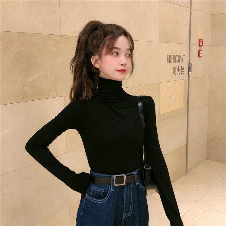 高领打底衫女秋冬新款韩版性感紧身上衣显瘦纯色内搭少女长袖T恤