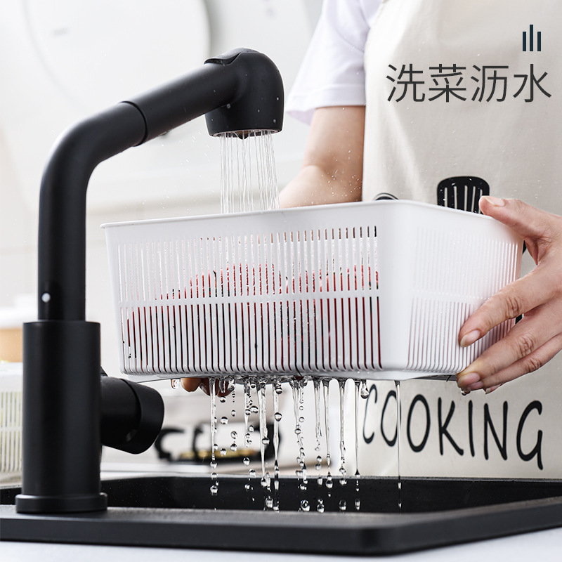 创意多功能双层沥水篮带盖厨房冰箱沥水保鲜盒塑料水果收纳