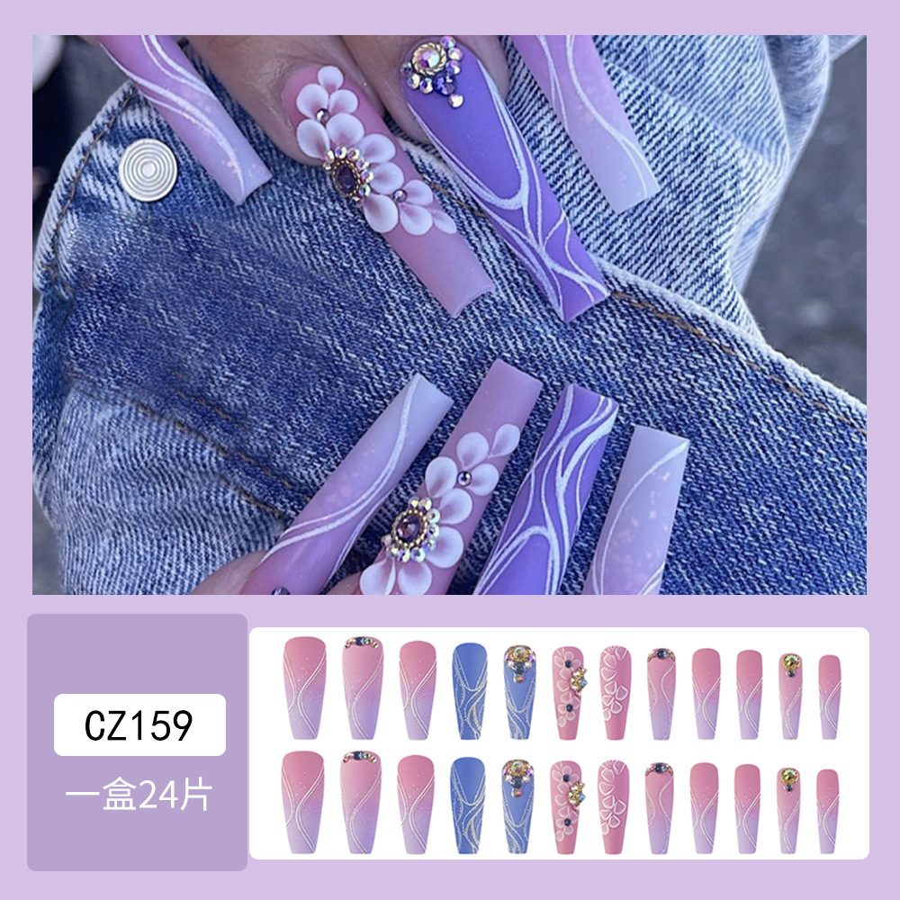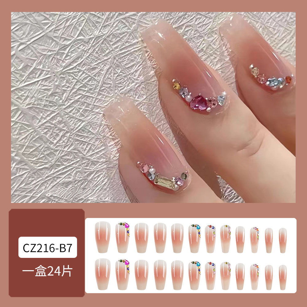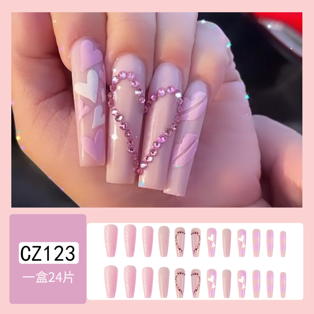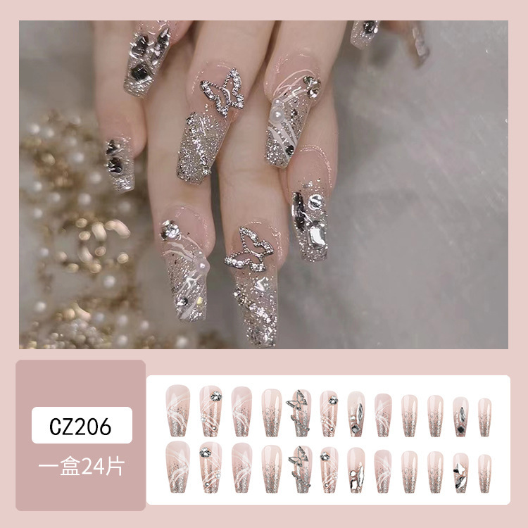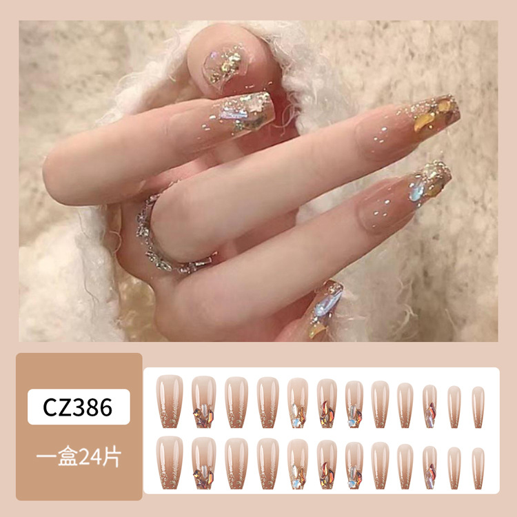 抖音畅销镶钻指甲片美甲 假指甲贴片 高级手工穿戴甲长款成品批发