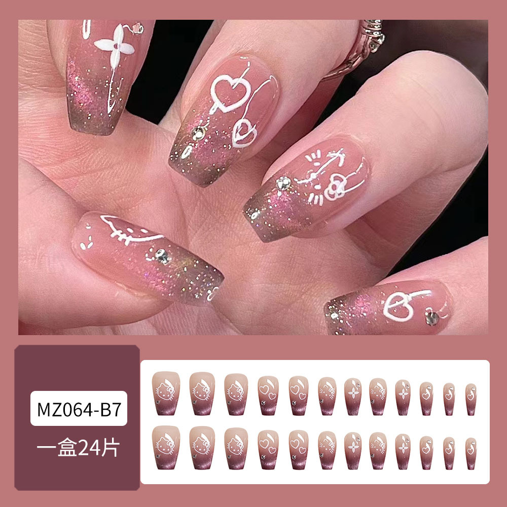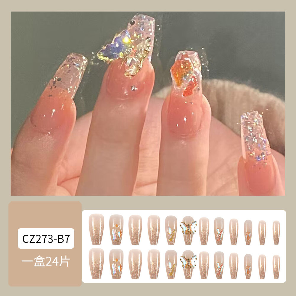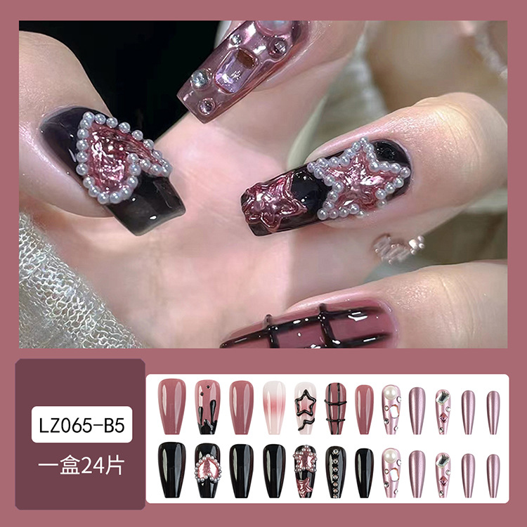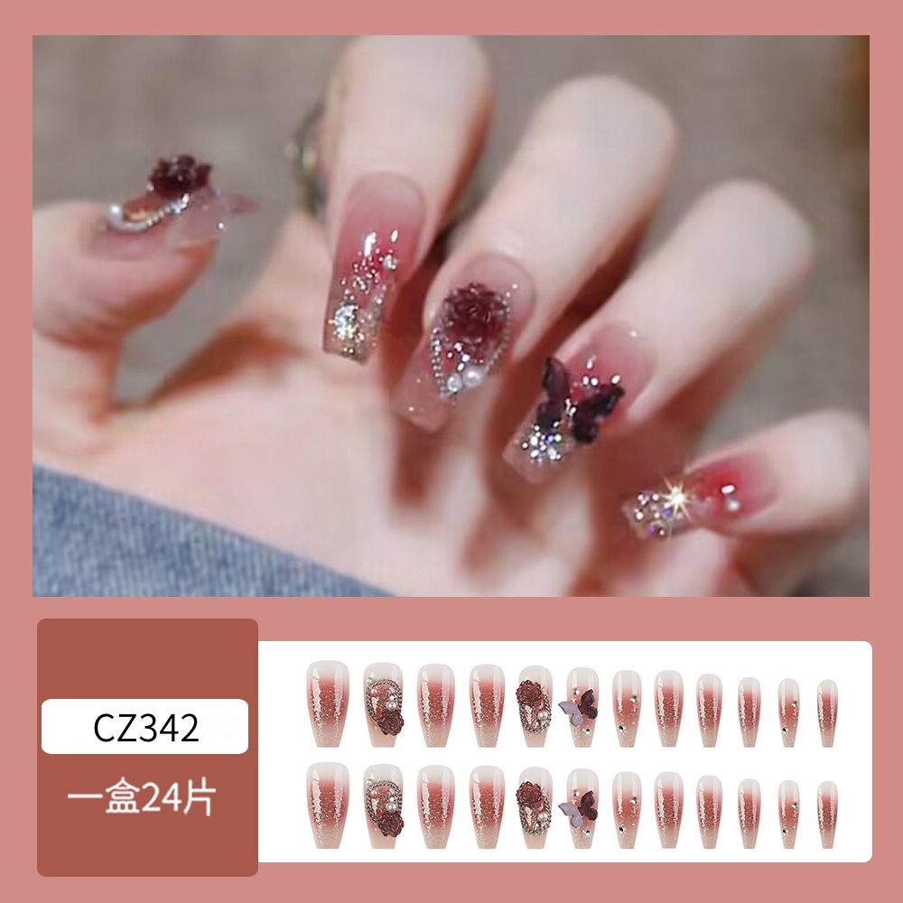 抖音畅销镶钻指甲片美甲 假指甲贴片 高级手工穿戴甲长款成品批发