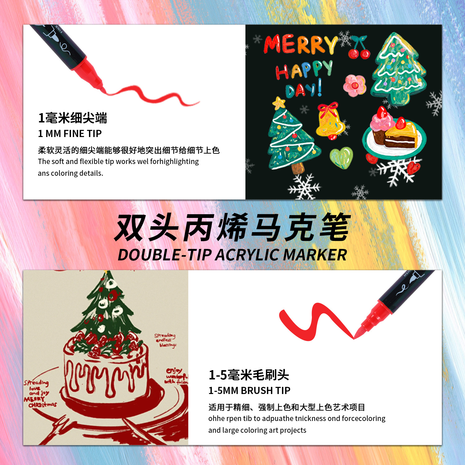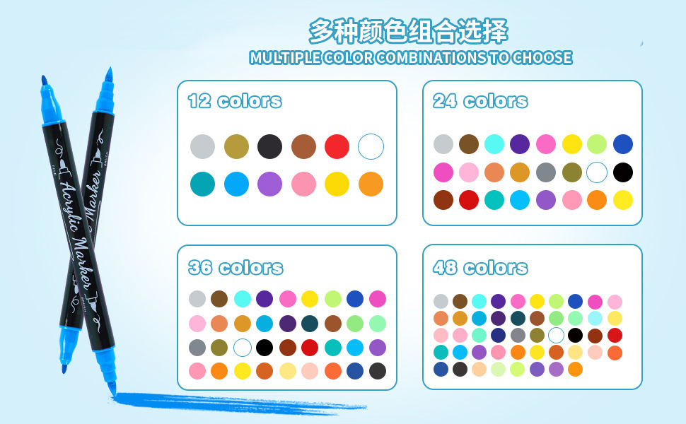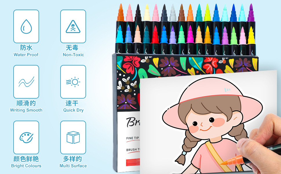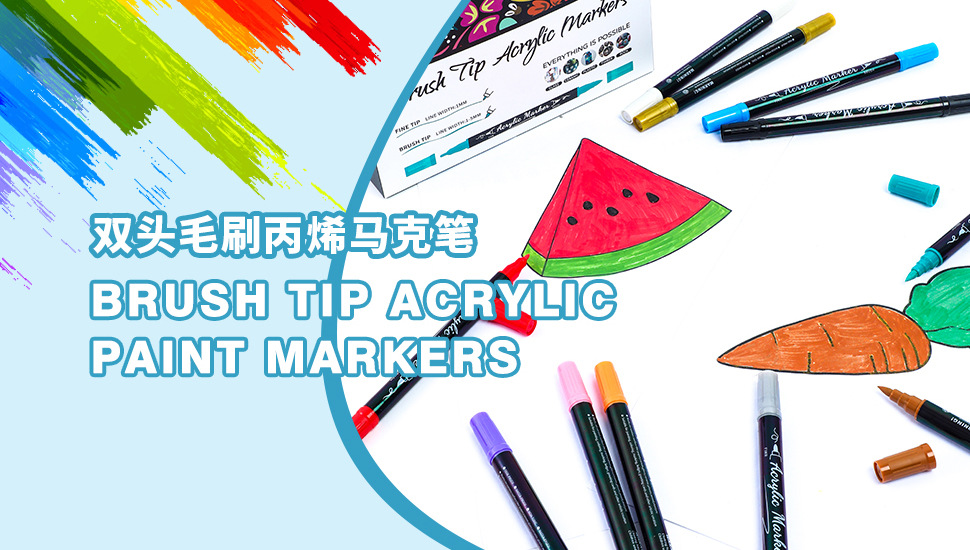 跨境水性双头毛刷丙烯马克笔软头儿童绘画专用水彩24色可叠色套装