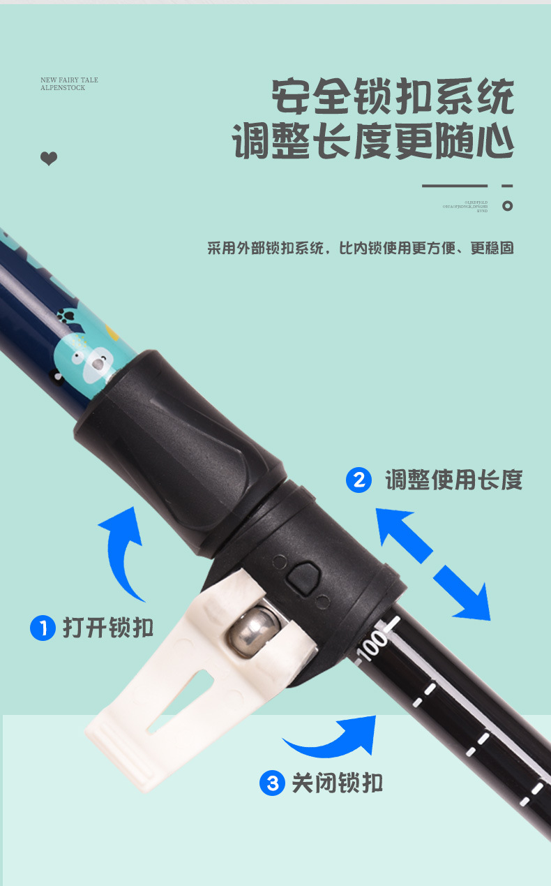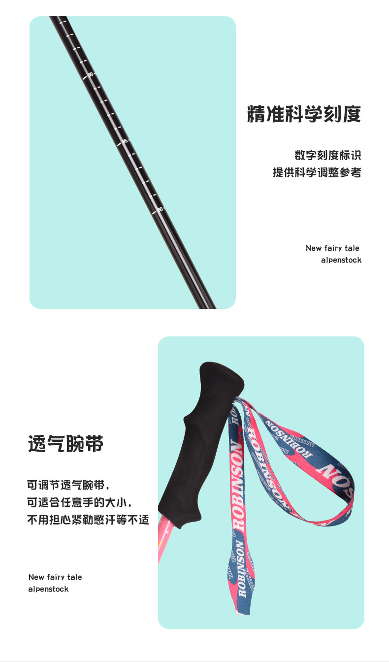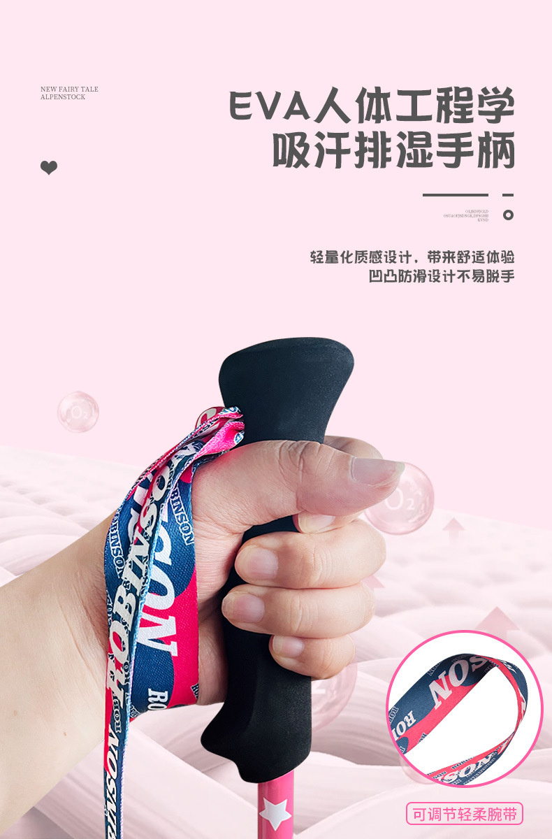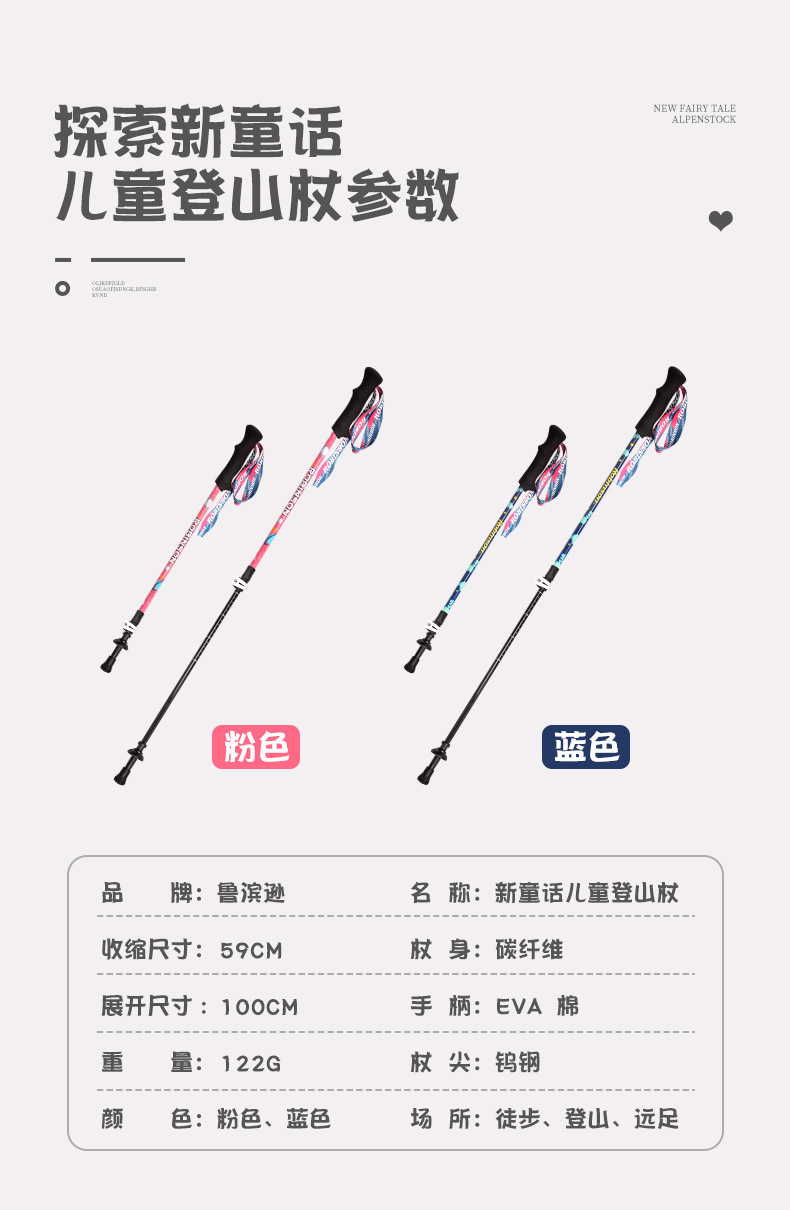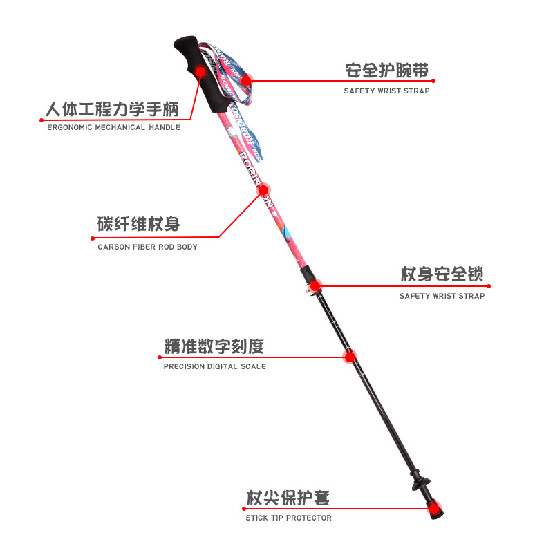 鲁滨逊儿童登山杖碳素纤维外锁超轻短外锁便携青少年男女童款手杖