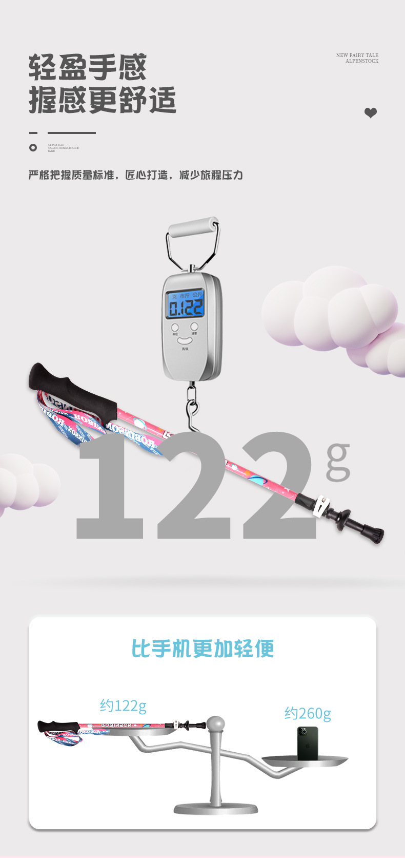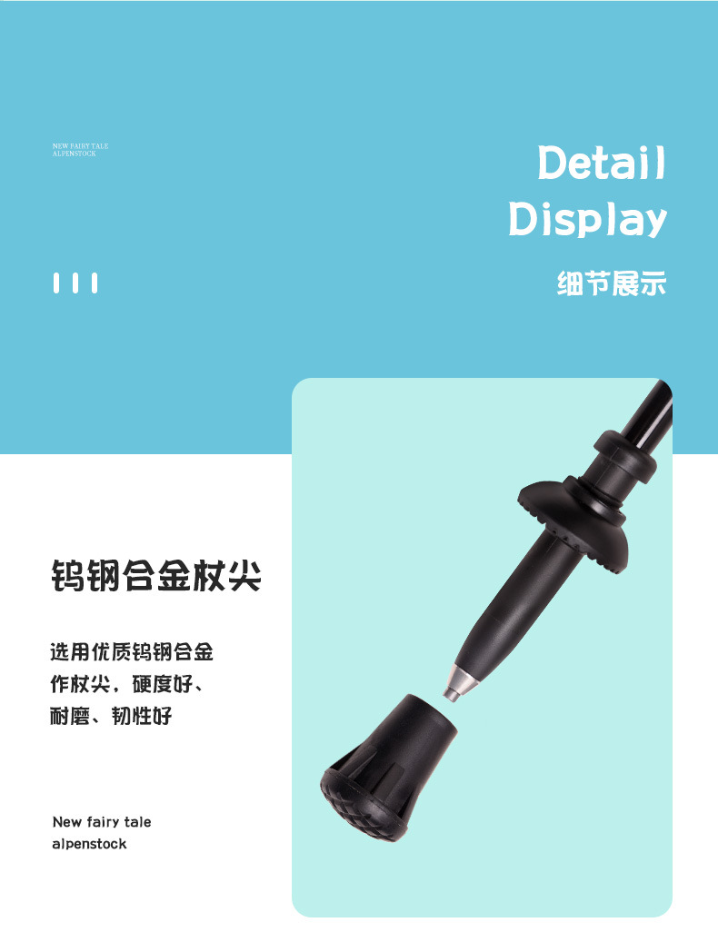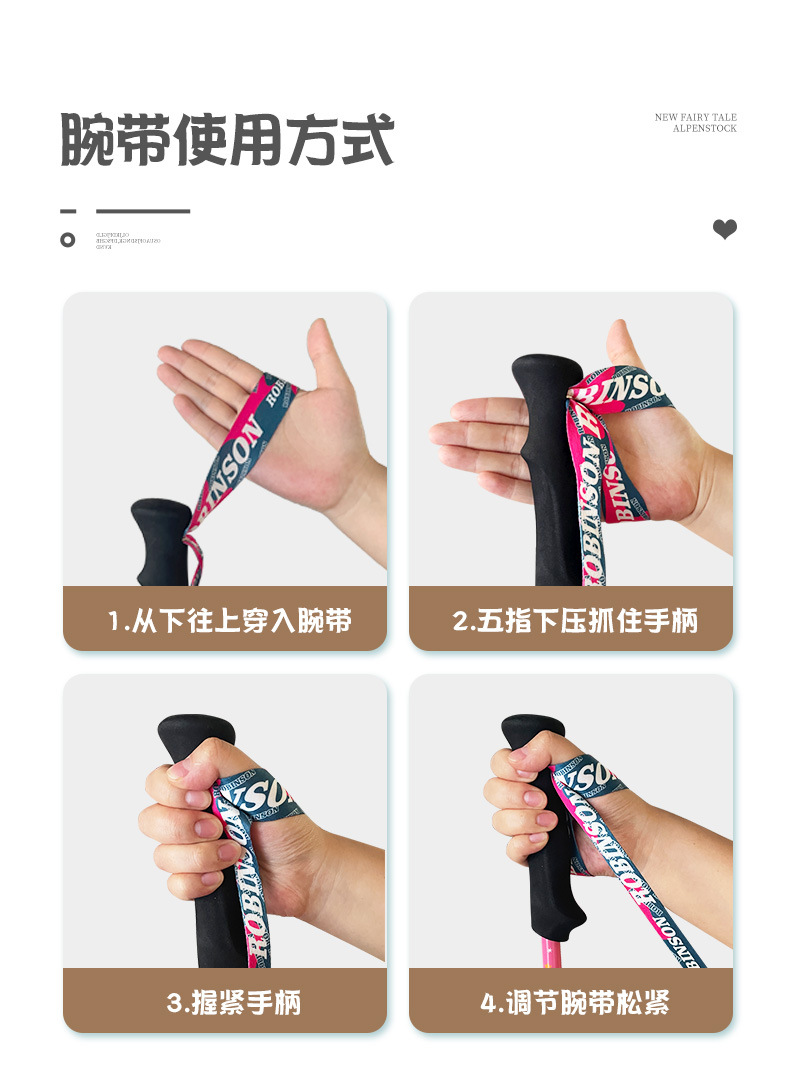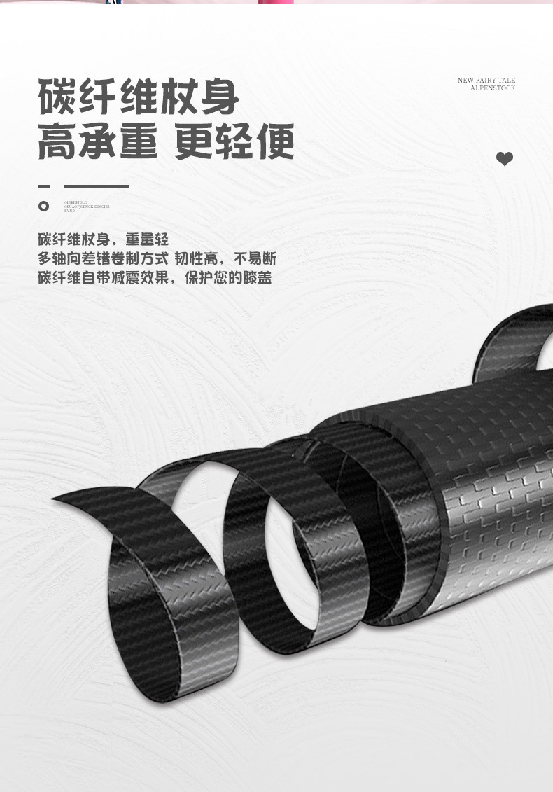 鲁滨逊儿童登山杖碳素纤维外锁超轻短外锁便携青少年男女童款手杖