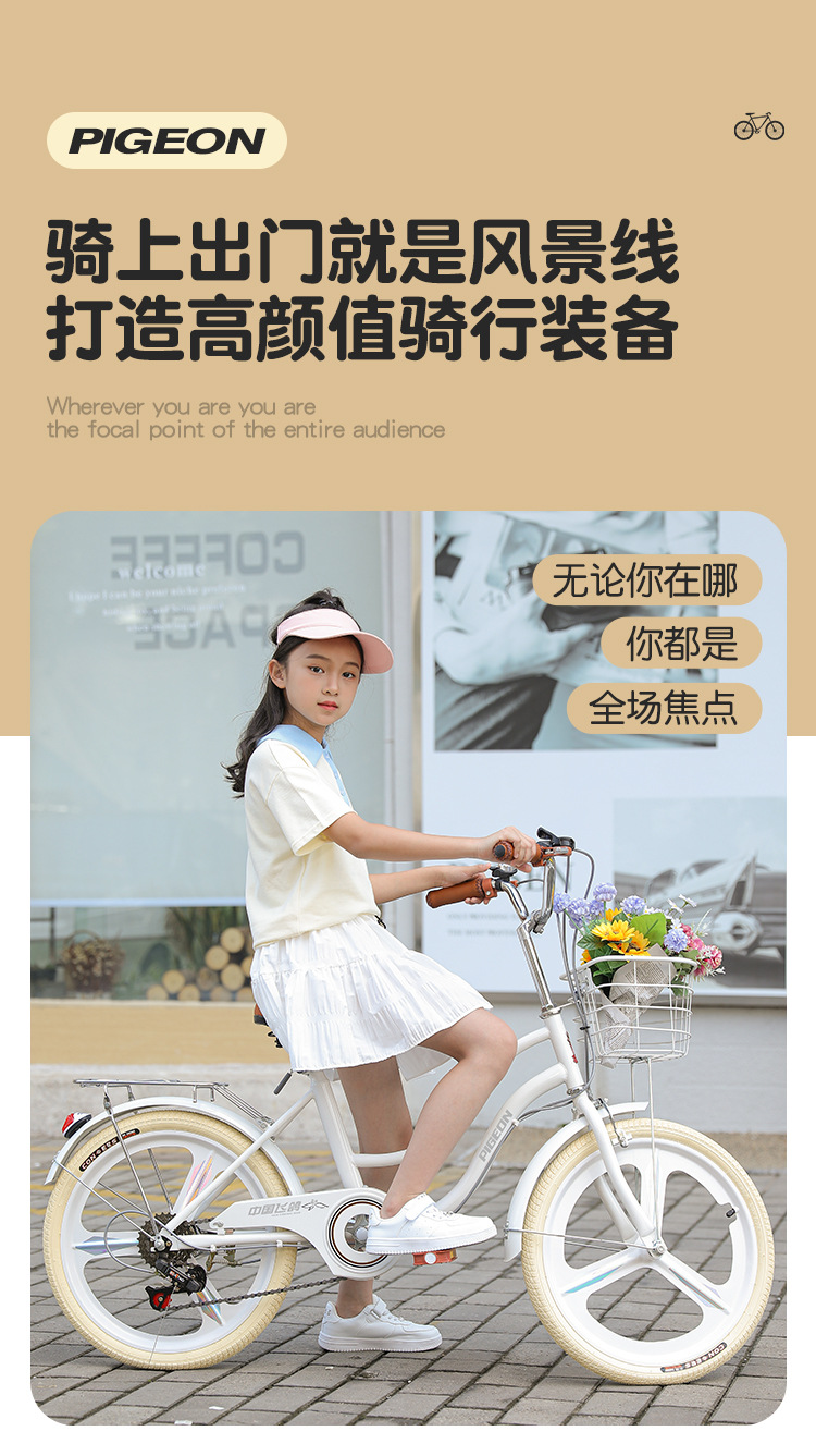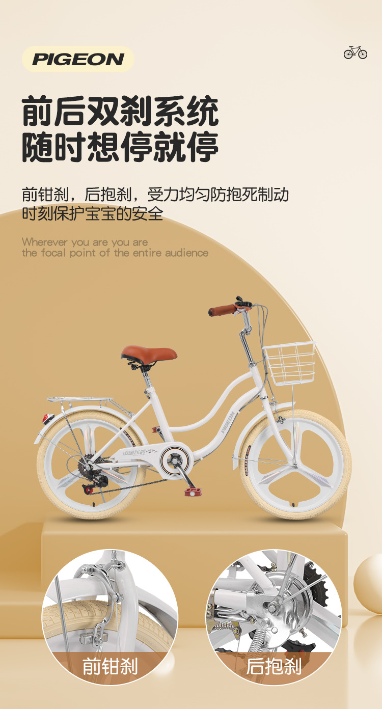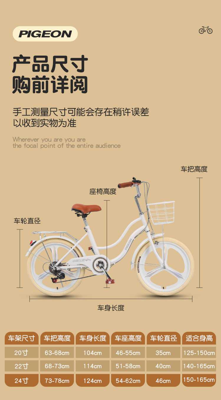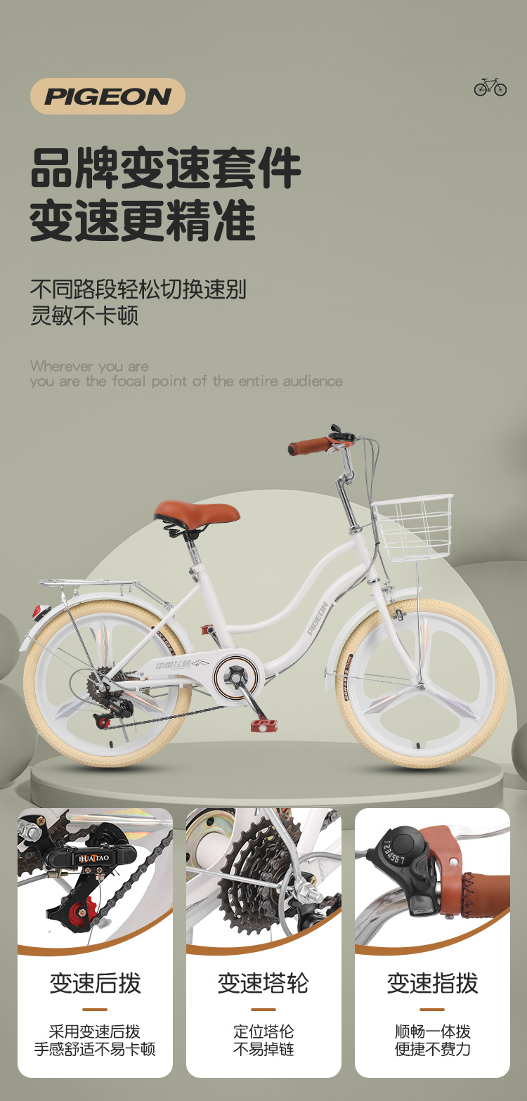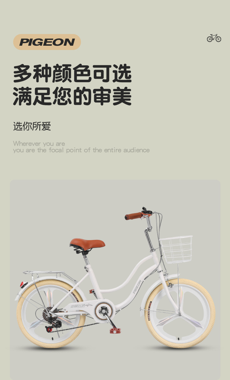 飞鸽自行车女式中大学生成人淑女通勤轻便20寸22寸24寸变速代步车