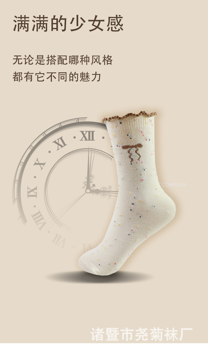 诸暨袜业花边袜春秋夏天袜子女薄款中筒无骨袜休闲蝴蝶结透气批发