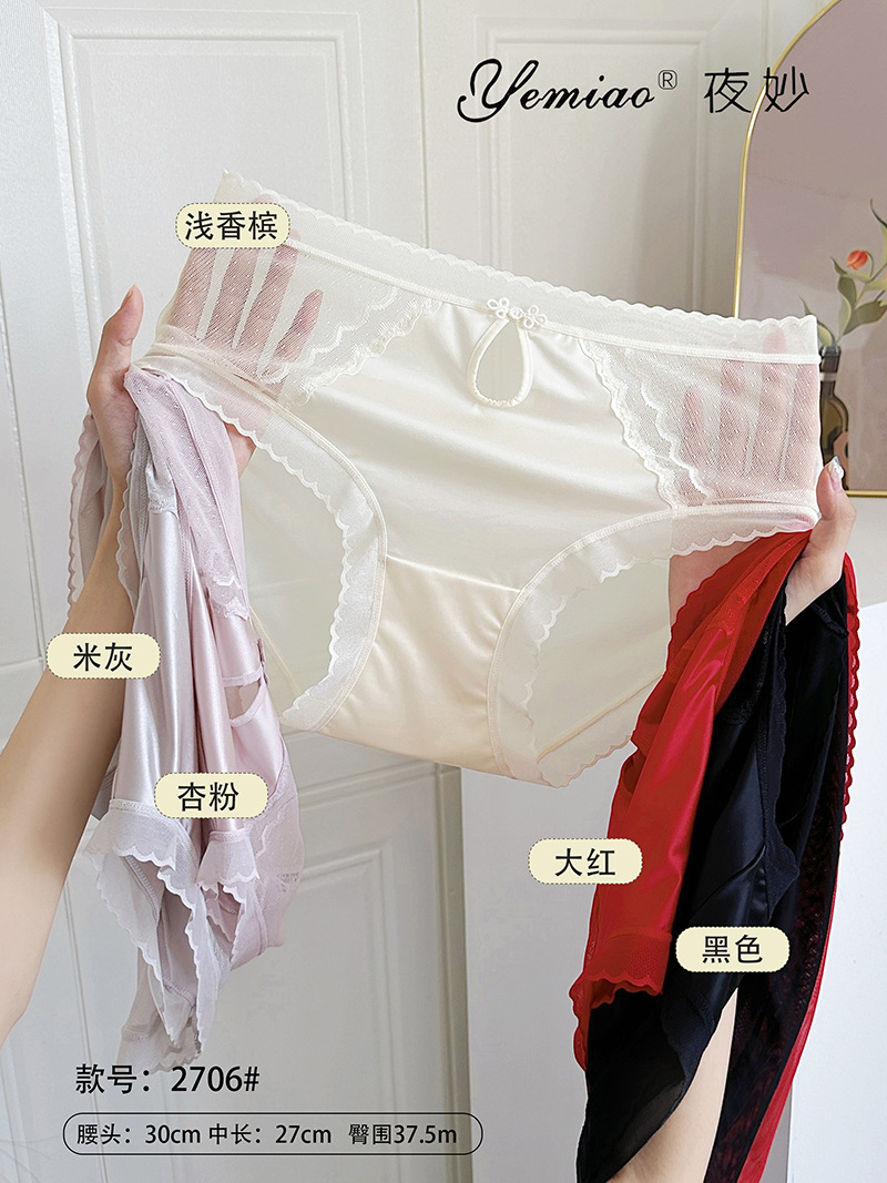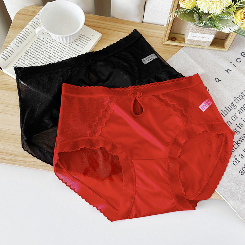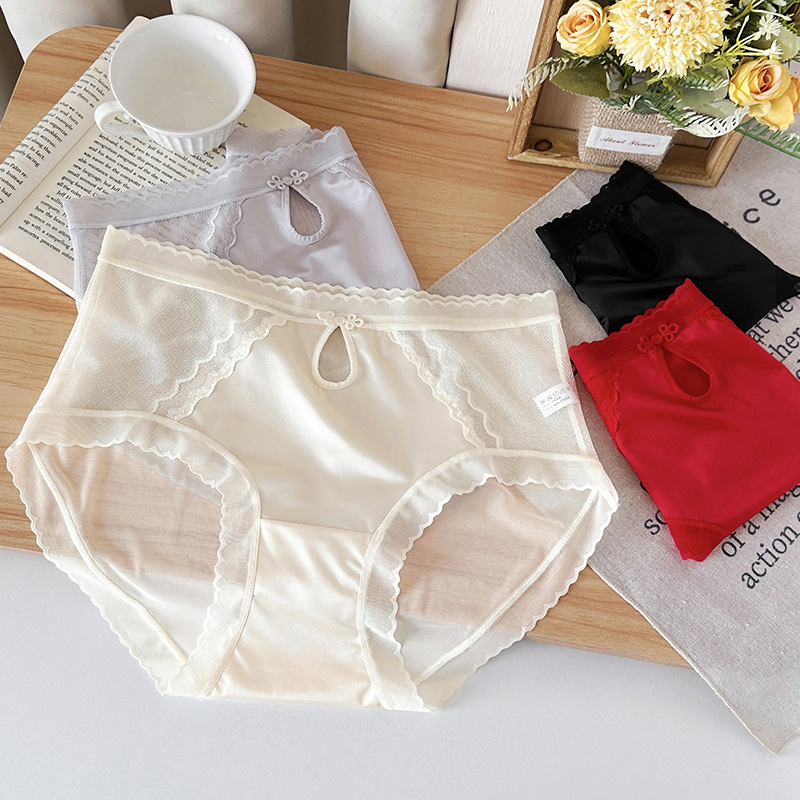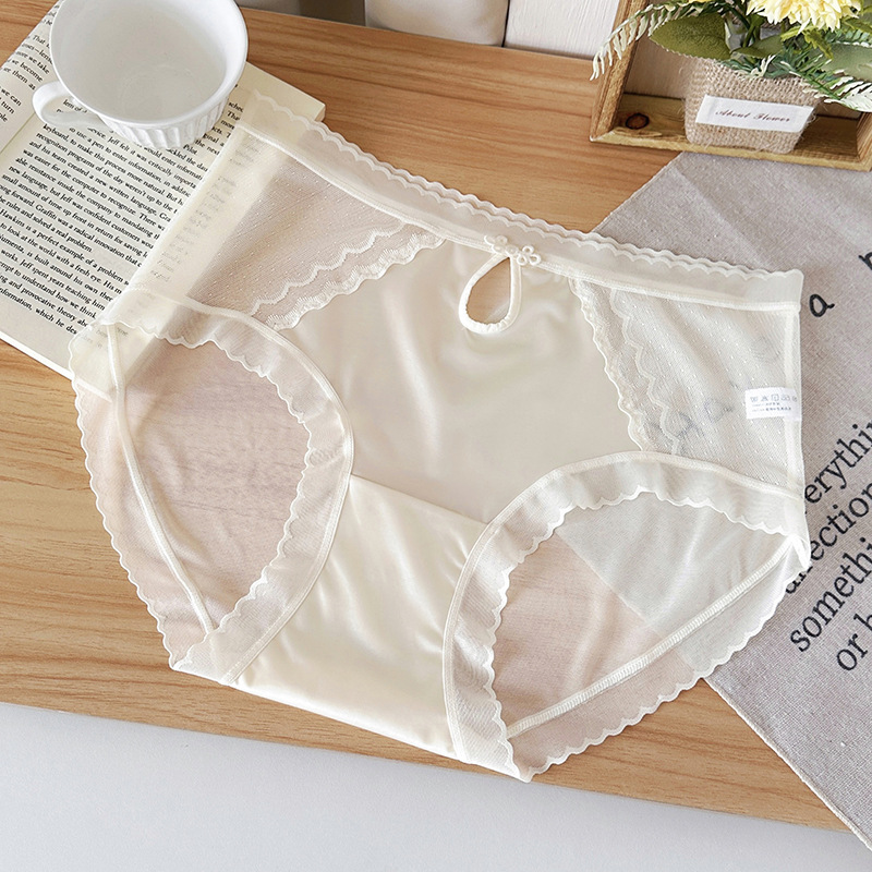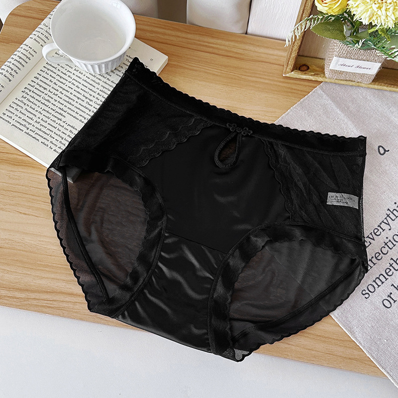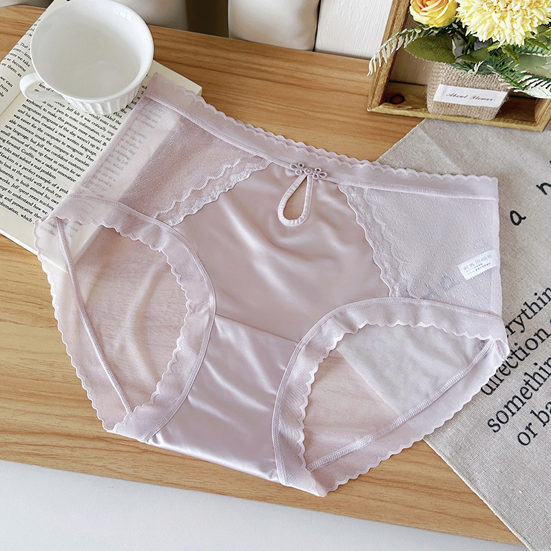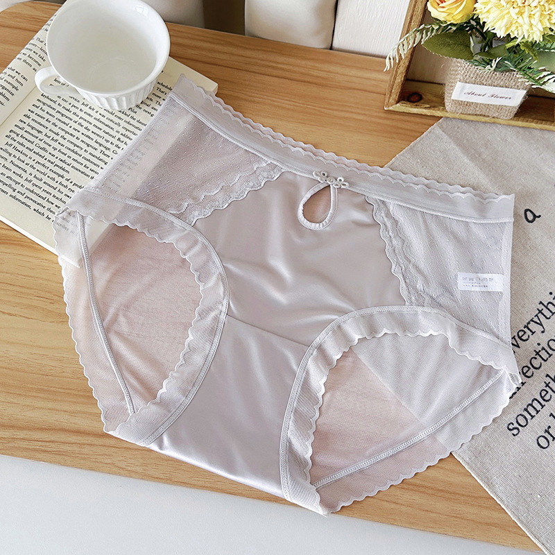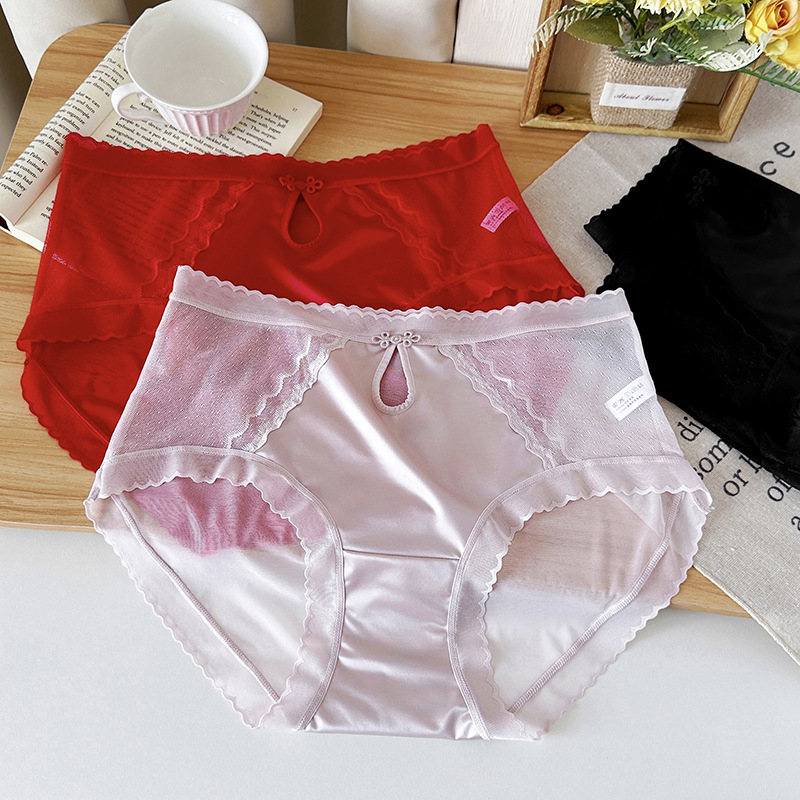 蕾丝内裤女丝滑缎面中腰性感女士内裤7a纯棉裆镂空女内裤