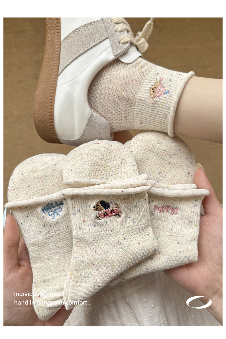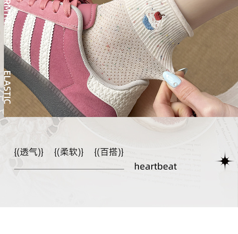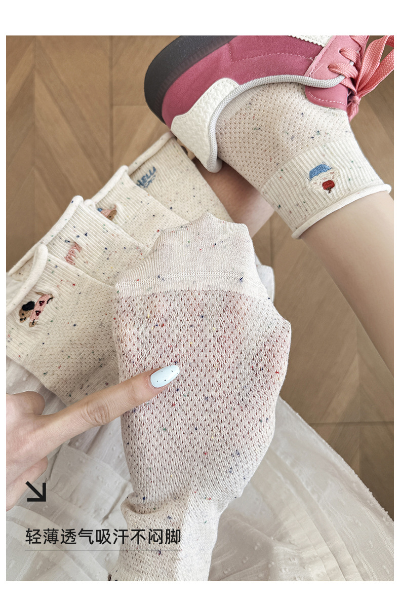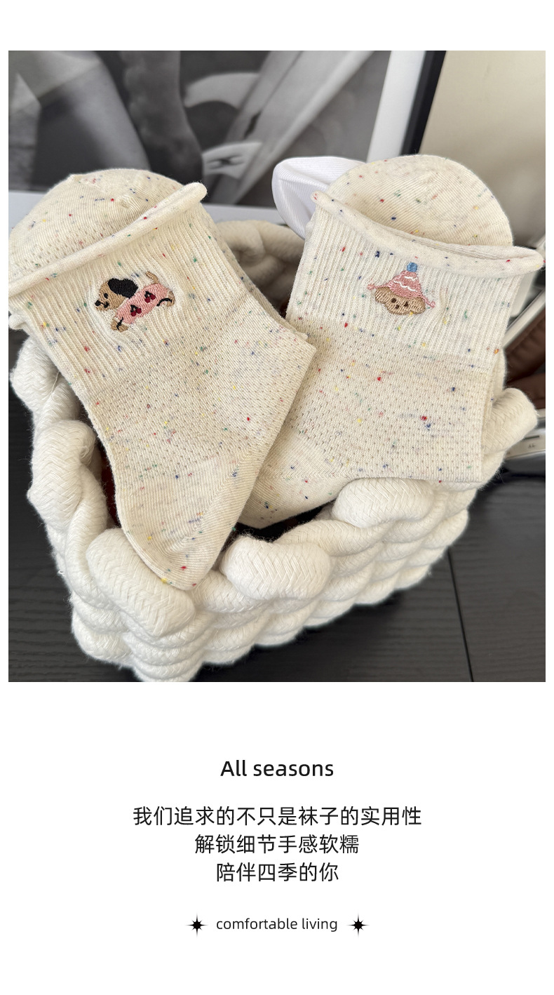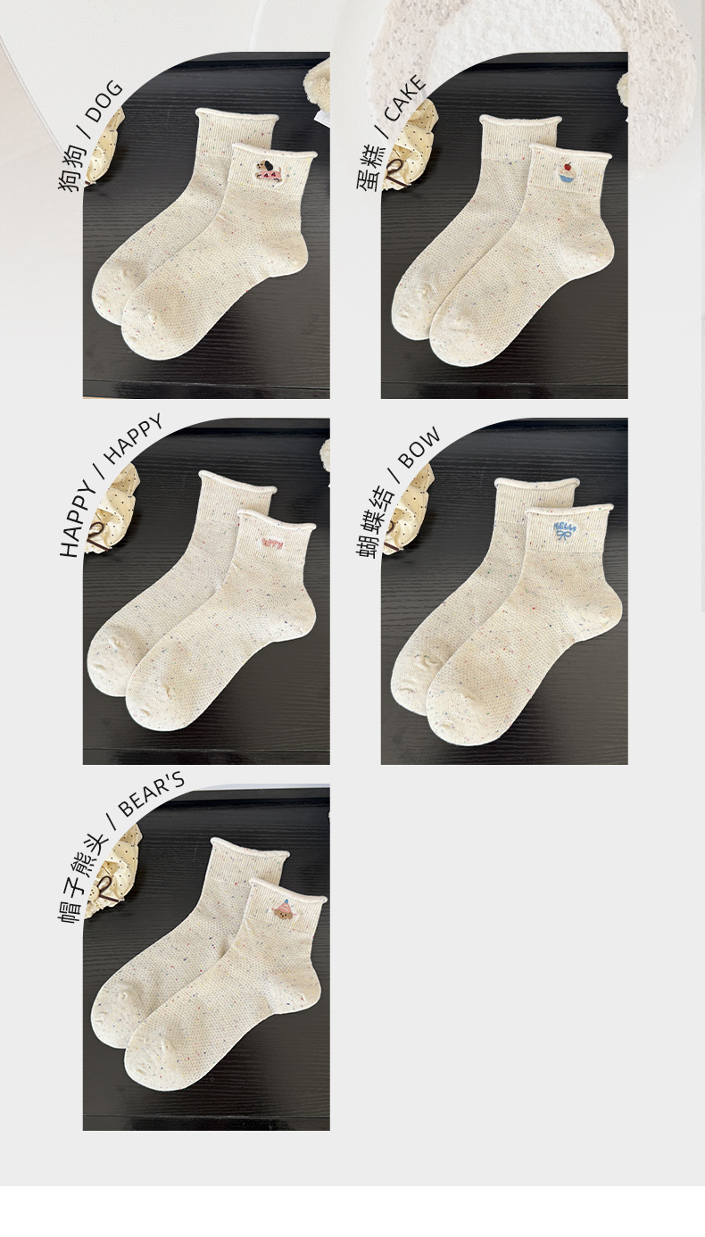 卷边袜子女纯棉春夏薄款中筒袜吸汗防臭ins蝴蝶结百搭学生堆堆袜