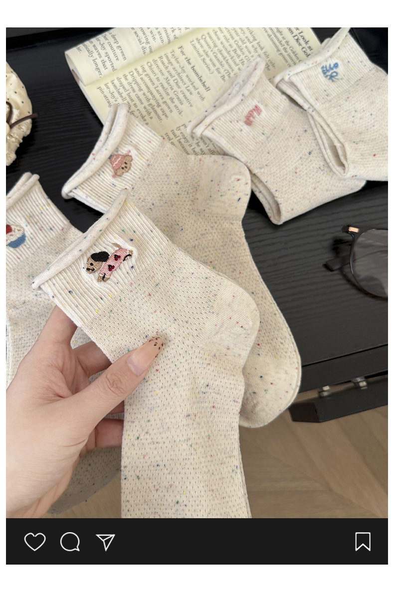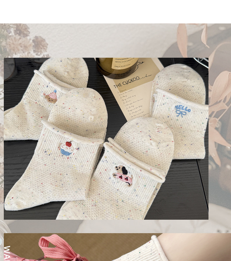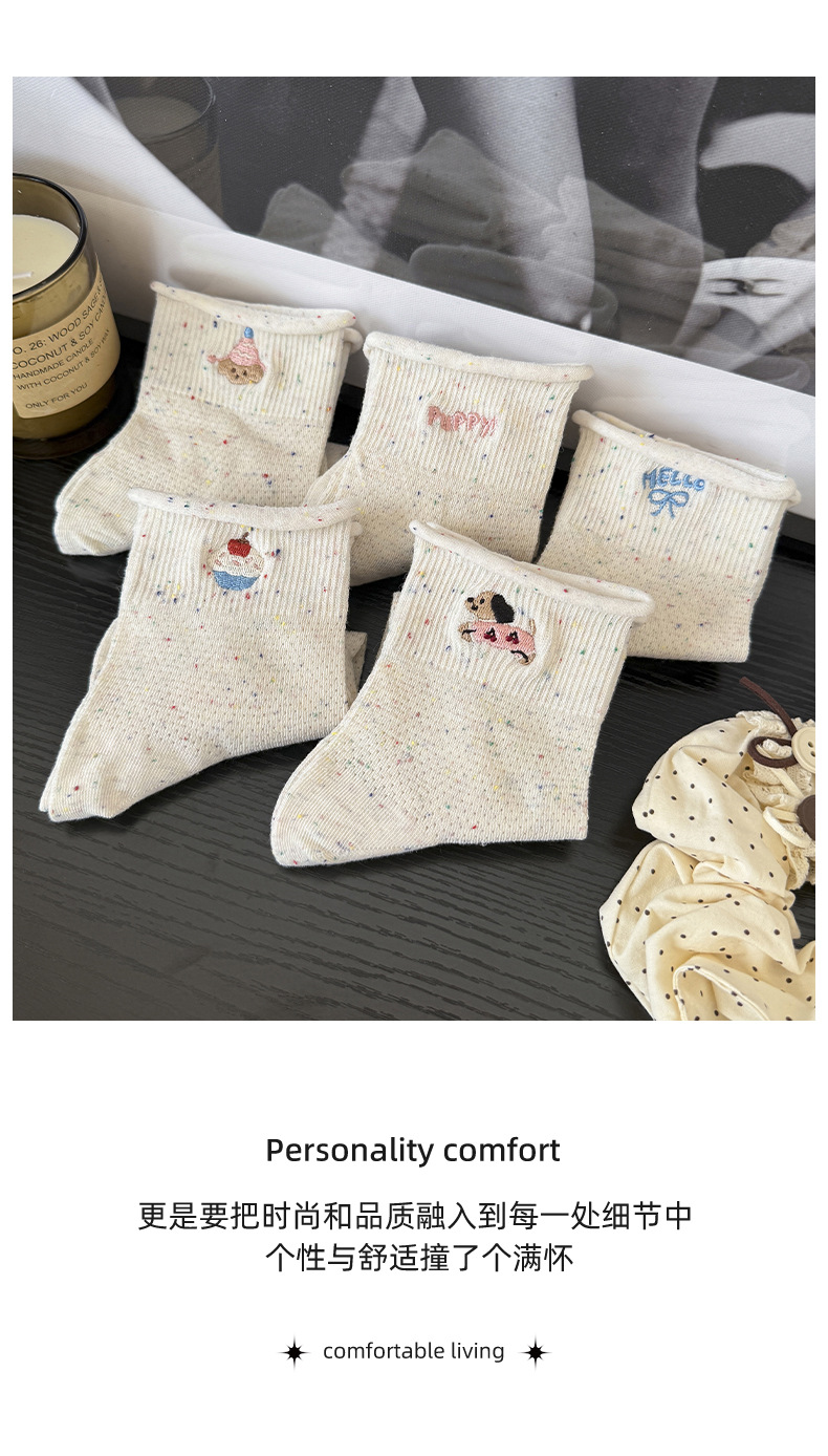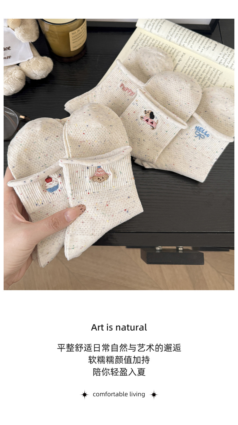 卷边袜子女纯棉春夏薄款中筒袜吸汗防臭ins蝴蝶结百搭学生堆堆袜