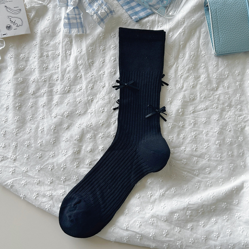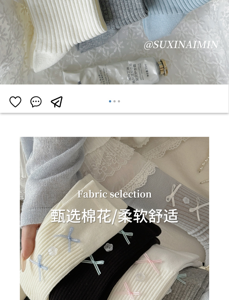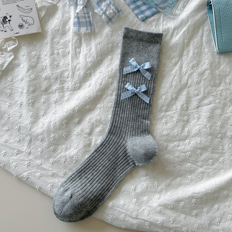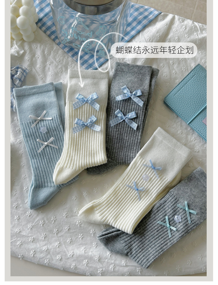 suxinaimin芭蕾风薄袜子女春夏款丝带蝴蝶结miu系灰色中筒堆堆袜